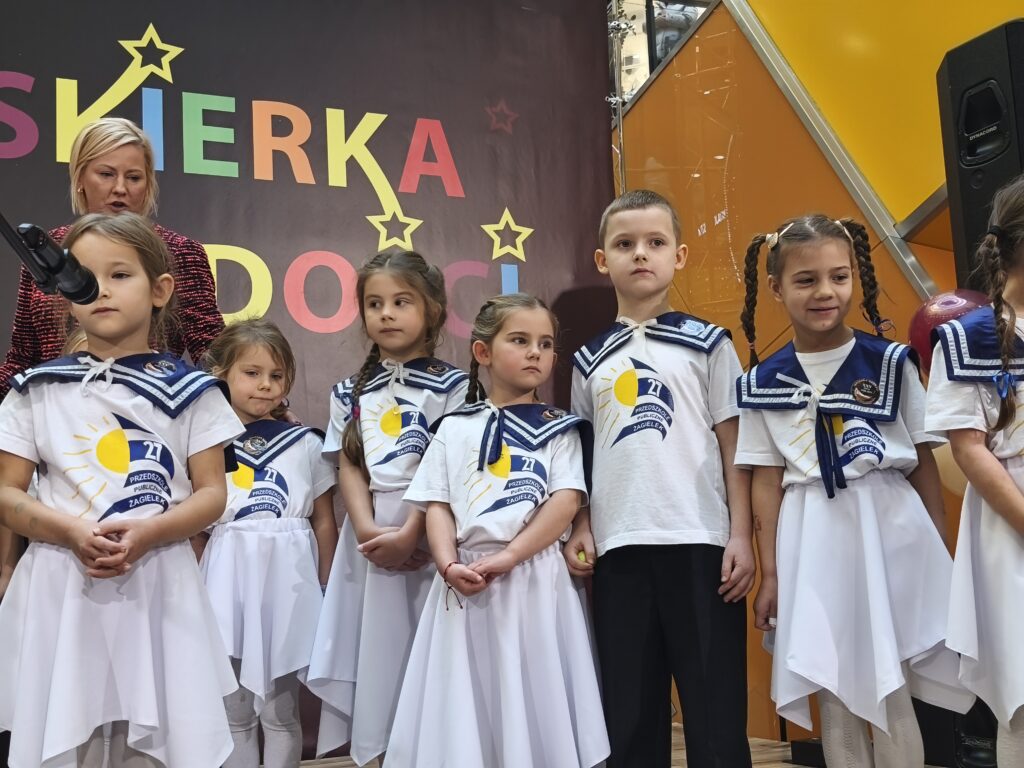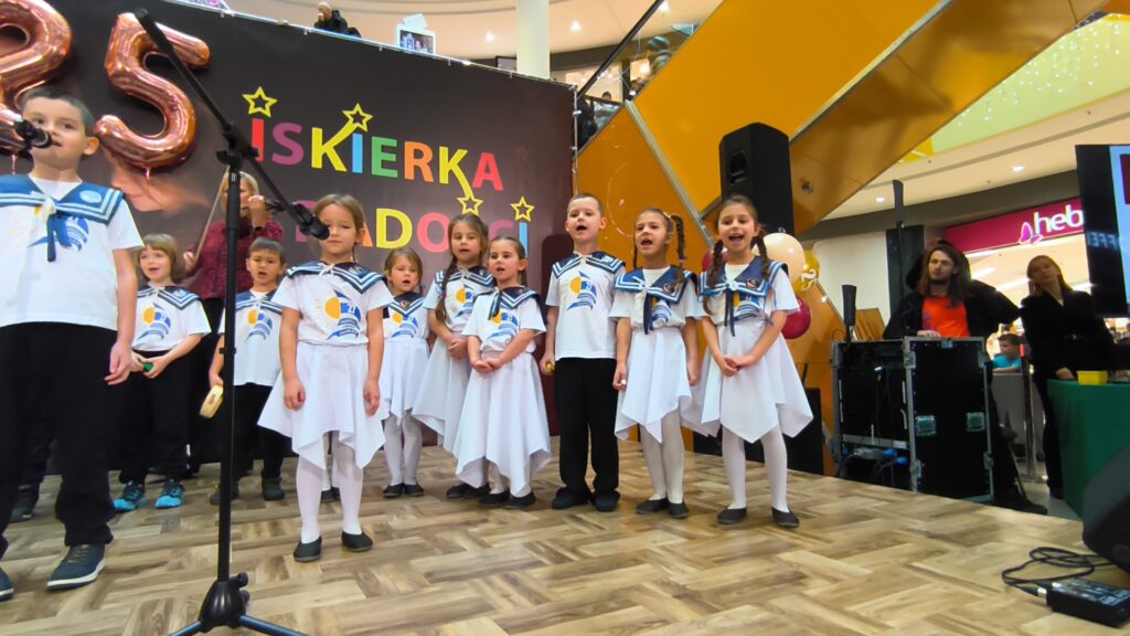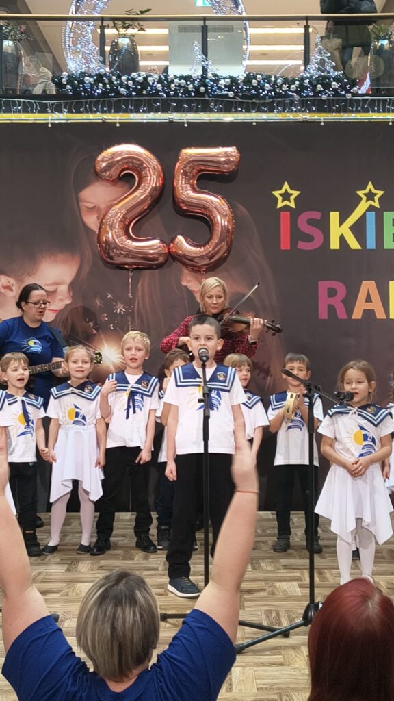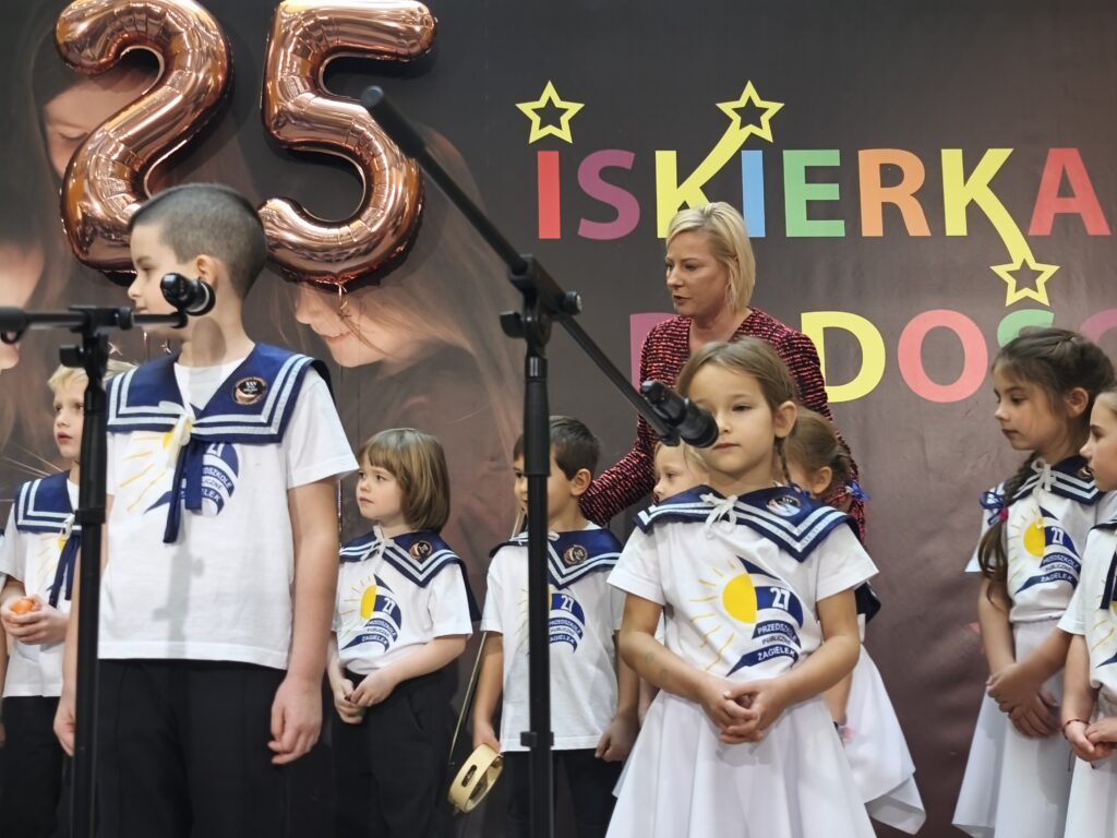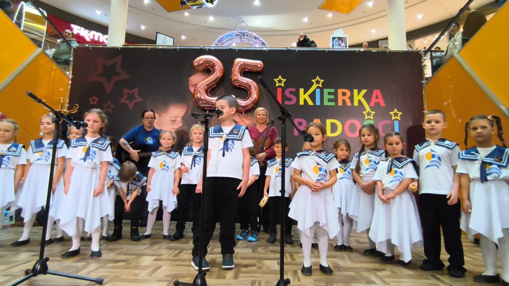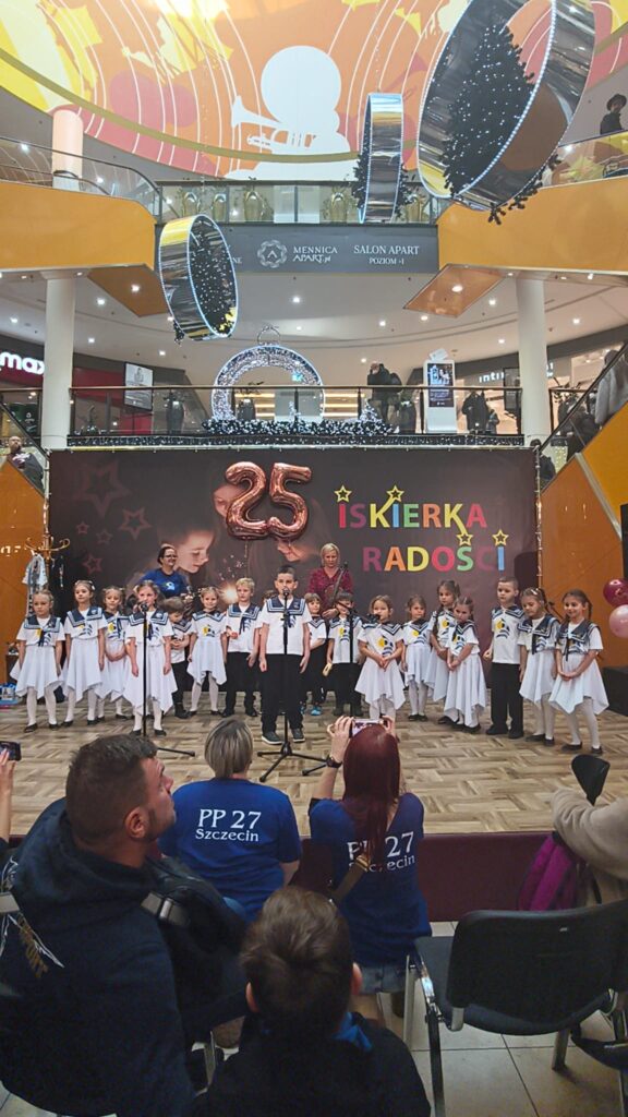 Nasze przedszkolaki wystąpiły w ramach „Iskierki Radości – Szczecińskie Szkoły Potrzebującym”, wyjątkowej inicjatywy, która od 25 lat niesie wsparcie i uśmiech tym, którzy najbardziej tego potrzebują.Wydarzenie, łączące społeczność lokalną, szkoły i przedszkola, od ćwierć wieku promuje ideę solidarności, empatii i bezinteresownej pomocy. Mali artyści z zaangażowaniem zaprezentowali swoje talenty, wnosząc do akcji ciepło, radość i ogromne serca.