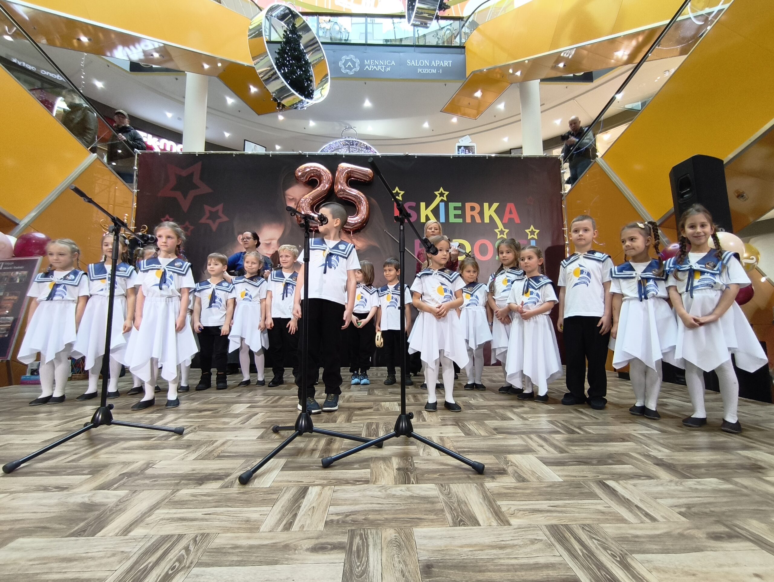 Nasze przedszkolaki wystąpiły w ramach „Iskierki Radości – Szczecińskie Szkoły Potrzebującym”, wyjątkowej inicjatywy, która od 25 lat niesie wsparcie i uśmiech tym, którzy najbardziej tego potrzebują.Wydarzenie, łączące społeczność lokalną, szkoły i przedszkola, od ćwierć wieku promuje ideę solidarności, empatii i bezinteresownej pomocy. Mali artyści z zaangażowaniem zaprezentowali swoje talenty, wnosząc do akcji ciepło, radość i ogromne serca.