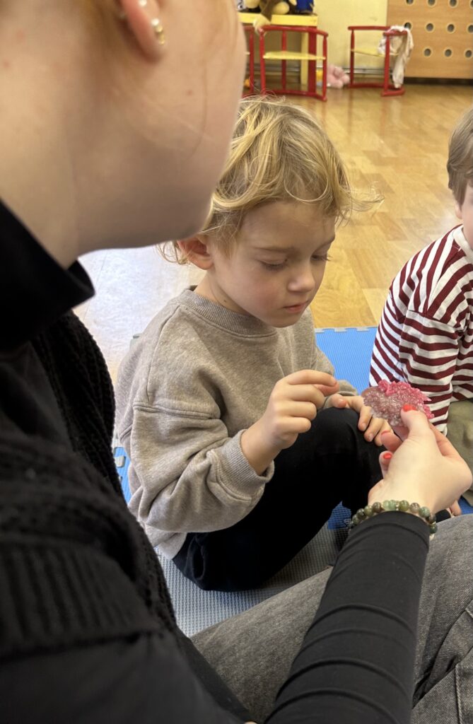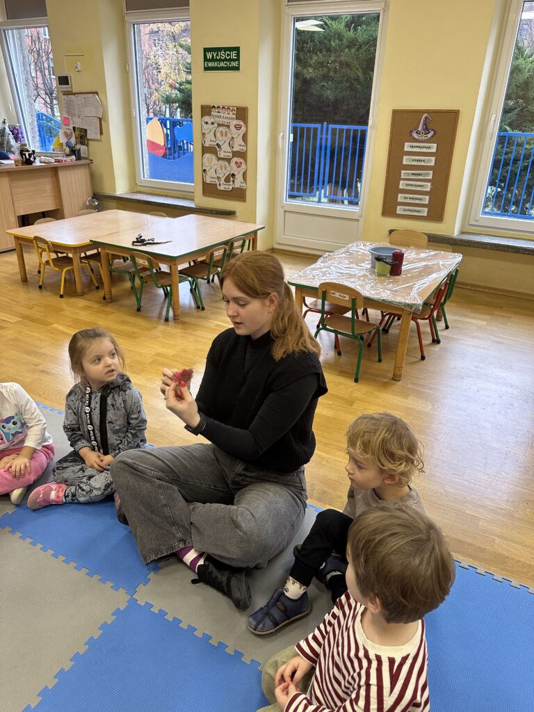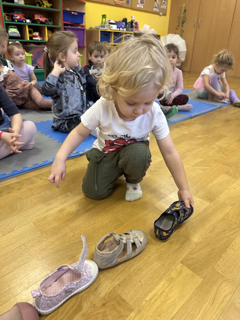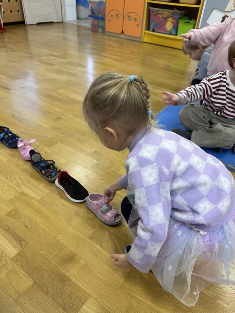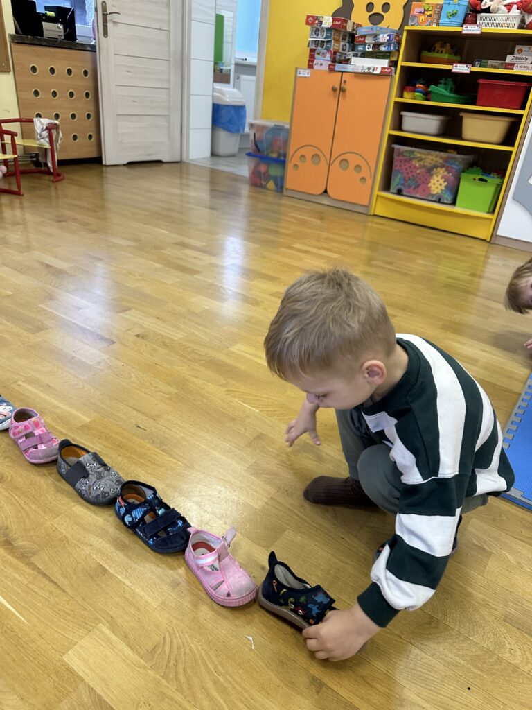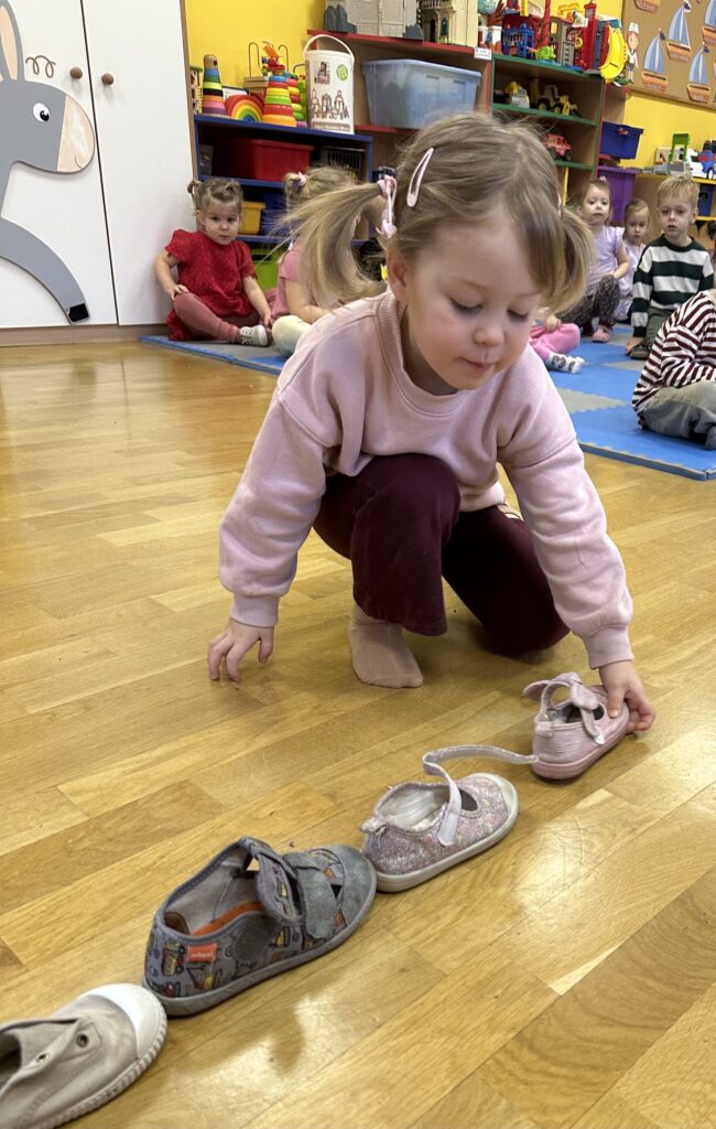 Dzieci ćwiczyły małą motorykę. Dzielnie nawlekali koraliki na sznurek.