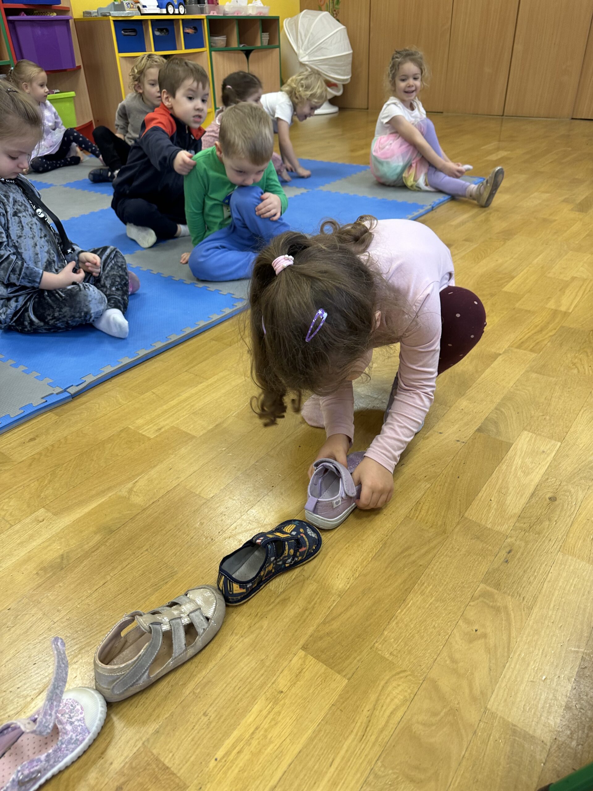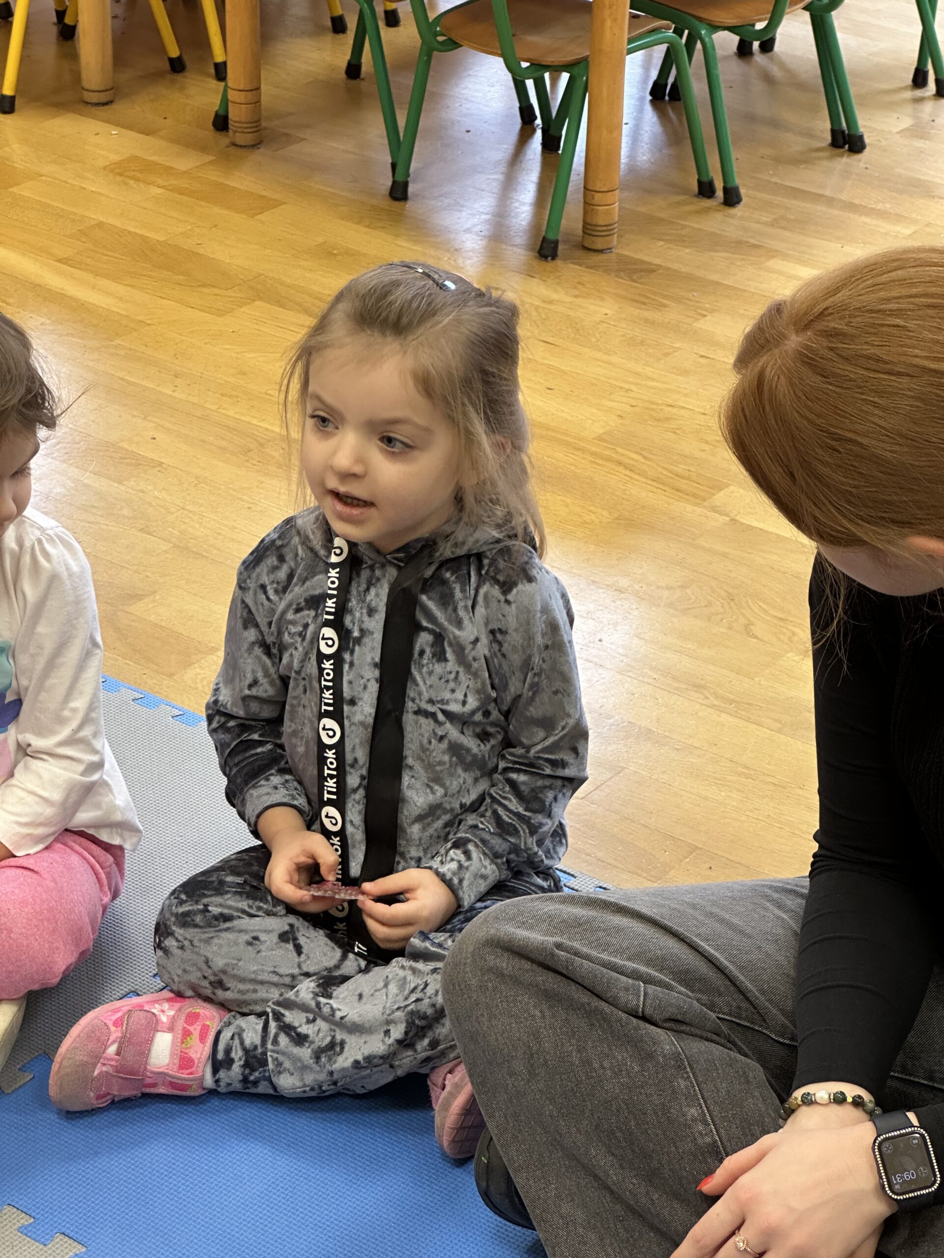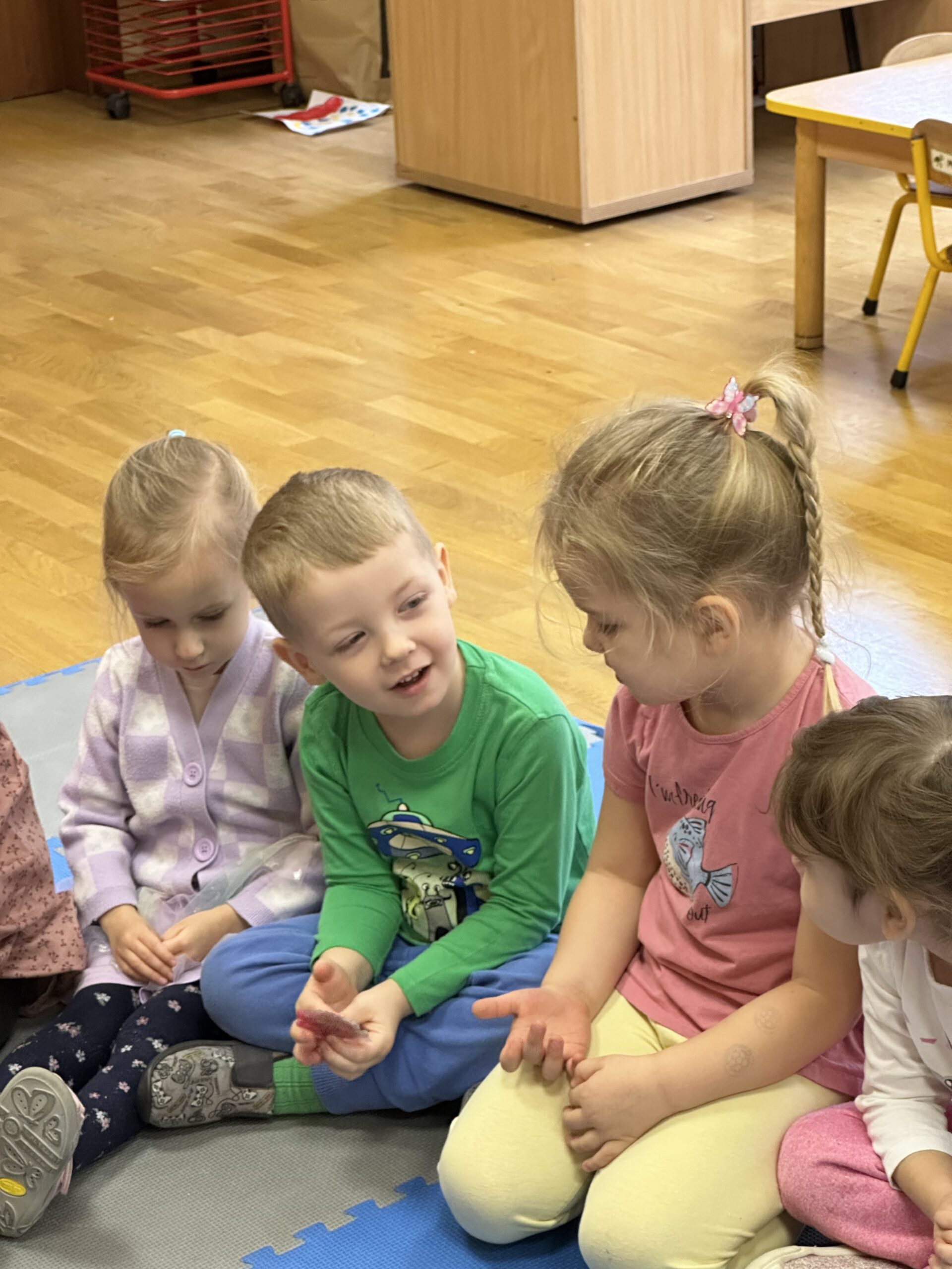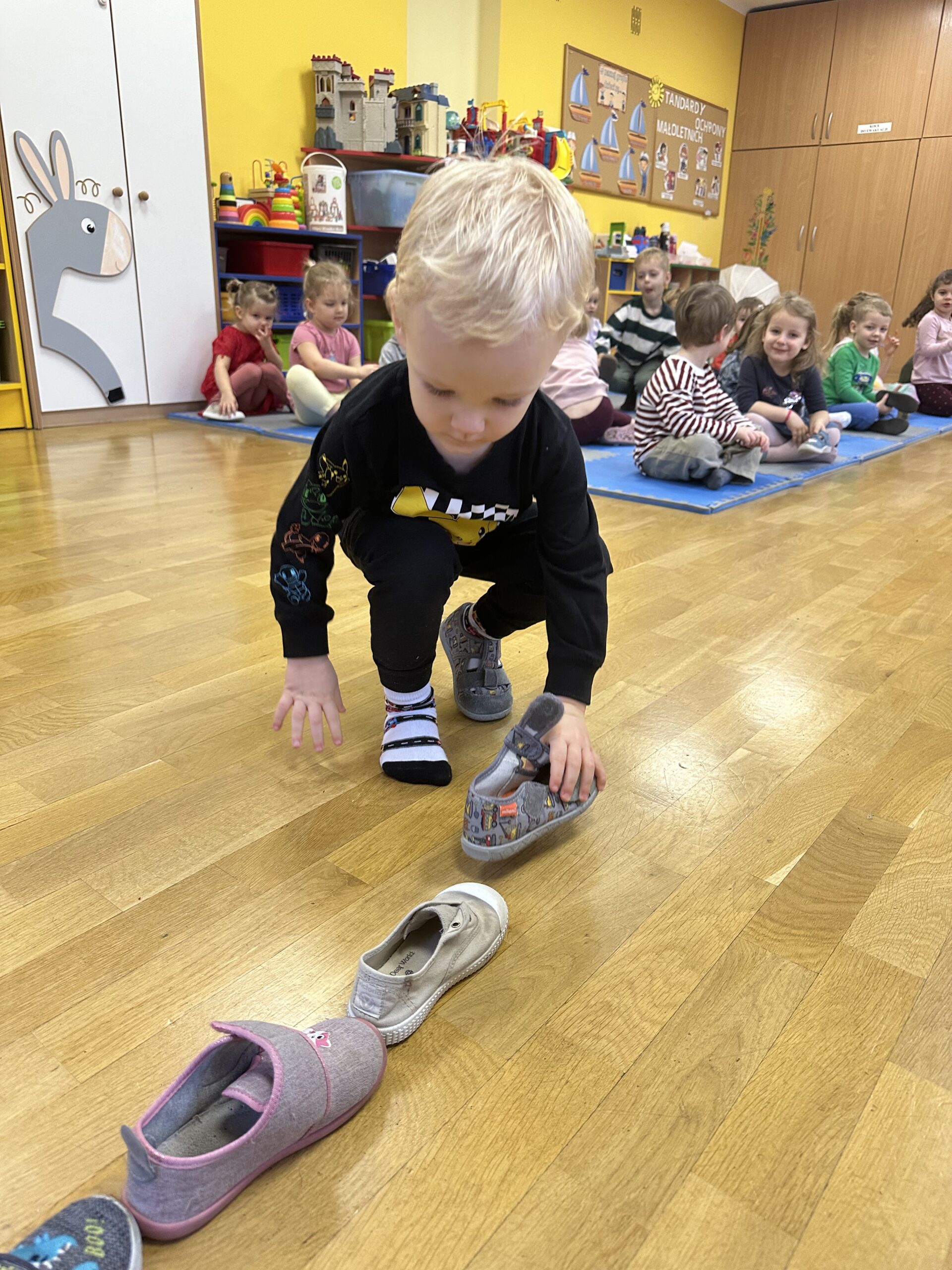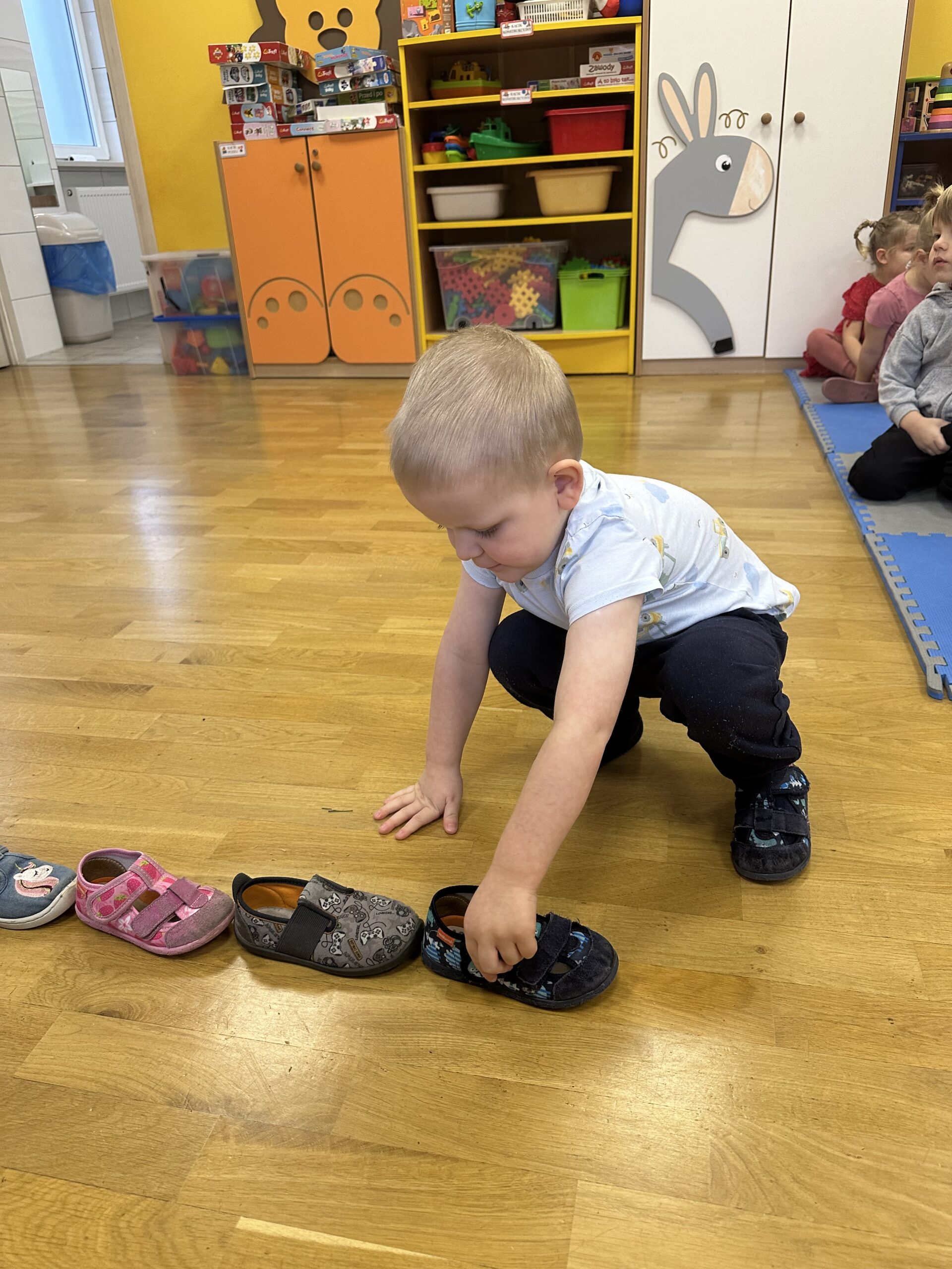 Dzieci ćwiczyły małą motorykę. Dzielnie nawlekali koraliki na sznurek.