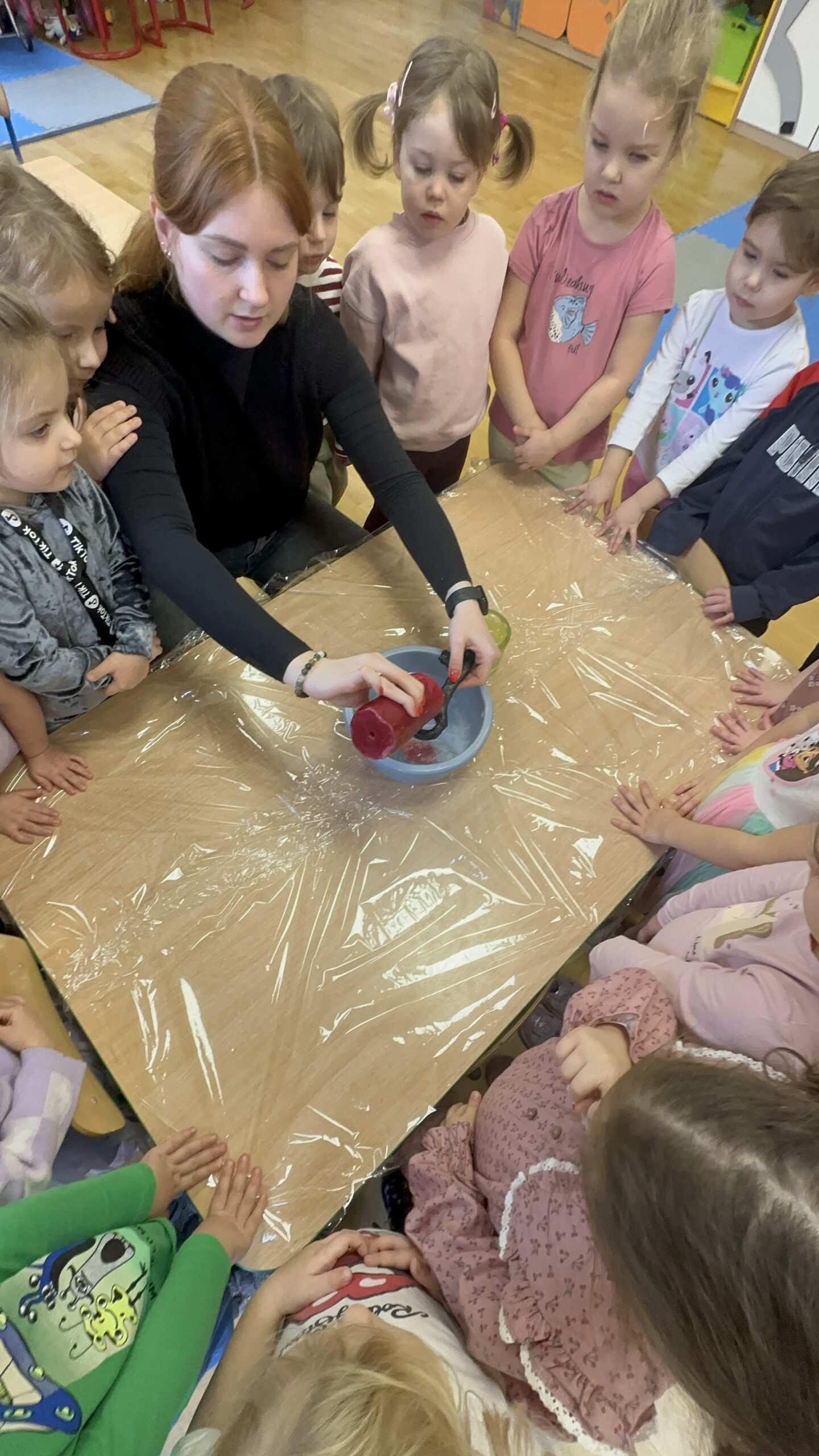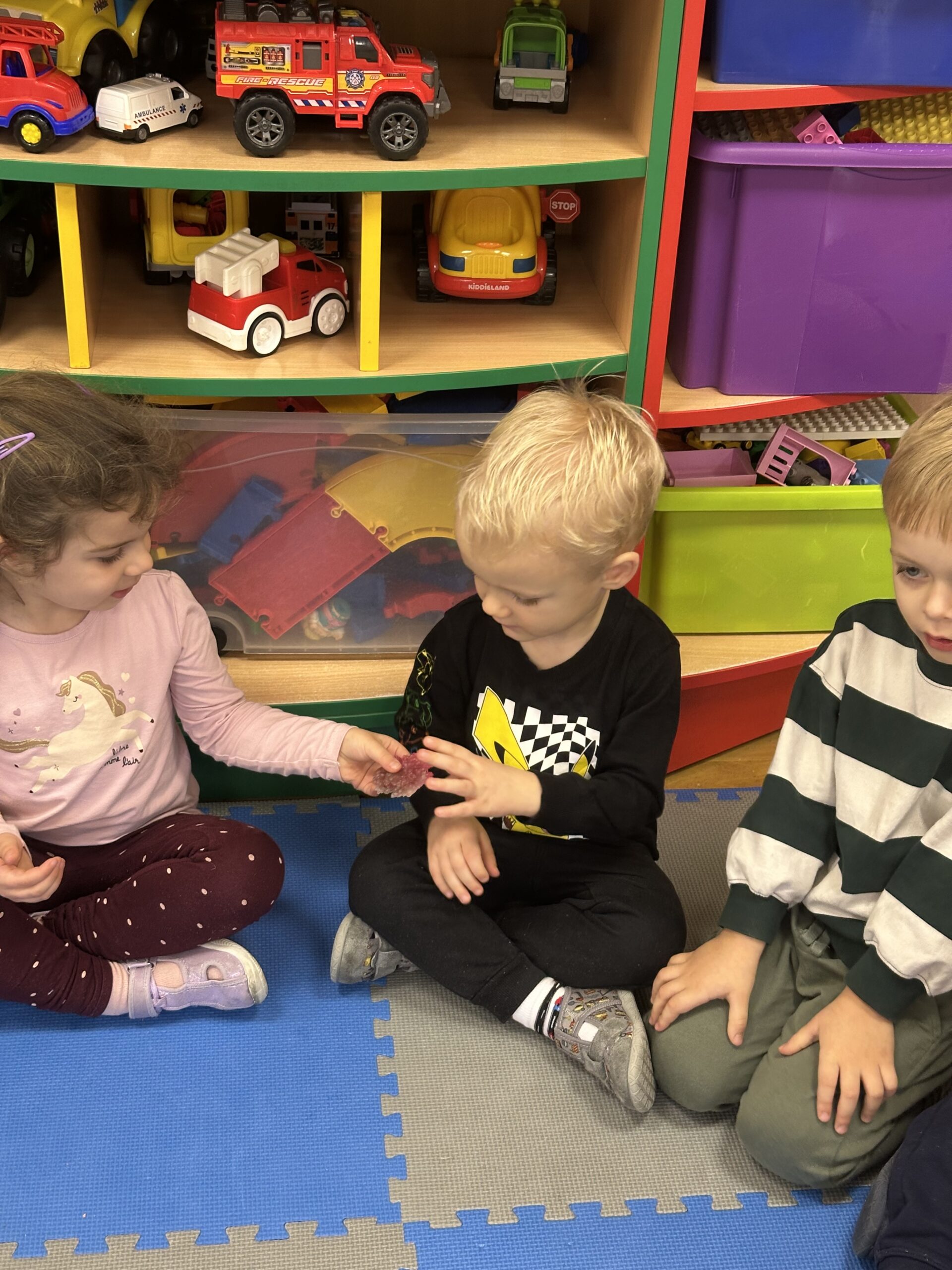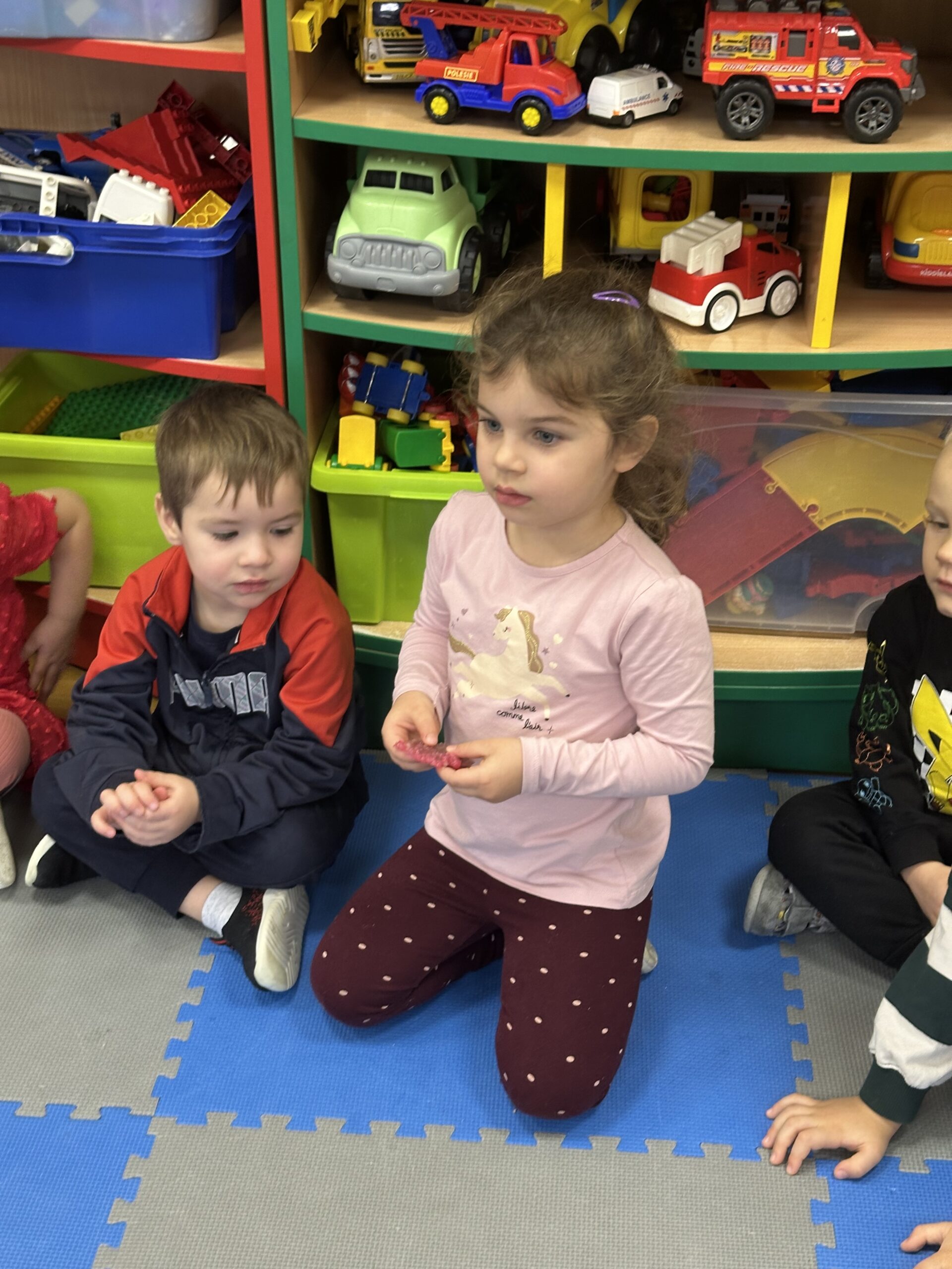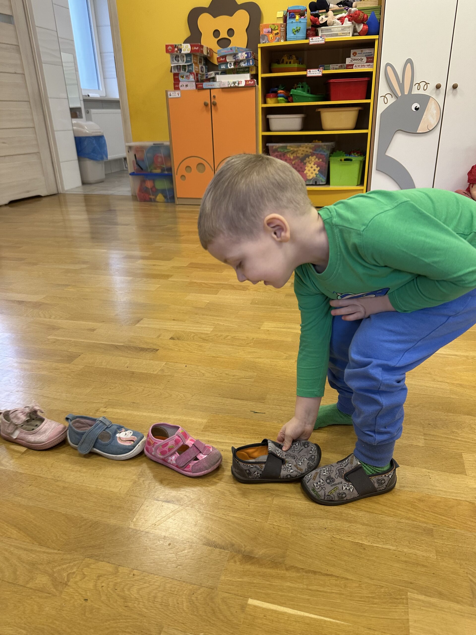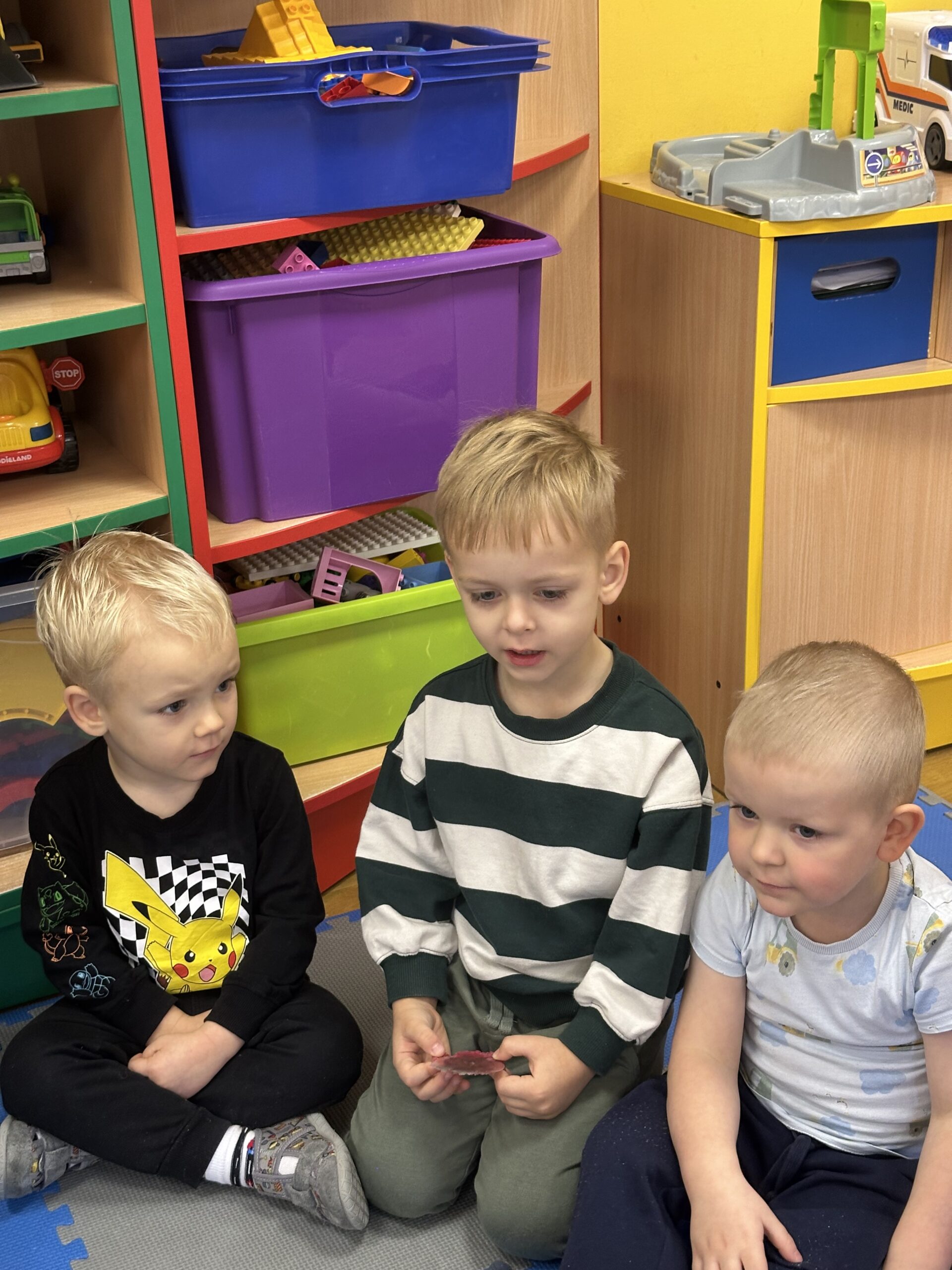 Dzieci ćwiczyły małą motorykę. Dzielnie nawlekali koraliki na sznurek.