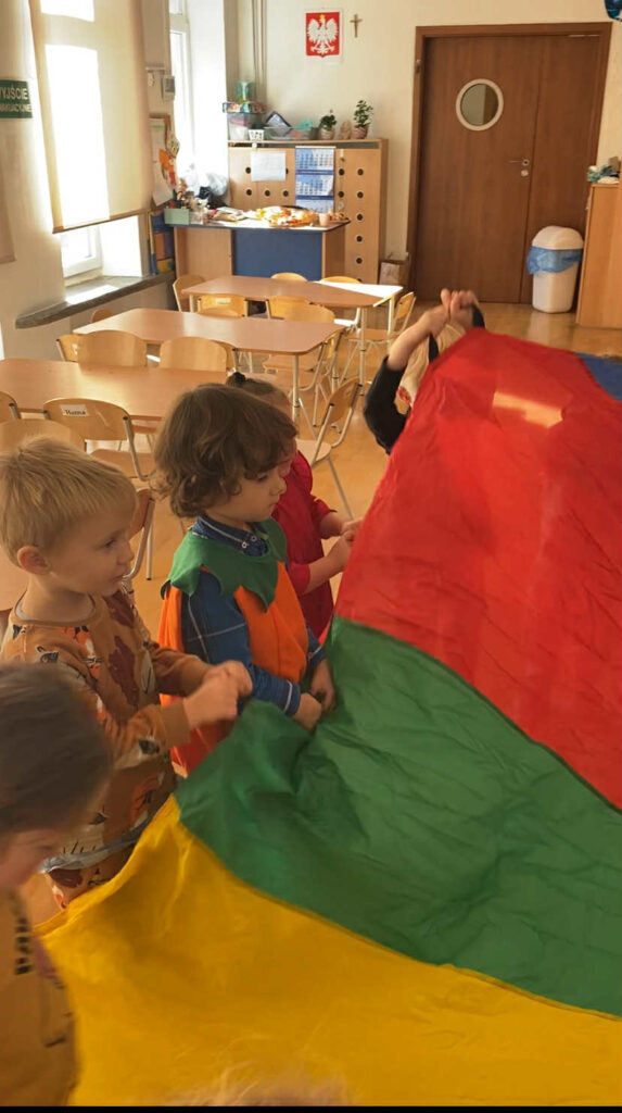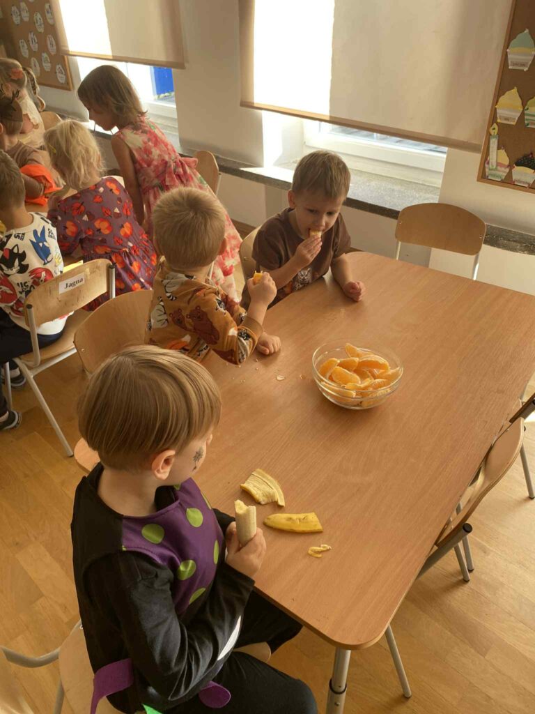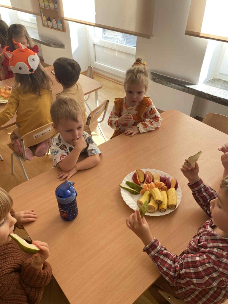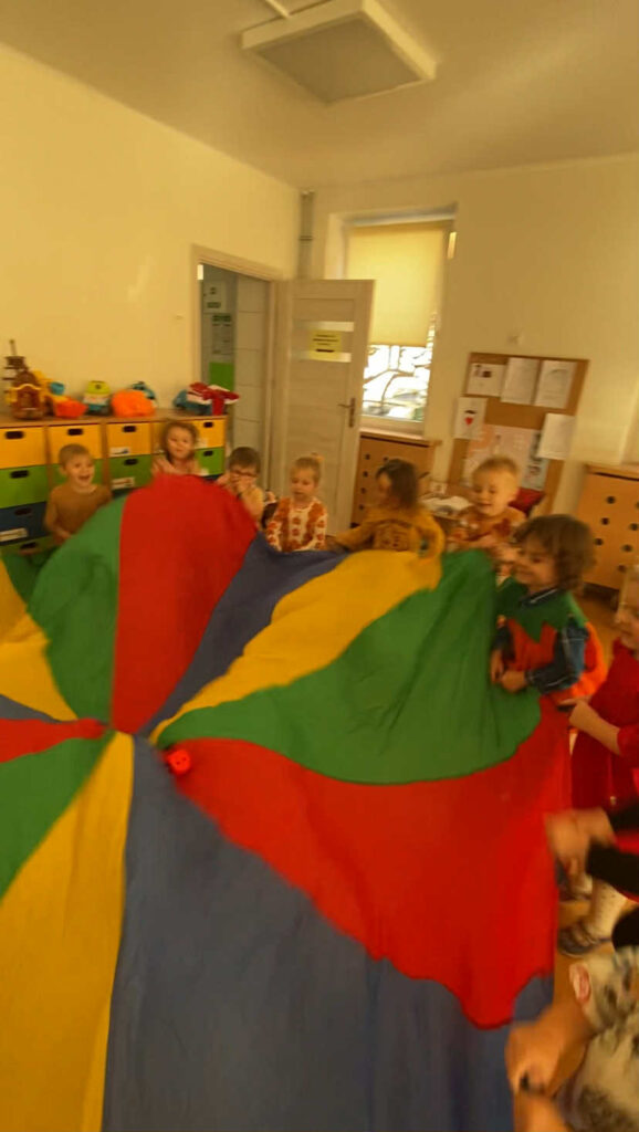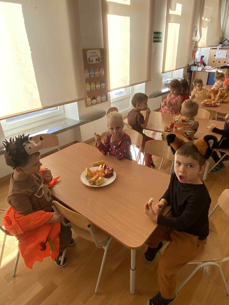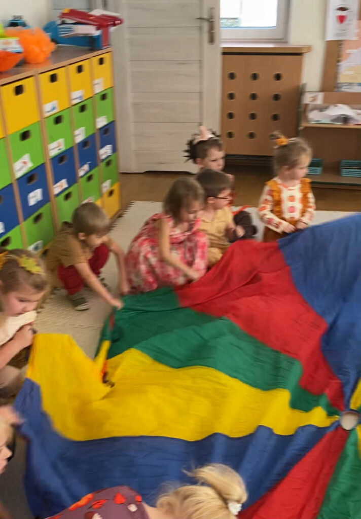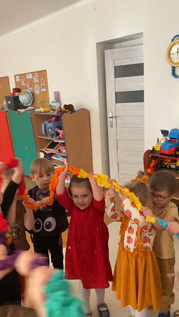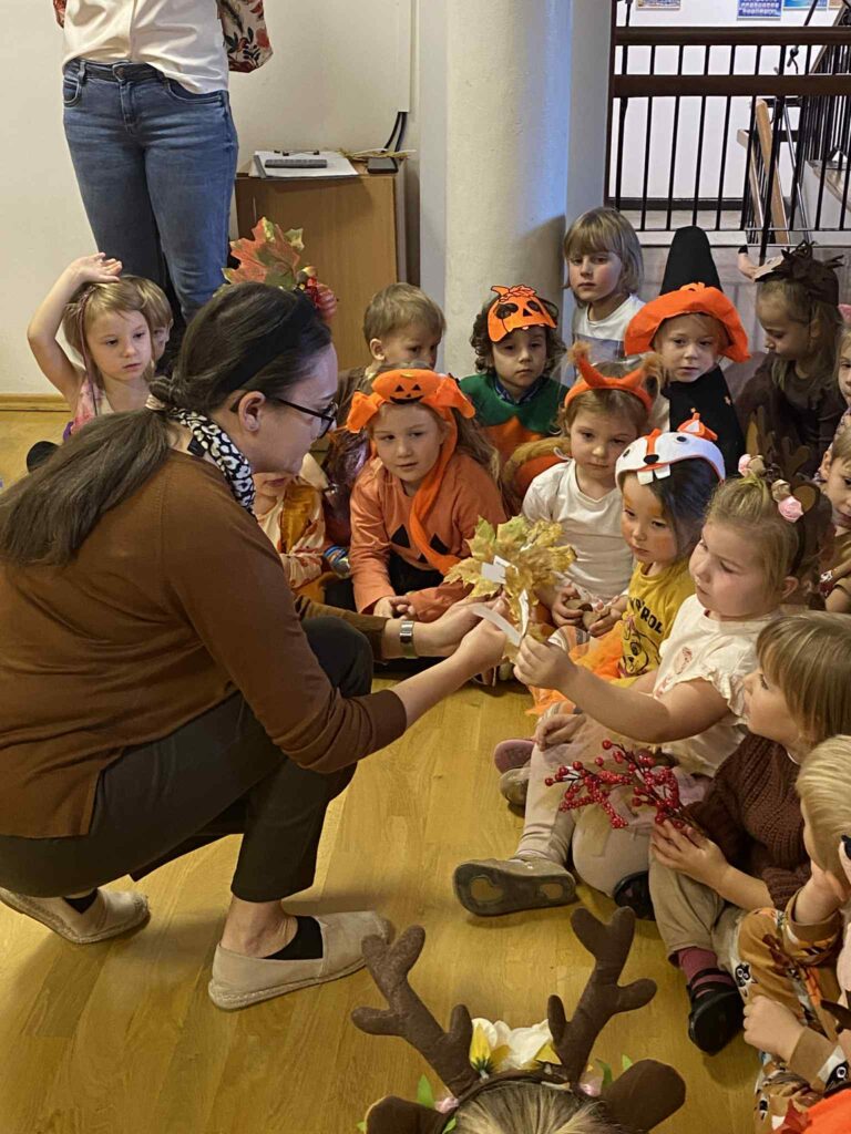 Naszych małych przedszkolaków odwiedziła niezwykła Pani Jesień, która wraz z nami wprowadziła kolorowe, radosne chwile pełne zabawy i uśmiechu. Dzieci z entuzjazmem uczestniczyły w jesiennych tańcach oraz zabawach. Ale to nie koniec niespodzianek! Tego dnia obchodziliśmy także wyjątkowe urodziny naszego Mikołaja. Były tańce, śpiewy, mnóstwo radości a na koniec pyszny poczęstunek.