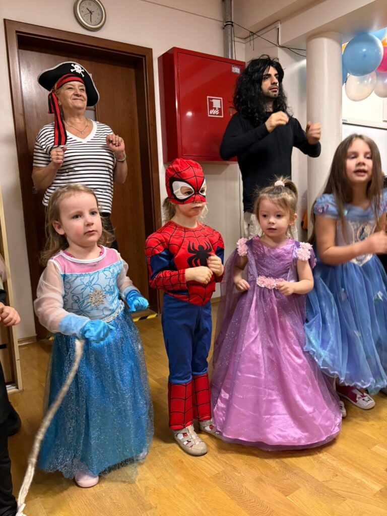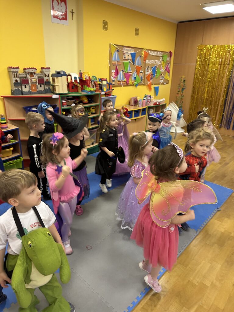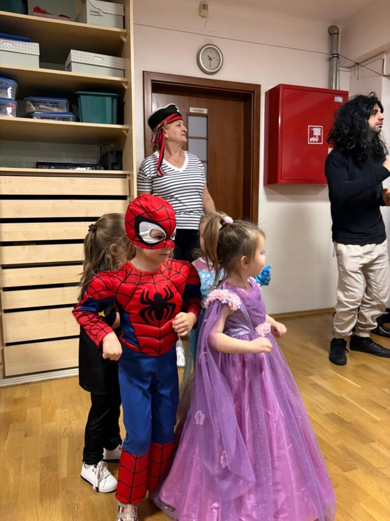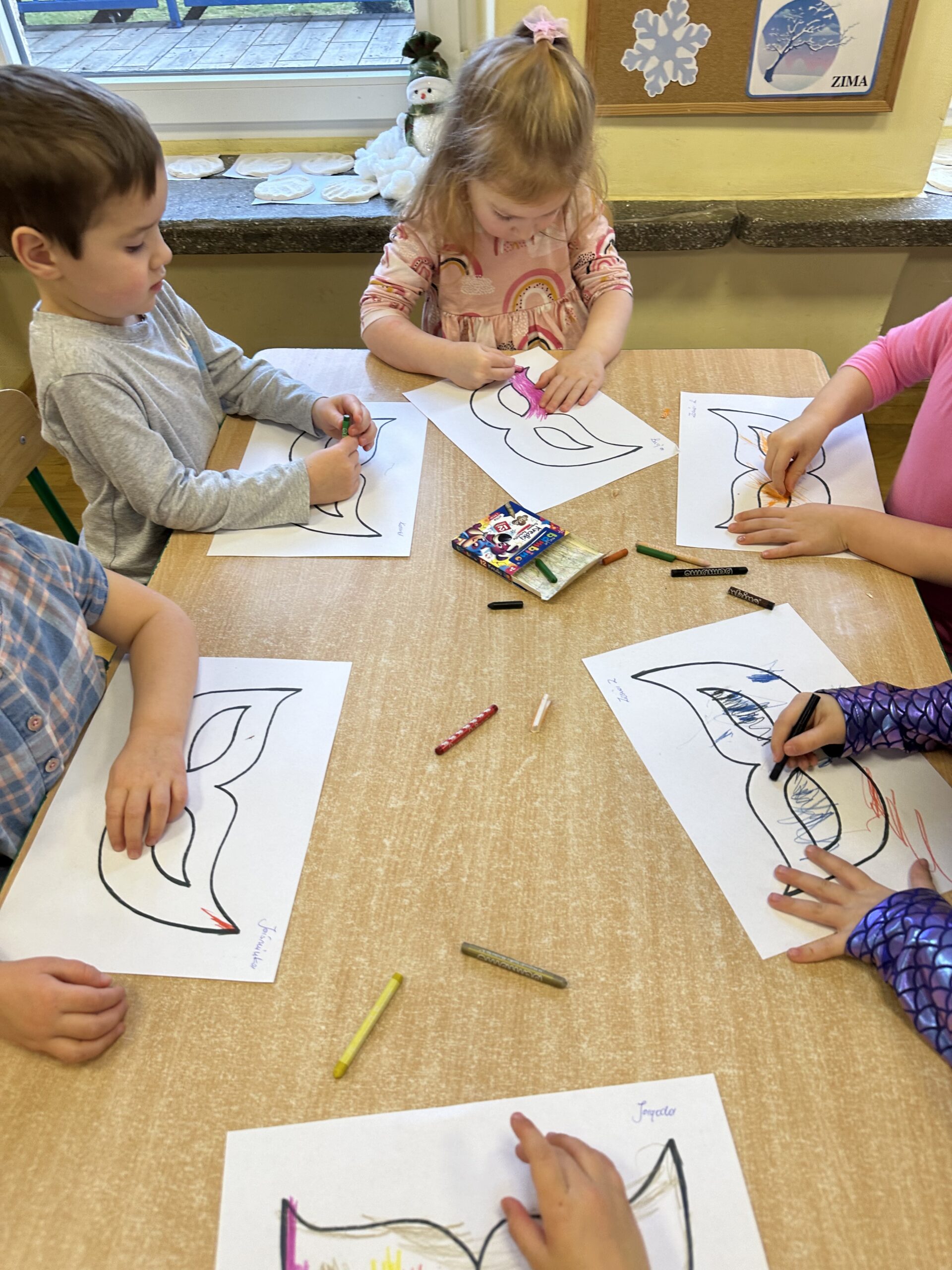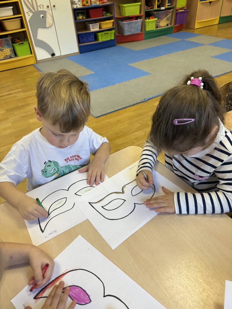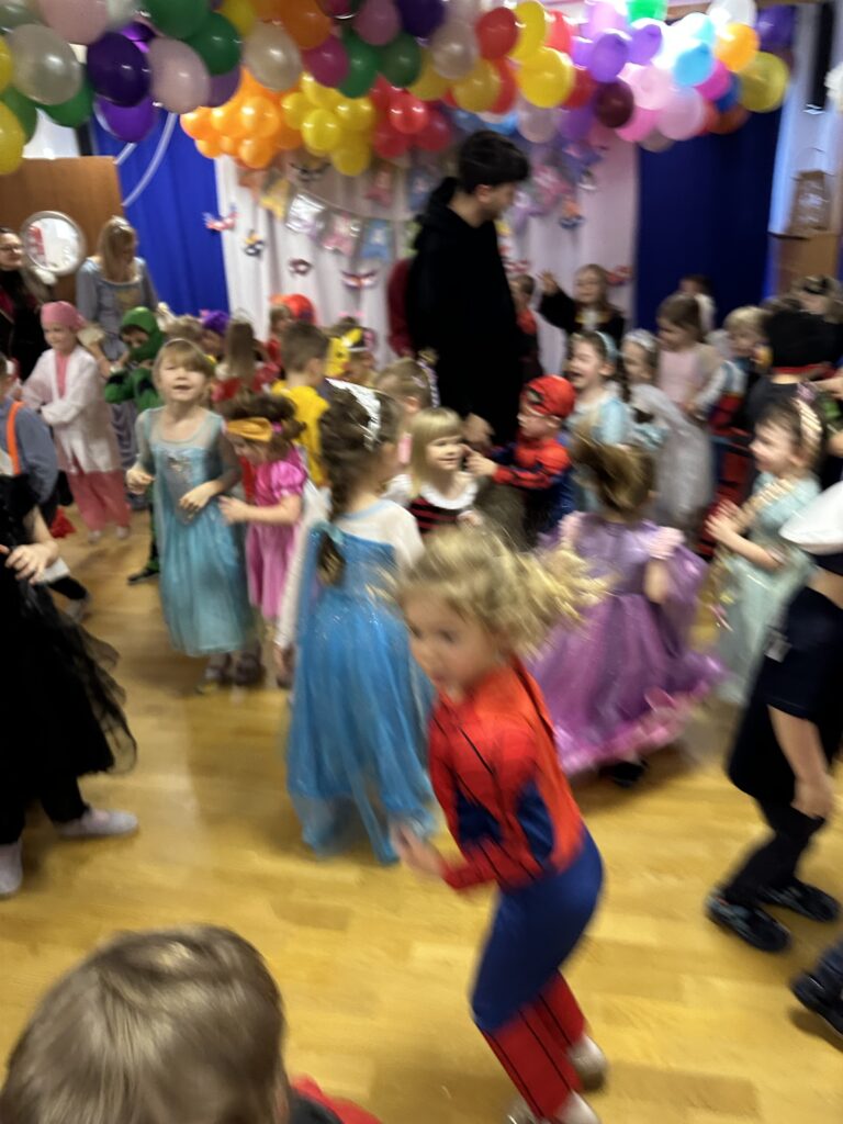 Piątek w naszym przedszkolu był niezwykłym dniem. Każdy z nas mógł zostać kim tylko chciał! Włożyliśmy przeróżne stroje i staliśmy się księżniczkami, superbohaterami, zwierzętami i innymi ulubionymi postaciami. Przed udziałem w przedszkolnym balu, w naszej sali zrobiliśmy małą rozgrzewkę, która wprowadziła nas w karnawałowy nastrój. No a potem, wspólnie ze starszymi kolegami i koleżankami uczestniczyliśmy w zabawie karnawałowej. Tańczyliśmy, braliśmy udział w zabawach, a przy tym było oczywiście dużo radości. Dodatkowo po południu każdy z nas zaprojektował swoją karnawałową maskę. To był niezapomniany dzień! 🎭
