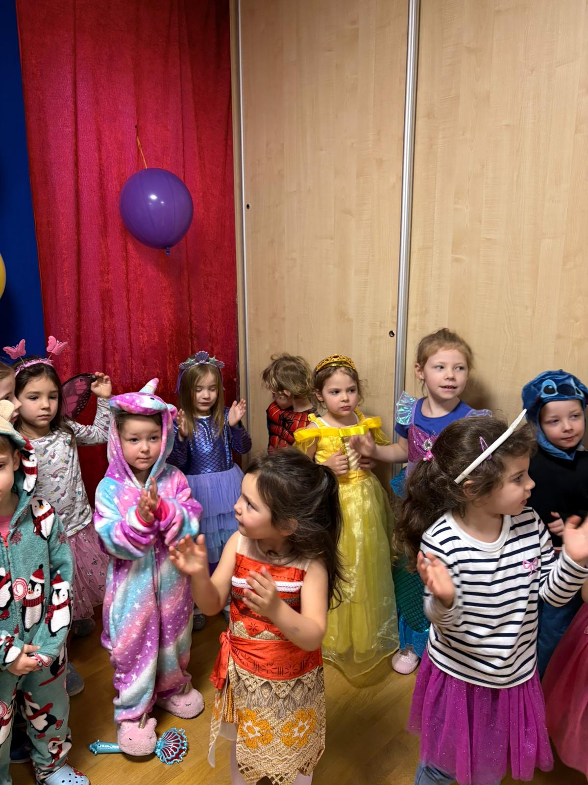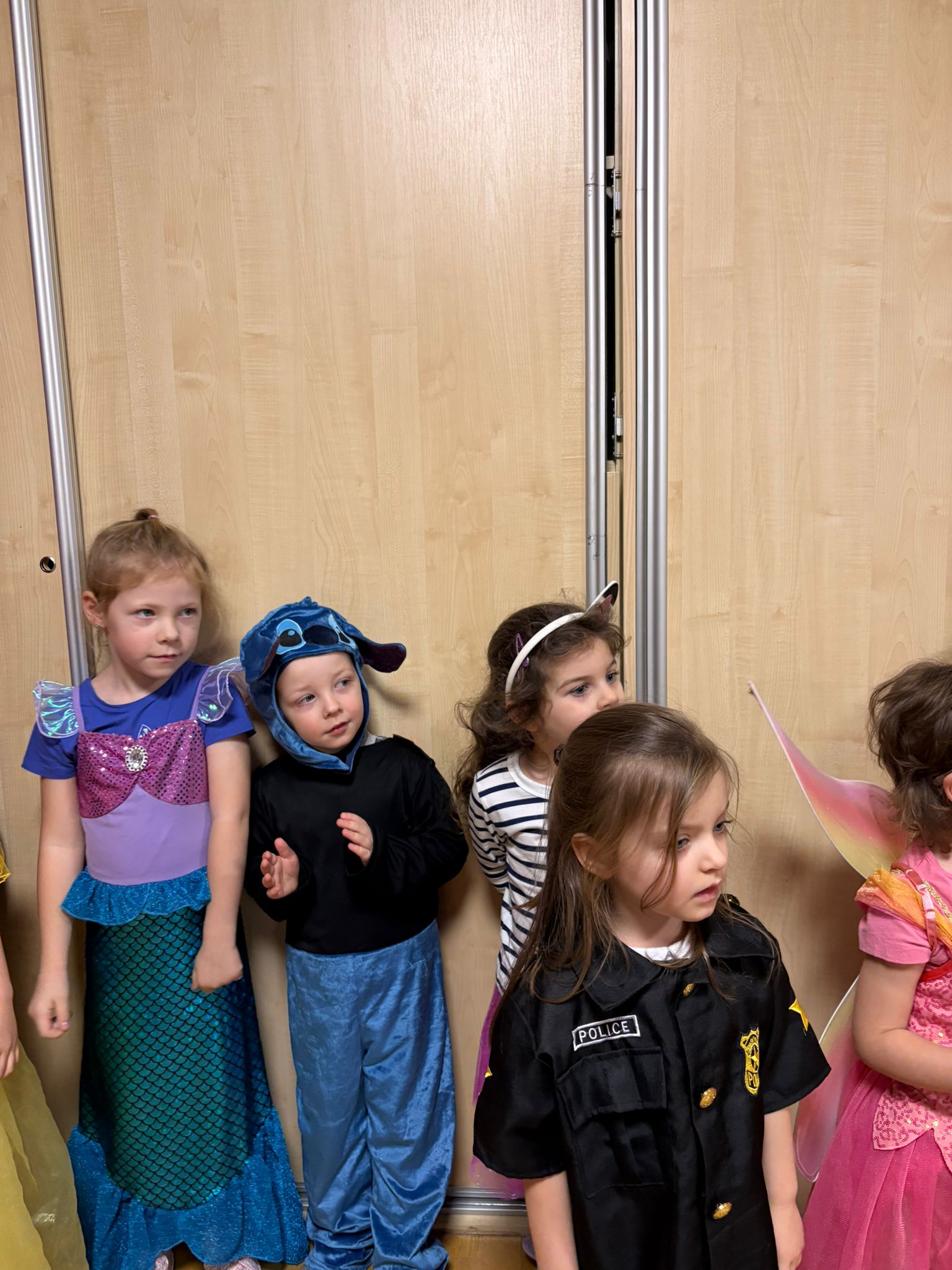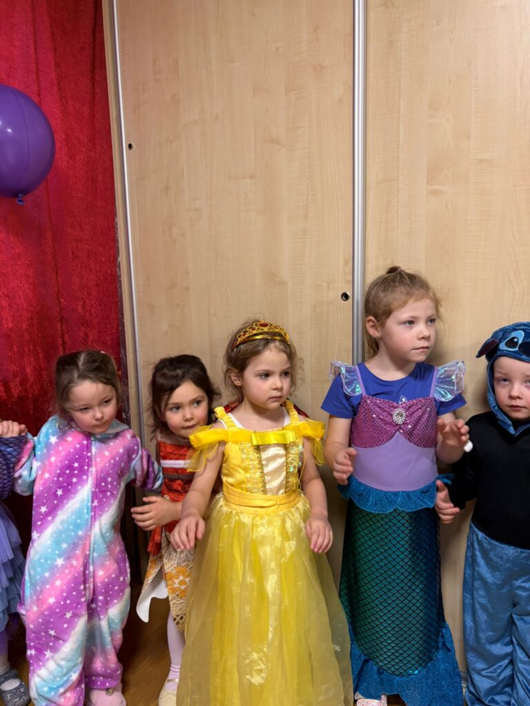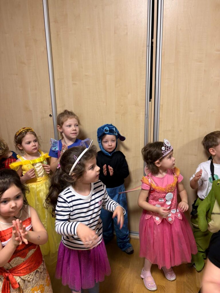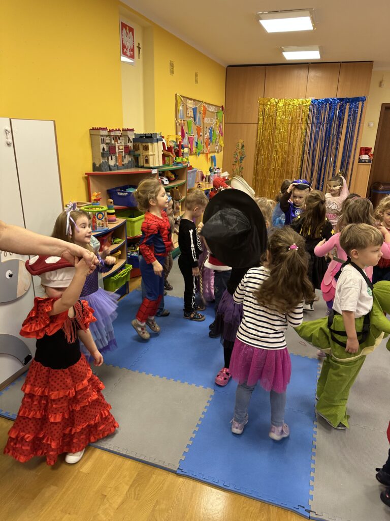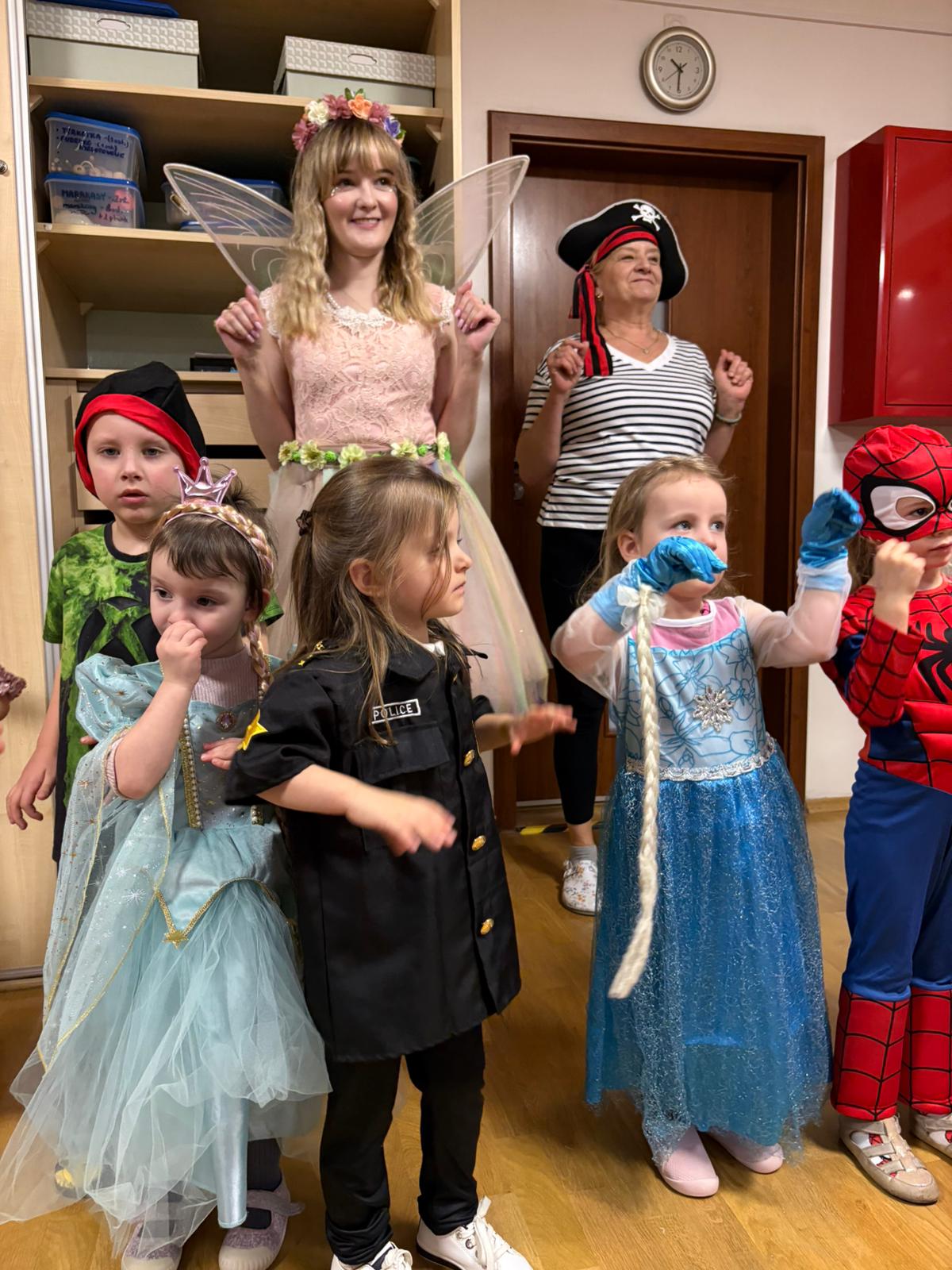 Piątek w naszym przedszkolu był niezwykłym dniem. Każdy z nas mógł zostać kim tylko chciał! Włożyliśmy przeróżne stroje i staliśmy się księżniczkami, superbohaterami, zwierzętami i innymi ulubionymi postaciami. Przed udziałem w przedszkolnym balu, w naszej sali zrobiliśmy małą rozgrzewkę, która wprowadziła nas w karnawałowy nastrój. No a potem, wspólnie ze starszymi kolegami i koleżankami uczestniczyliśmy w zabawie karnawałowej. Tańczyliśmy, braliśmy udział w zabawach, a przy tym było oczywiście dużo radości. Dodatkowo po południu każdy z nas zaprojektował swoją karnawałową maskę. To był niezapomniany dzień! 🎭