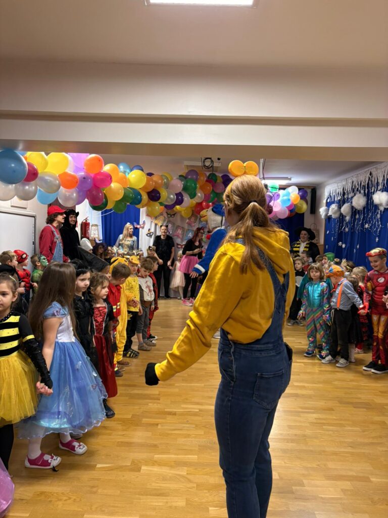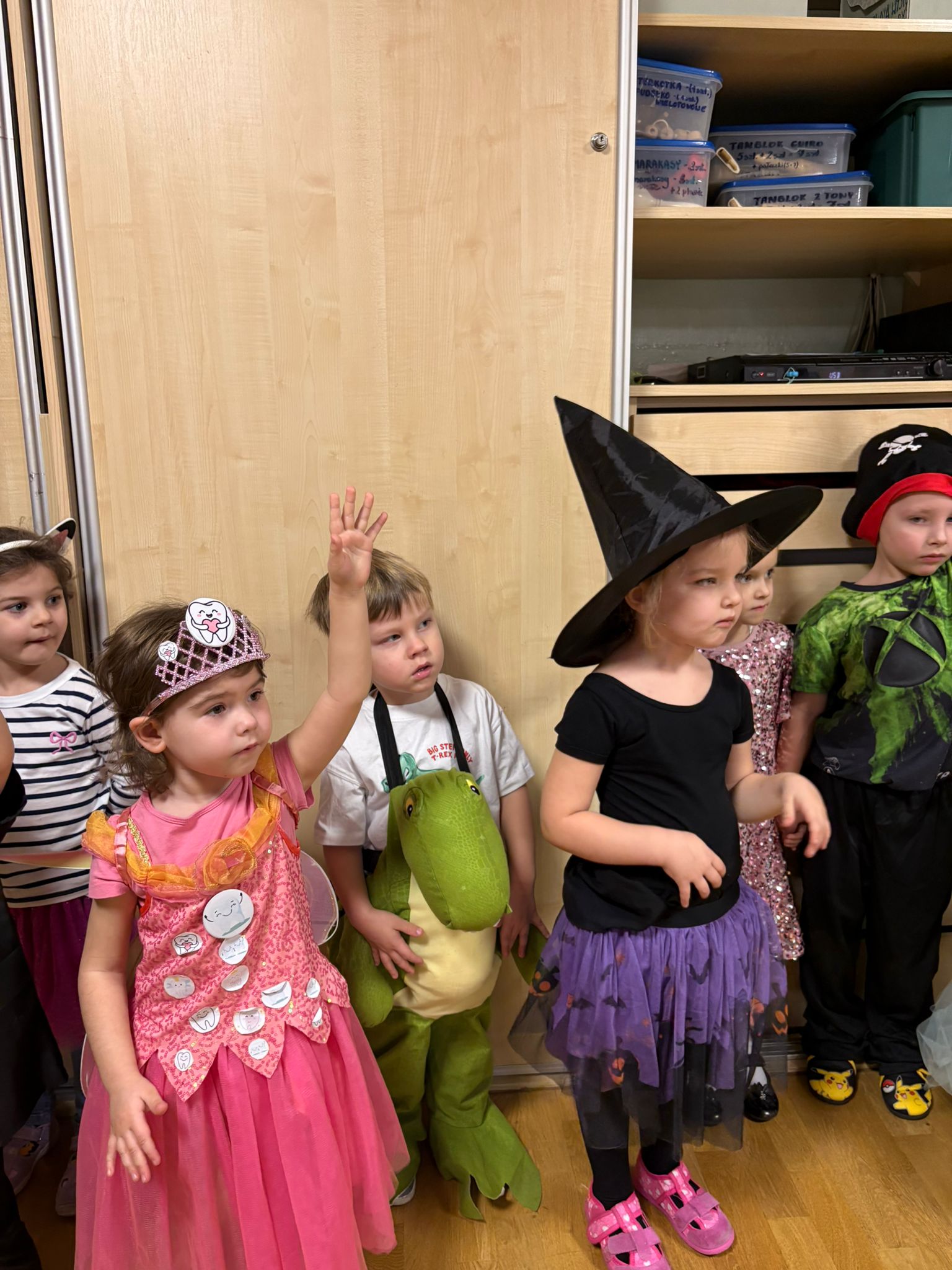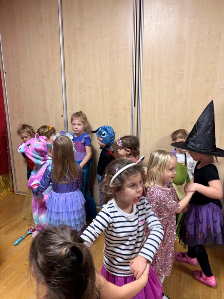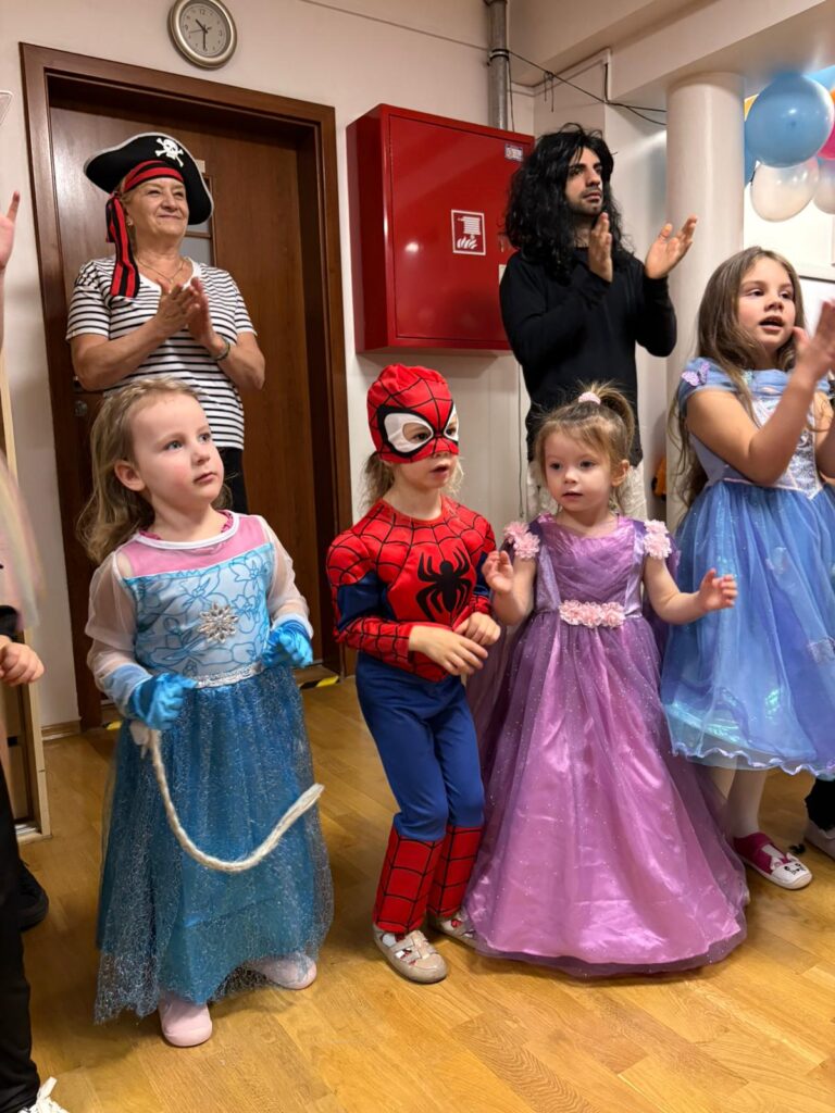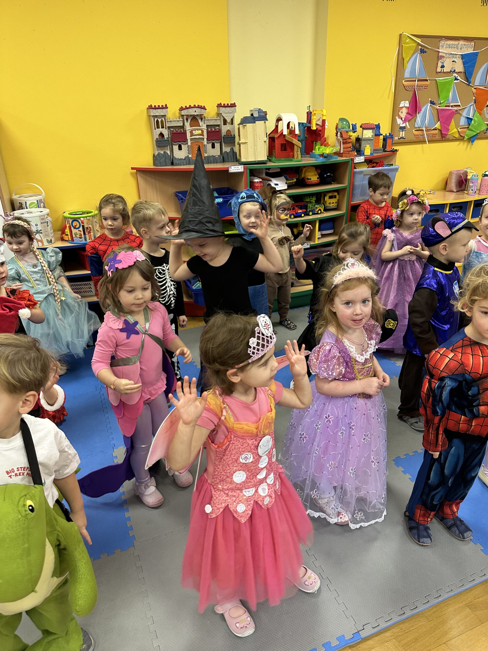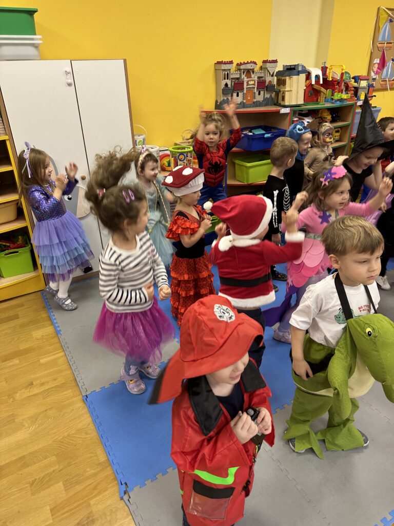 Piątek w naszym przedszkolu był niezwykłym dniem. Każdy z nas mógł zostać kim tylko chciał! Włożyliśmy przeróżne stroje i staliśmy się księżniczkami, superbohaterami, zwierzętami i innymi ulubionymi postaciami. Przed udziałem w przedszkolnym balu, w naszej sali zrobiliśmy małą rozgrzewkę, która wprowadziła nas w karnawałowy nastrój. No a potem, wspólnie ze starszymi kolegami i koleżankami uczestniczyliśmy w zabawie karnawałowej. Tańczyliśmy, braliśmy udział w zabawach, a przy tym było oczywiście dużo radości. Dodatkowo po południu każdy z nas zaprojektował swoją karnawałową maskę. To był niezapomniany dzień! 🎭