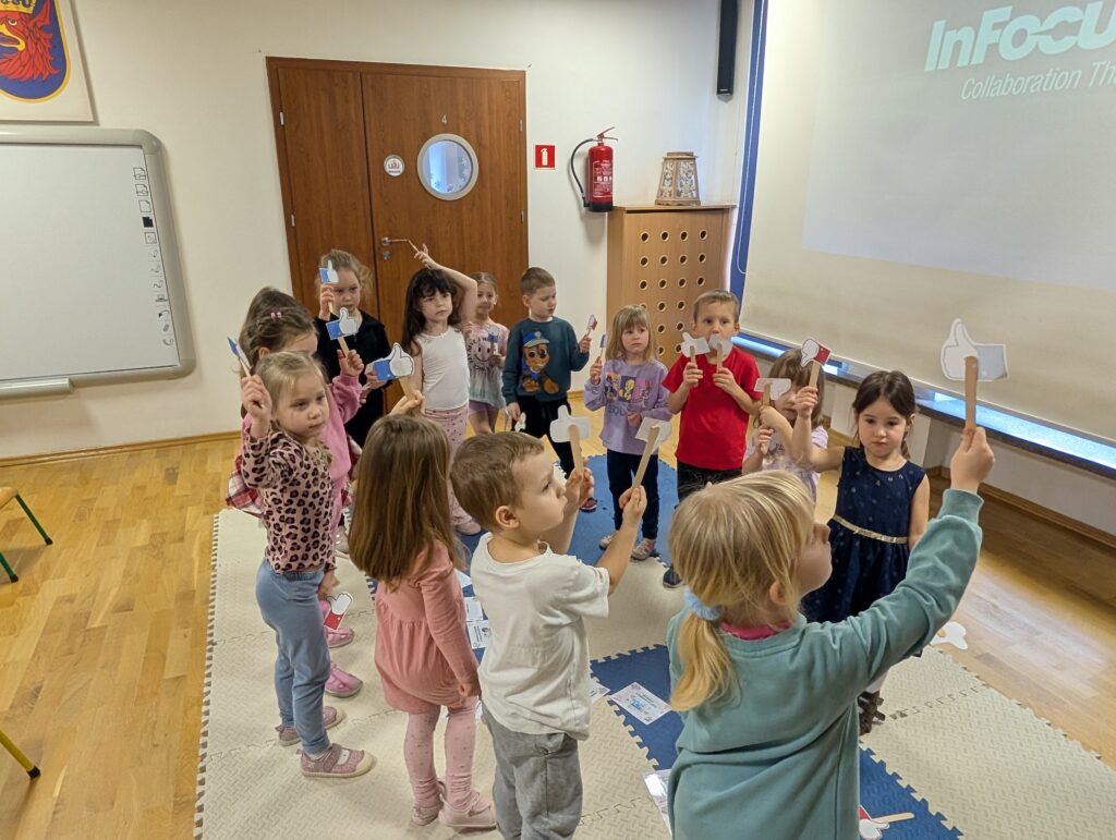 7.02 dzisiaj wraz z grupą Rybaków braliśmy udział w zabawach rytmicznych z wykorzystaniem kubeczków, świetnie się przy tym bawiliśmy.