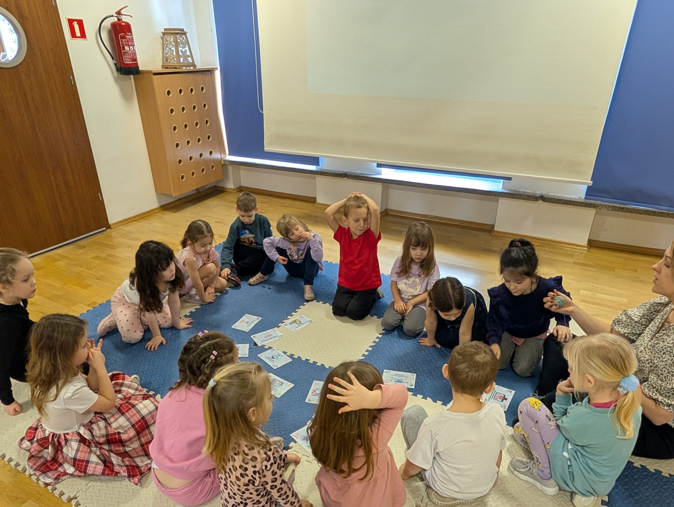7.02 dzisiaj wraz z grupą Rybaków braliśmy udział w zabawach rytmicznych z wykorzystaniem kubeczków, świetnie się przy tym bawiliśmy.