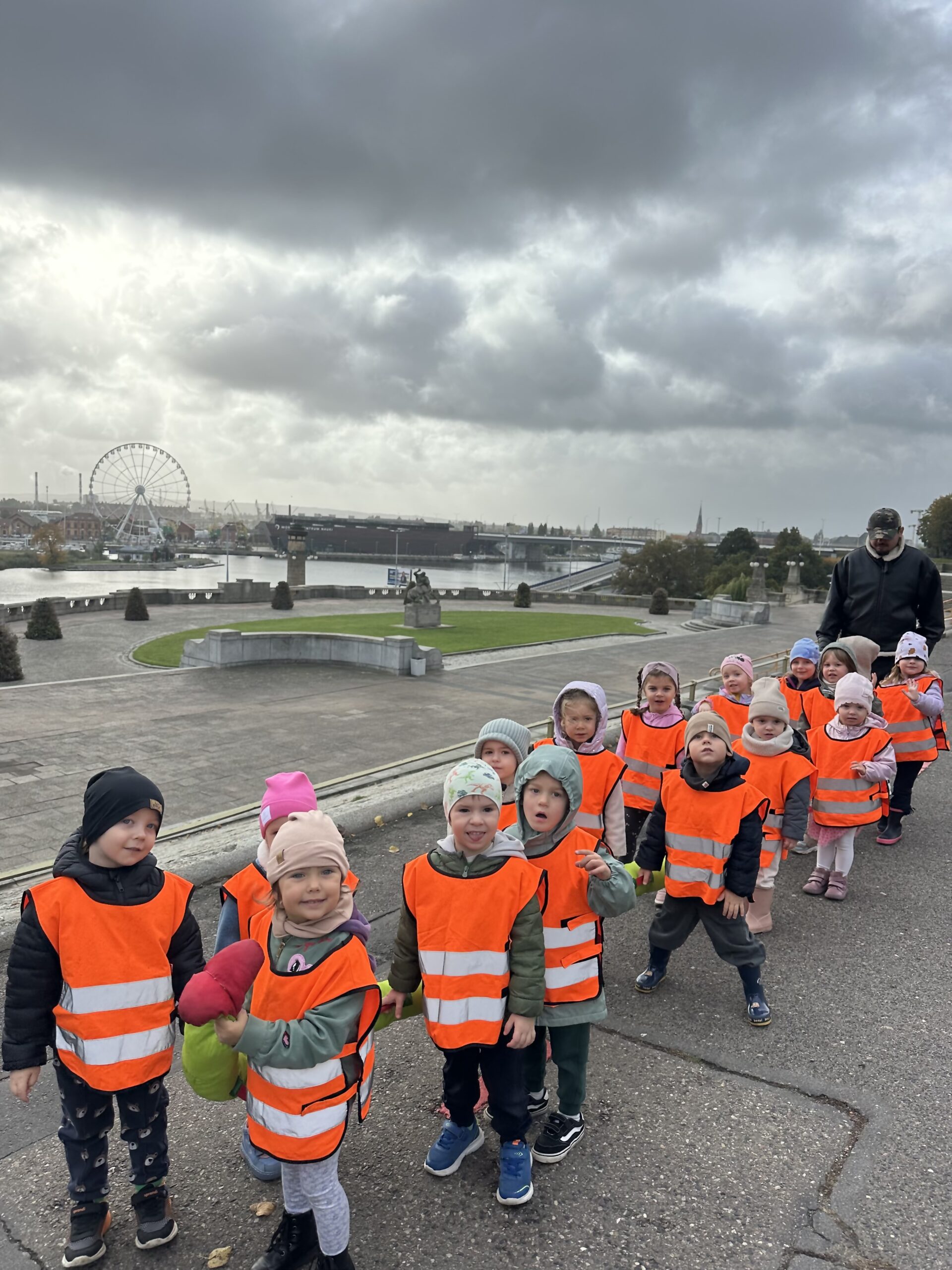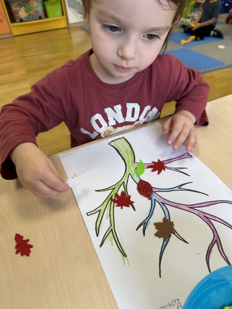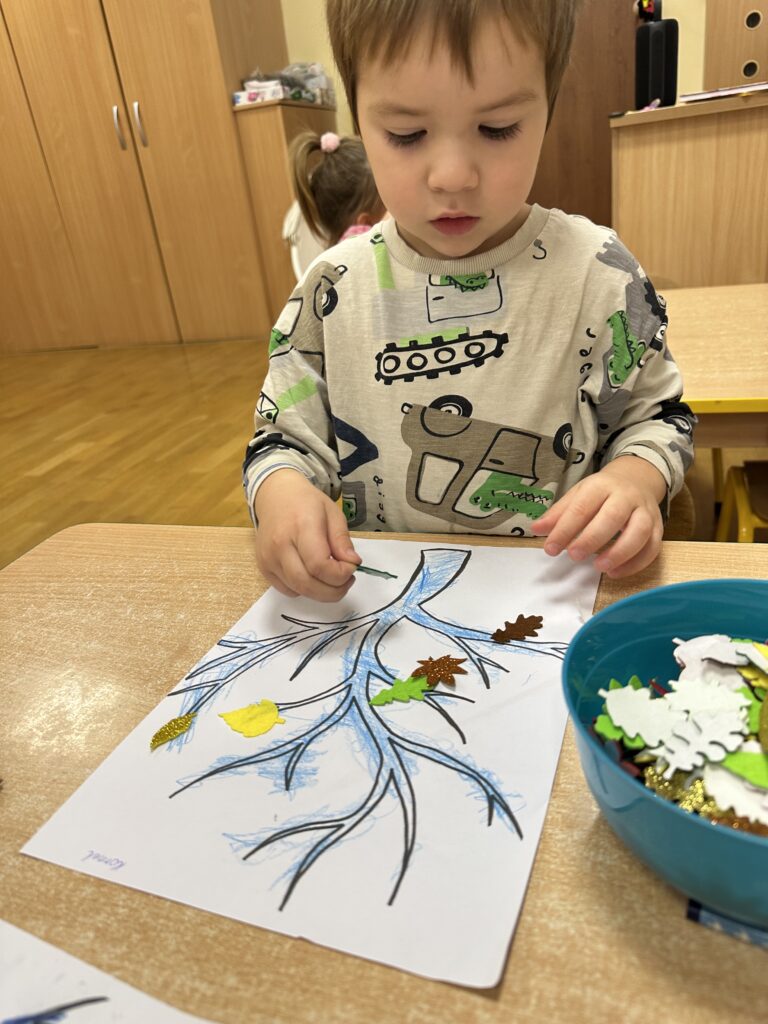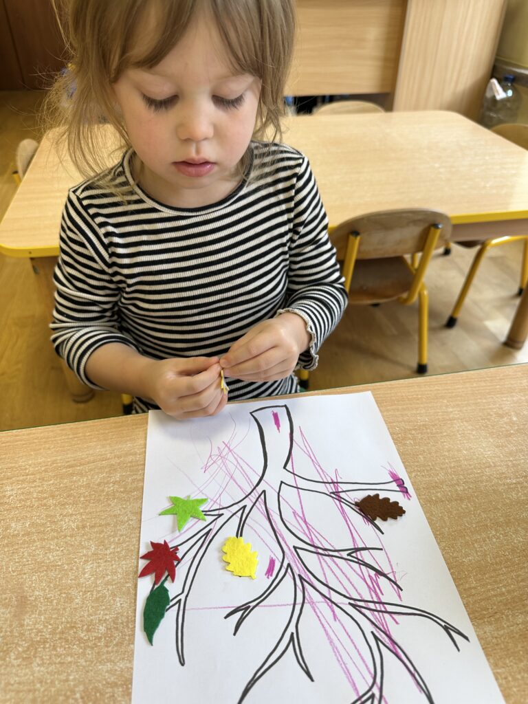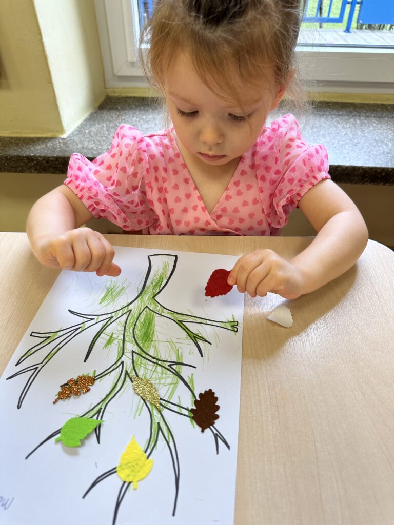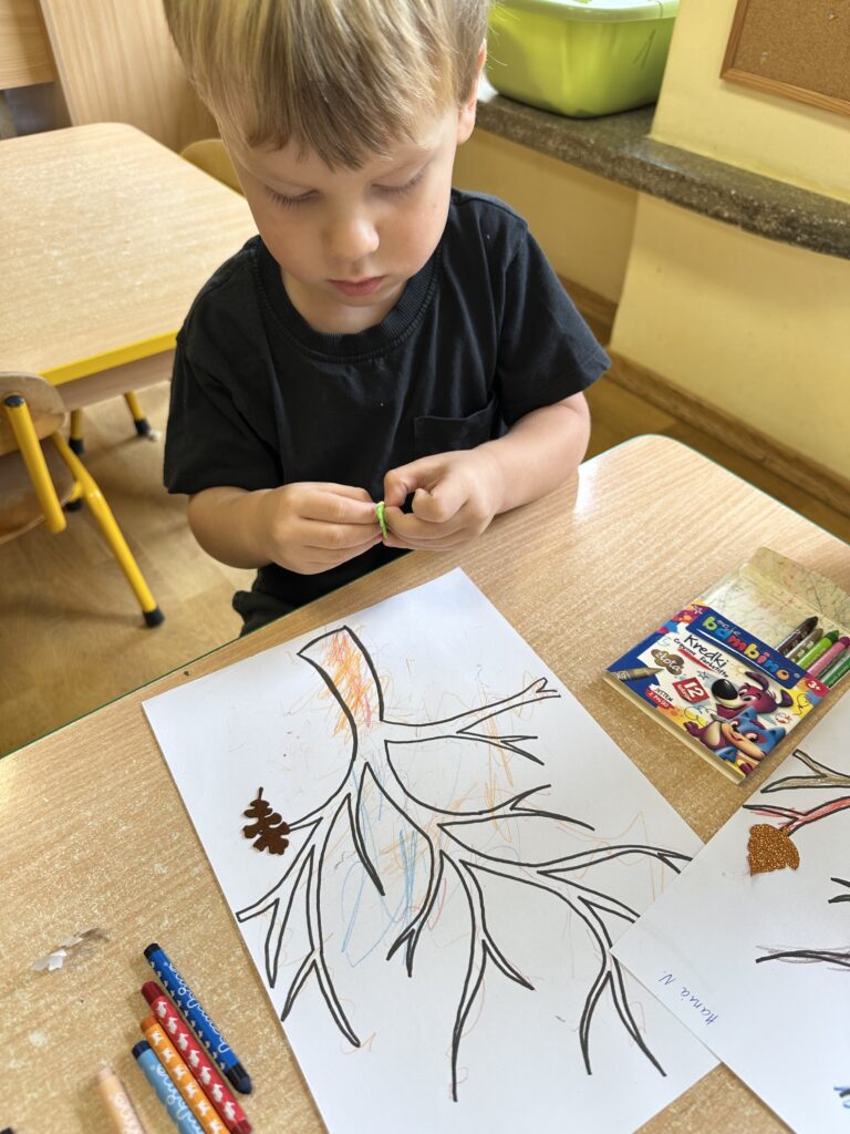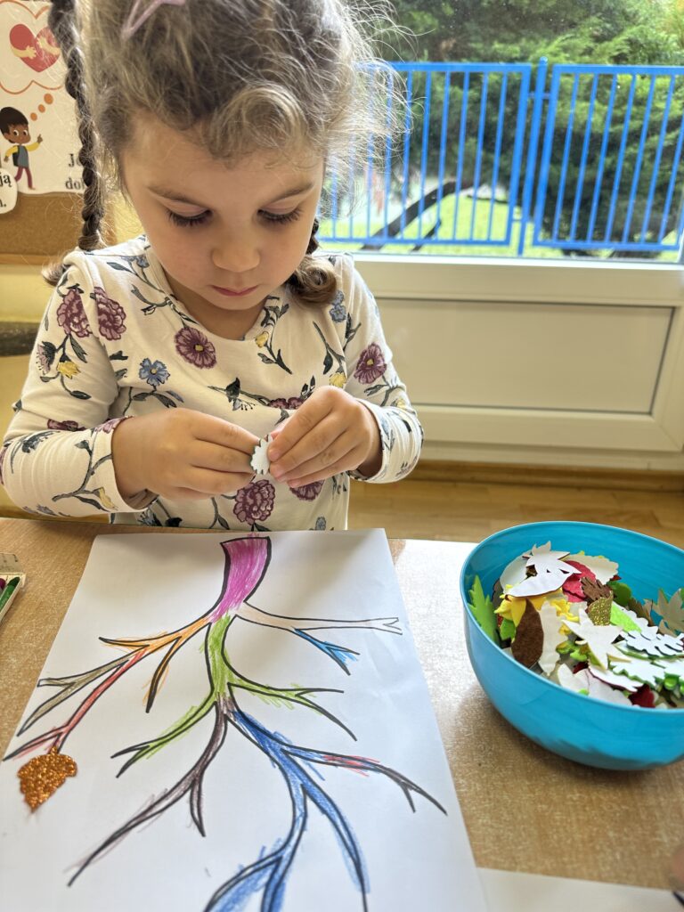 10 października w naszej grupie obchodziliśmy Dzień Drzewa. Z tej okazji wybraliśmy się na spacer na Wały Chrobrego. W okolicy znajduje się wiele drzew, które bacznie obserwowaliśmy. Dowiedzieliśmy się jaka jest budowa drzewa. Dostrzegaliśmy różne jego części: pień, korzenie, gałęzie i liście. Uczyliśmy się także nazw poszczególnych drzew. Na koniec wykonaliśmy pracę plastyczną, dzięki której ćwiczyliśmy sprawność naszych paluszków.