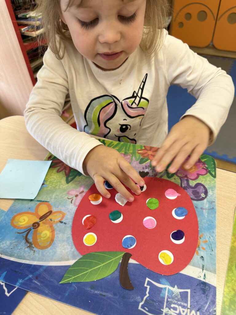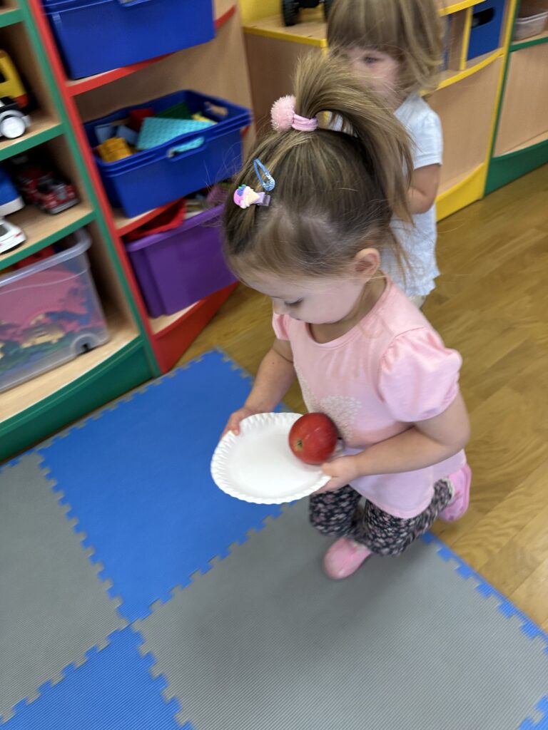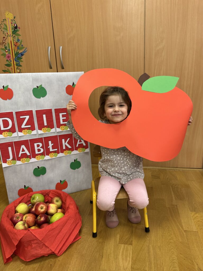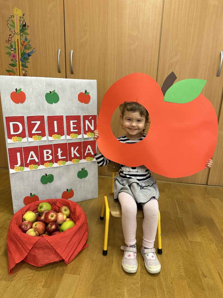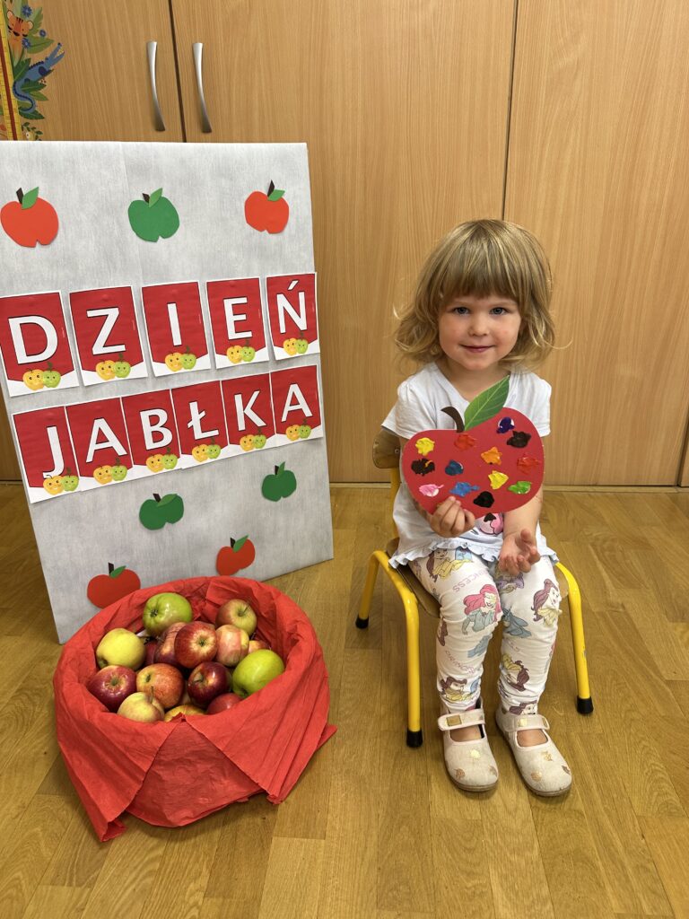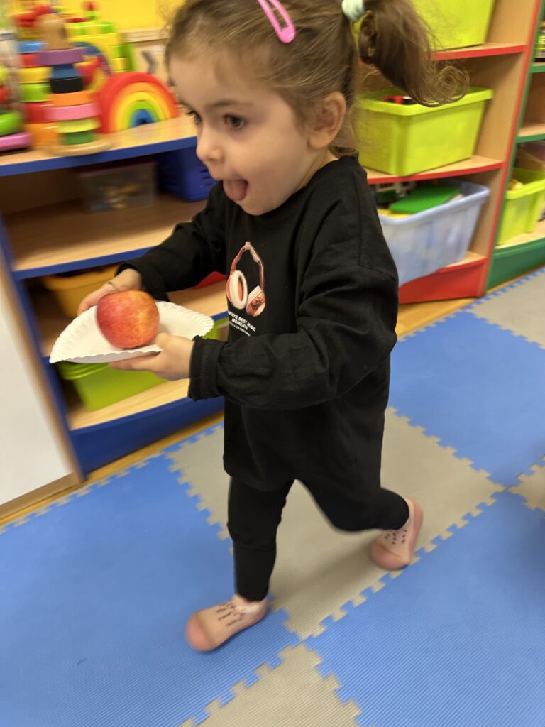 Dzień Jabłka w naszej grupie był pełen różnorodnych atrakcji. Na sam początek zobaczyliśmy, że jabłka mogą mieć różne kolory. Po przekrojeniu ich dowiedzieliśmy się, że w środku wszystkie z nich są takie same, a na dodatek mają pestki. Każdy z nas skosztował jabłuszko i określił jego smak. Większość była naprawdę słodziutka. Mieliśmy także okazję wziąć udział w wyścigu jabłek. Każdy z nas musiał utrzymać je na talerzyku tak, aby nie spadło. Wcale nie było to takie łatwe 🙂 Udało nam się też wykleić jabłko plasteliną, tworząc pracę, którą zabraliśmy do domu. Bawiliśmy się naprawdę super.