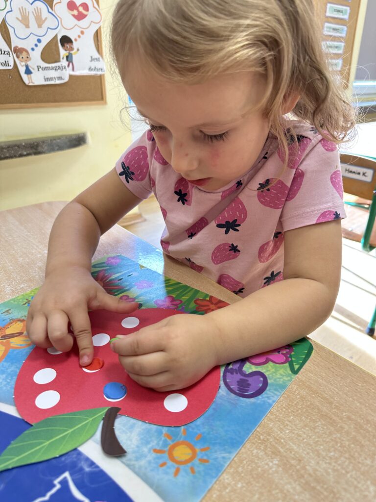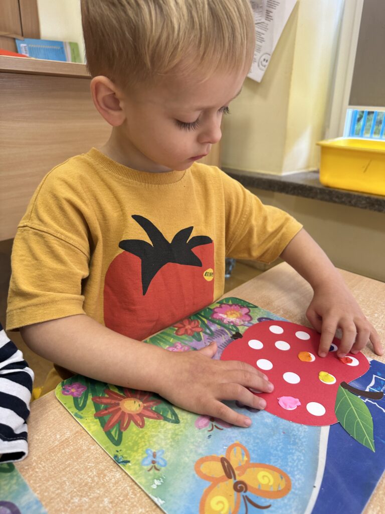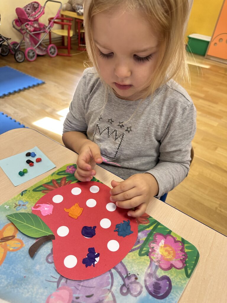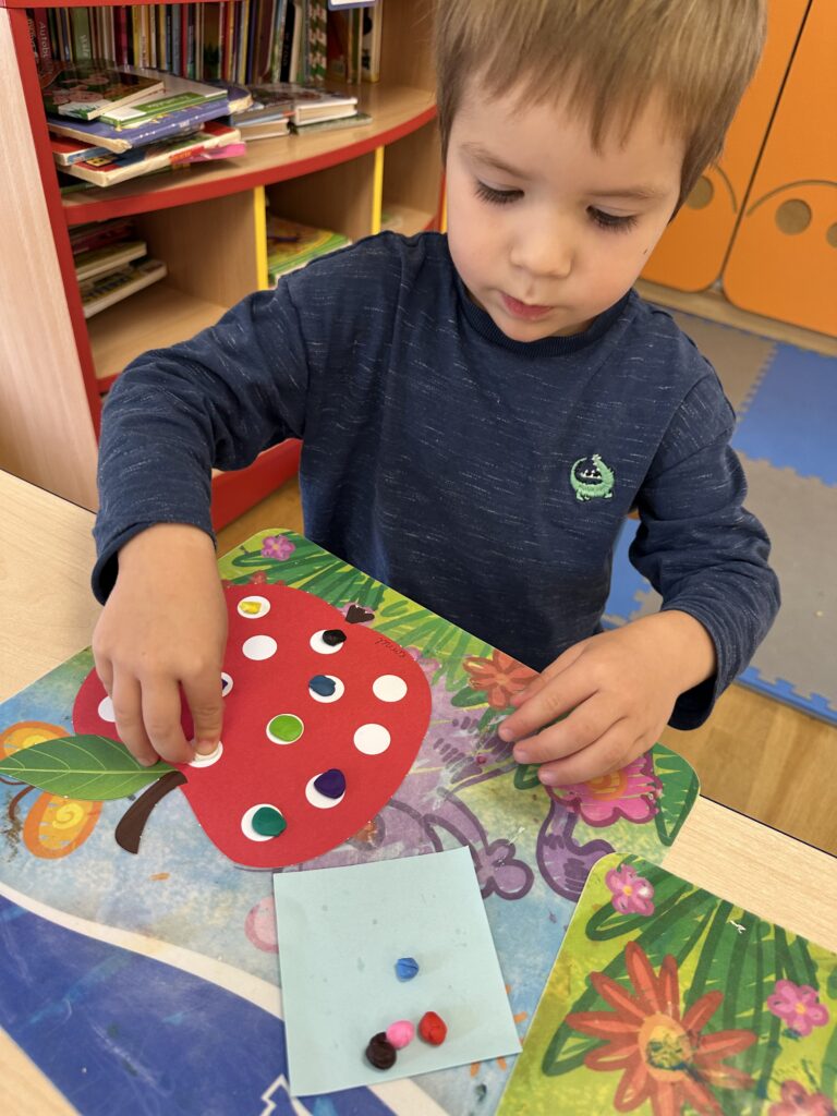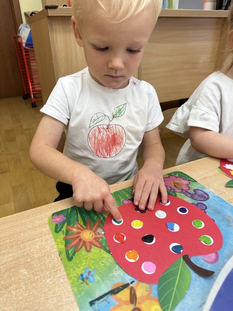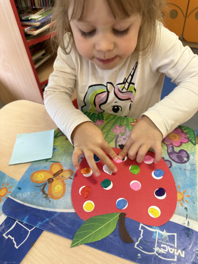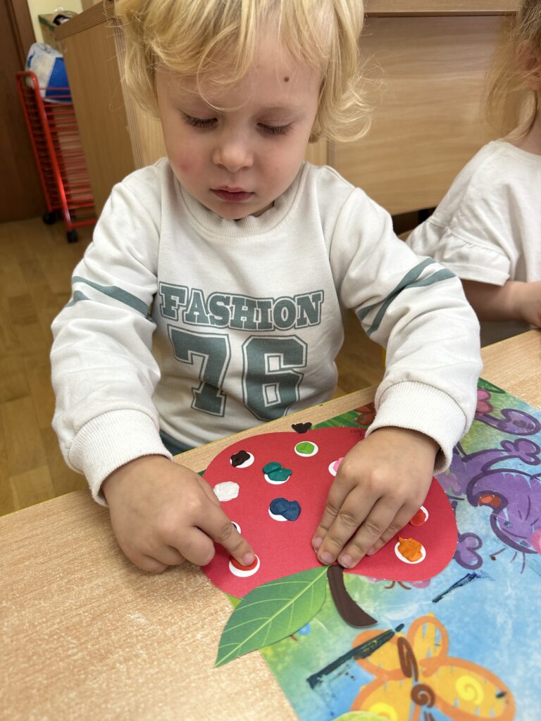 Dzień Jabłka w naszej grupie był pełen różnorodnych atrakcji. Na sam początek zobaczyliśmy, że jabłka mogą mieć różne kolory. Po przekrojeniu ich dowiedzieliśmy się, że w środku wszystkie z nich są takie same, a na dodatek mają pestki. Każdy z nas skosztował jabłuszko i określił jego smak. Większość była naprawdę słodziutka. Mieliśmy także okazję wziąć udział w wyścigu jabłek. Każdy z nas musiał utrzymać je na talerzyku tak, aby nie spadło. Wcale nie było to takie łatwe 🙂 Udało nam się też wykleić jabłko plasteliną, tworząc pracę, którą zabraliśmy do domu. Bawiliśmy się naprawdę super.