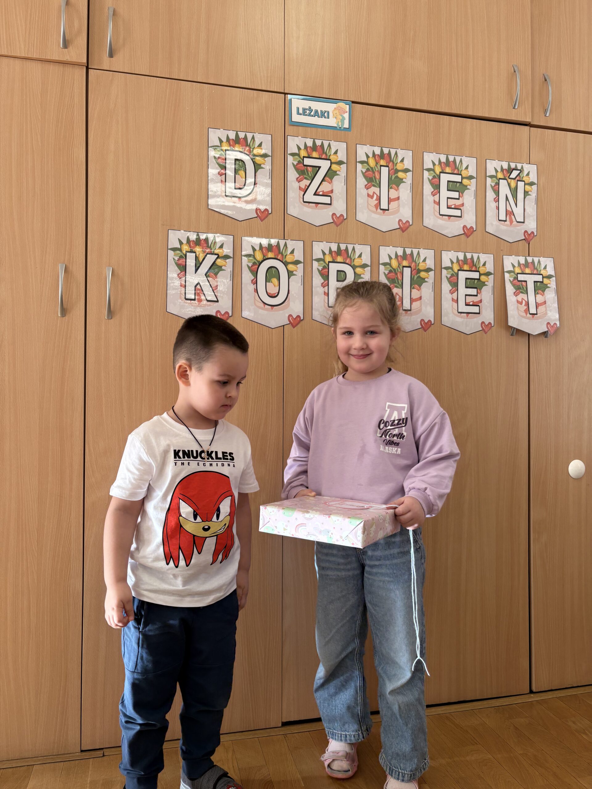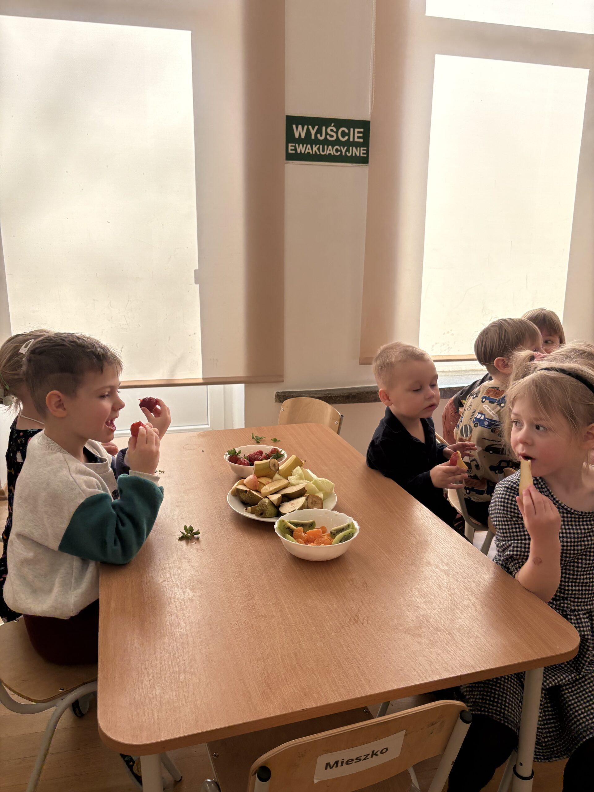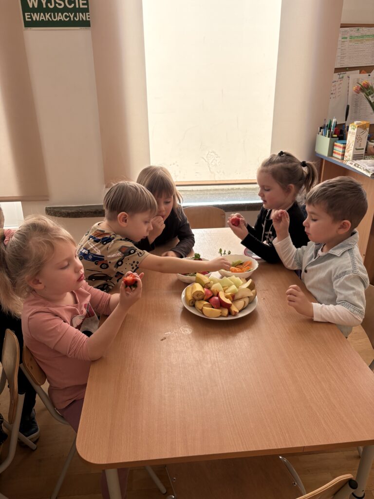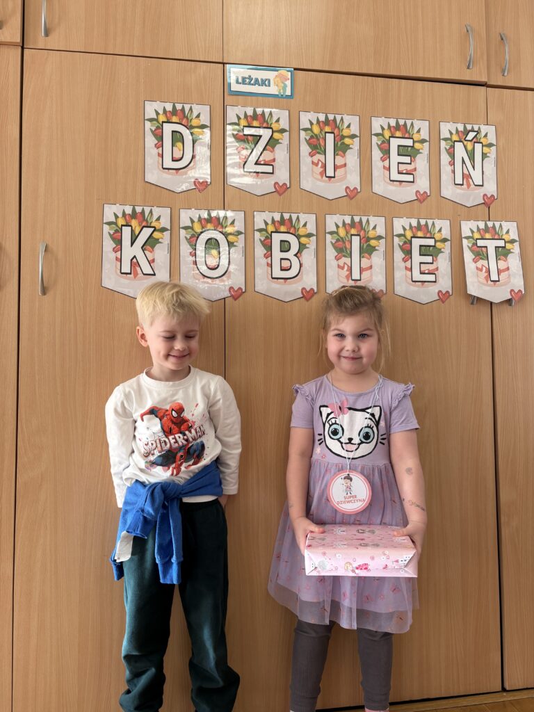 Chłopcy z dużym zaangażowaniem wręczyli koleżankom upominki oraz pamiątkowe medale, składając im serdeczne życzenia. Na zakończenie wszyscy wspólnie świętowaliśmy przy zdrowym poczęstunku – na dzieci czekały pyszne i kolorowe owoce.