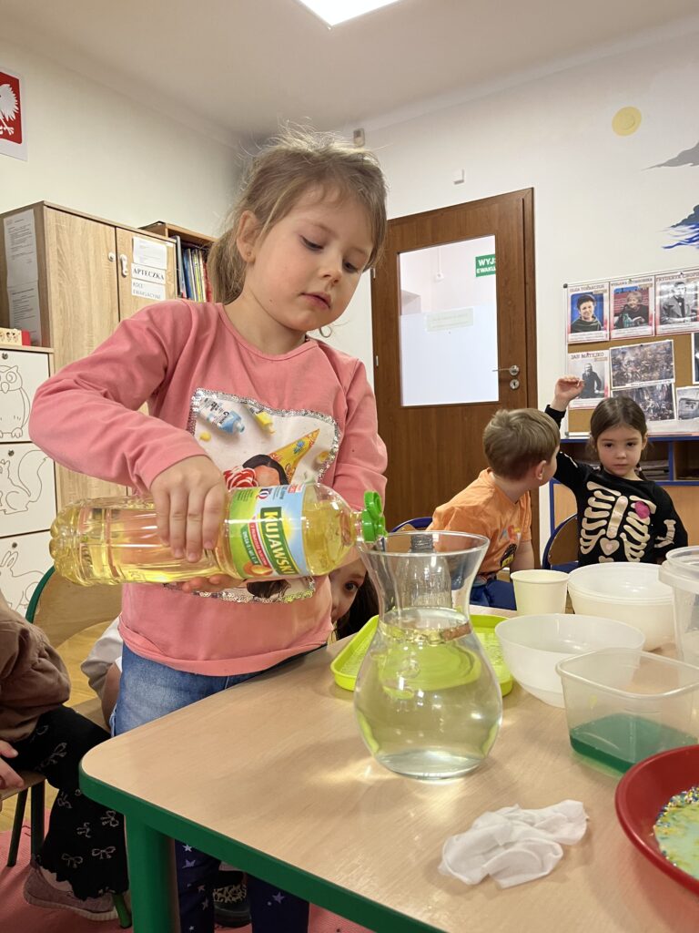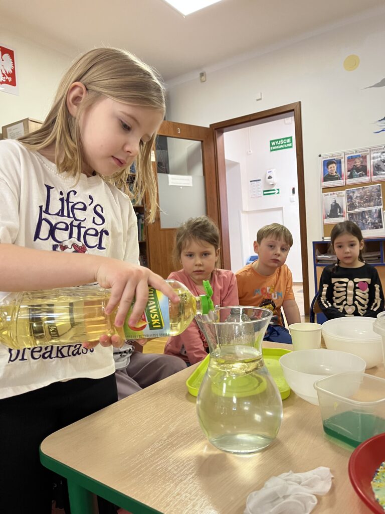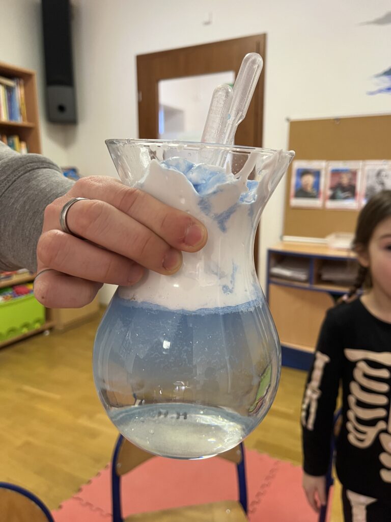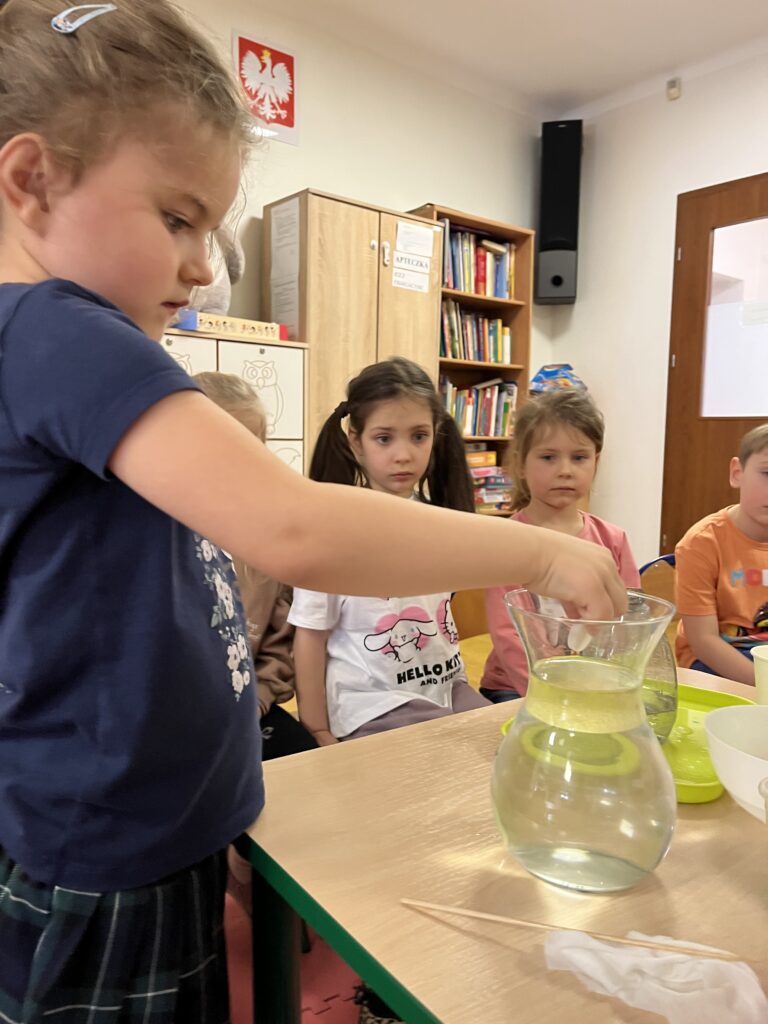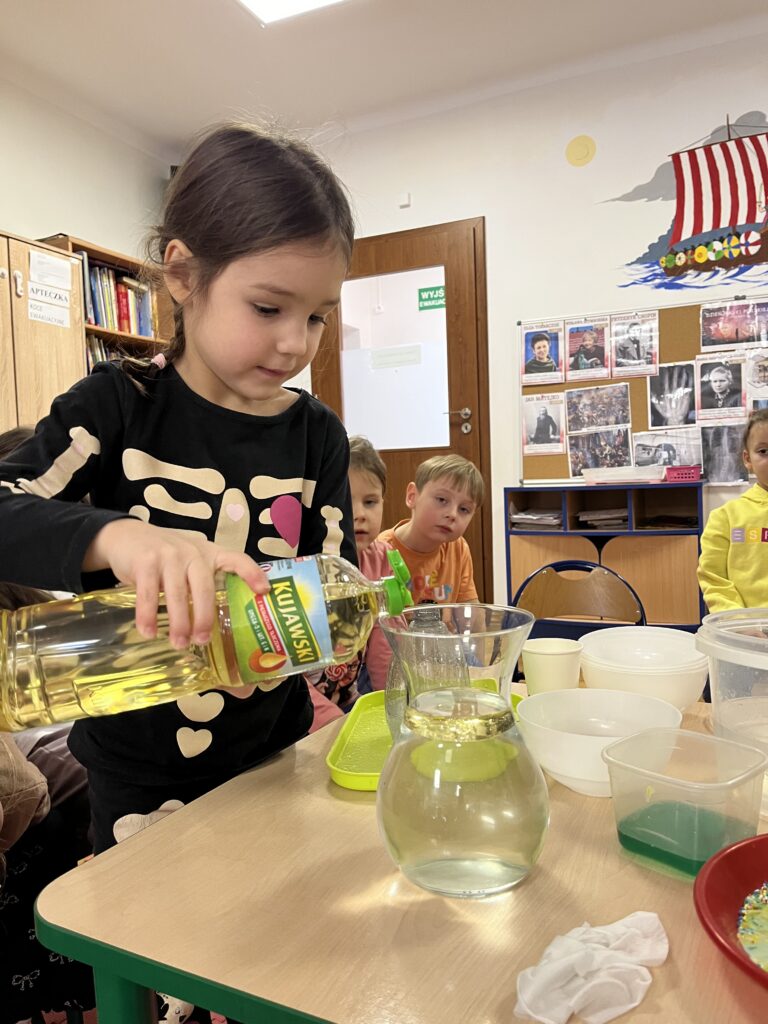 Kolejną inspirującą postacią była Maria Skłodowska-Curie. Przedszkolaki dowiedziały się, że odkryła dwa pierwiastki i stworzyła ” Małe Curie”, była dwukrotną laureatką Nagrody Nobla. Wcielając się w małych badaczy, dzieci wykonywały proste i bezpieczne eksperymenty, odkrywając tajemnice nauki poprzez zabawę i doświadczenie.