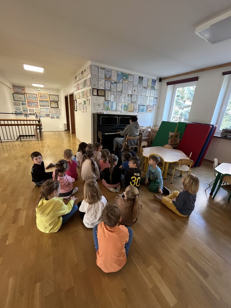 Dzieci poznały sylwetkę wybitnego kompozytora – Fryderyk Chopin. Dowiedziały się, kim był oraz jak powstaje muzyka fortepianowa. Ogromną radość sprawił im wujek Bruno -wolontariusz, który zagrał na pianinie utwory Chopina, pozwalając dzieciom poczuć magię muzyki na żywo.
