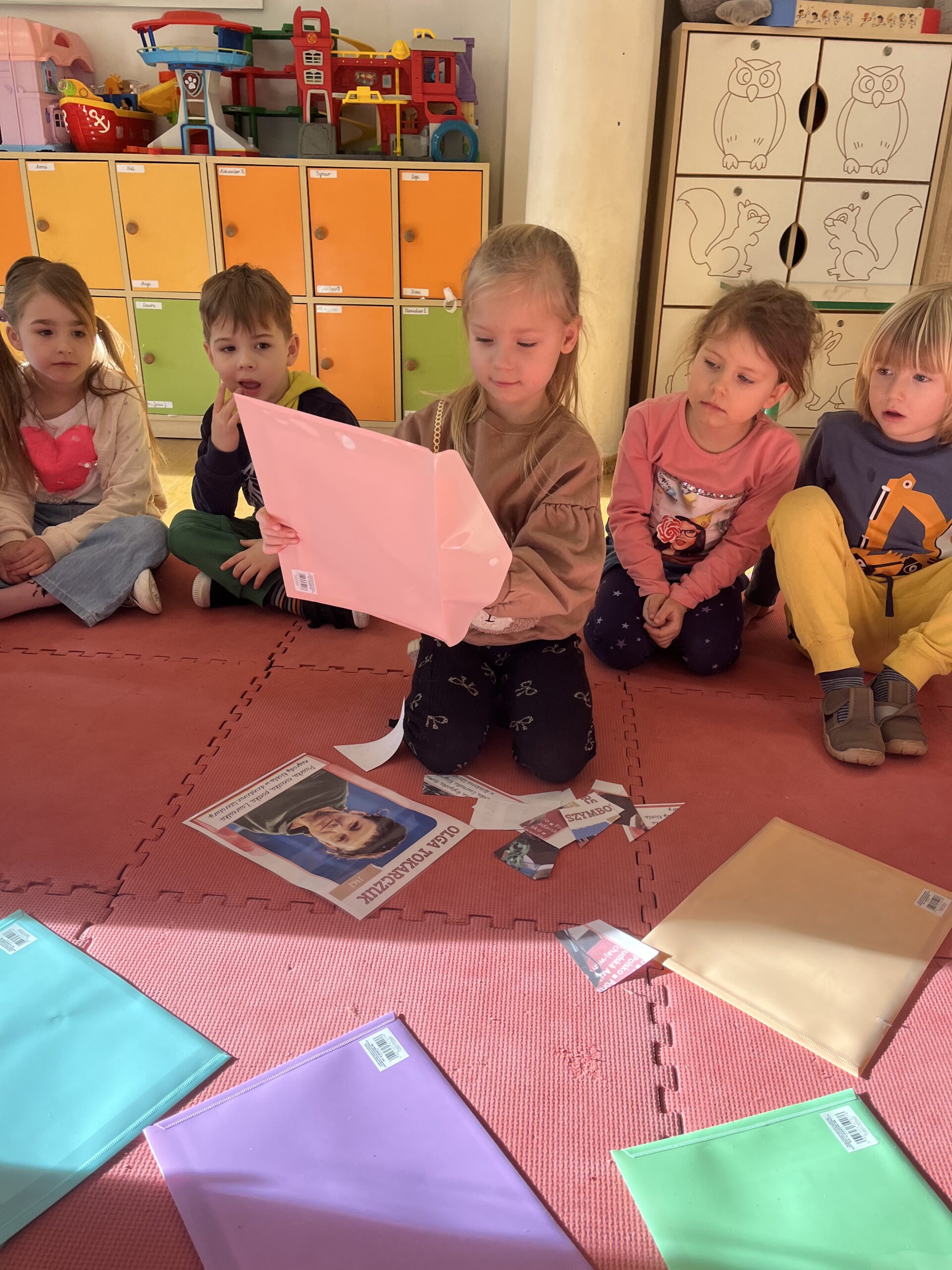 Wspomnieliśmy także o poetce i laureatce Nagrody Nobla – Wisława Szymborska. Dzieci rozmawiały o tym kim jest poeta i jak słowa mogą opisywać świat w niezwykły sposób.