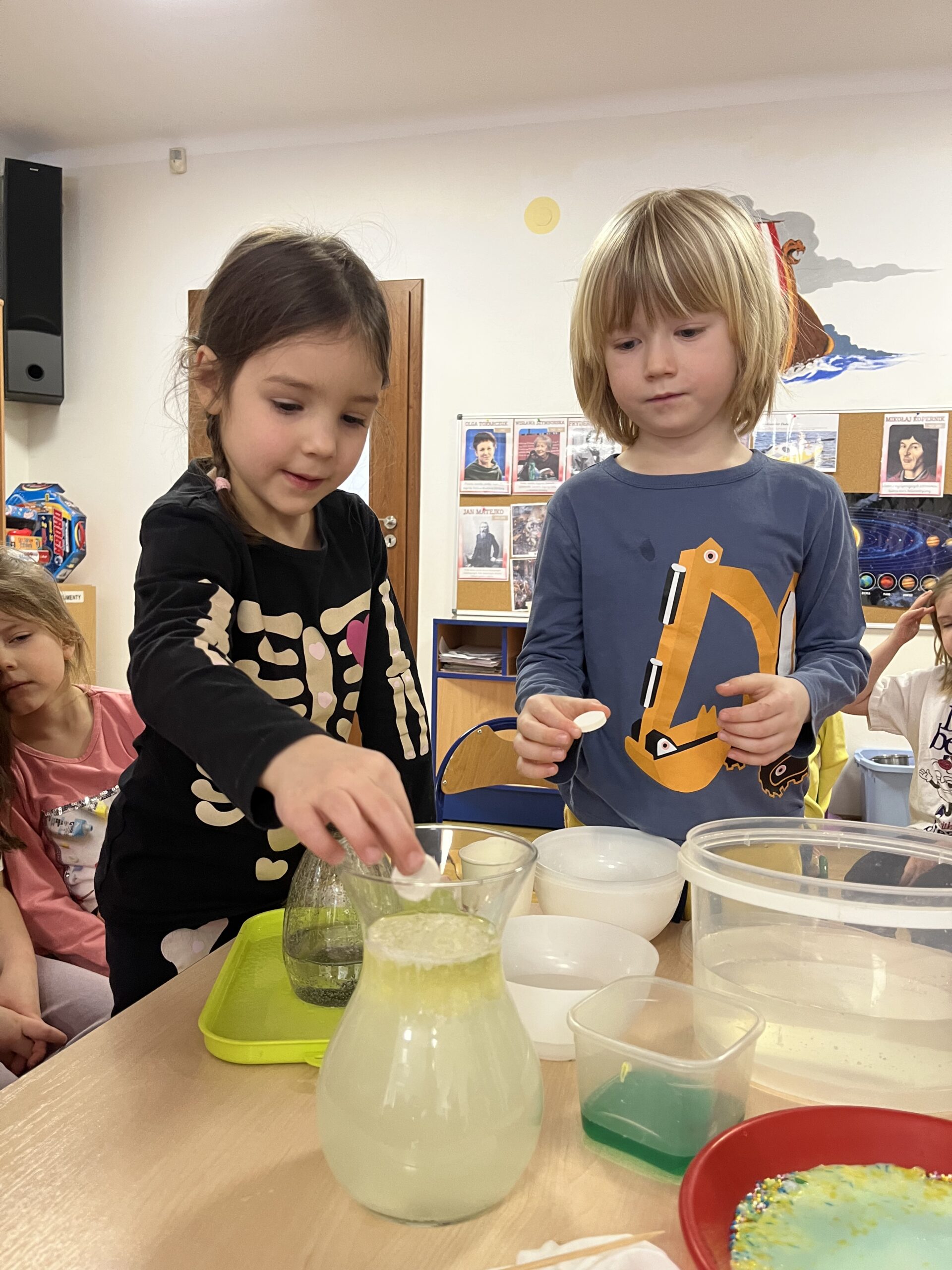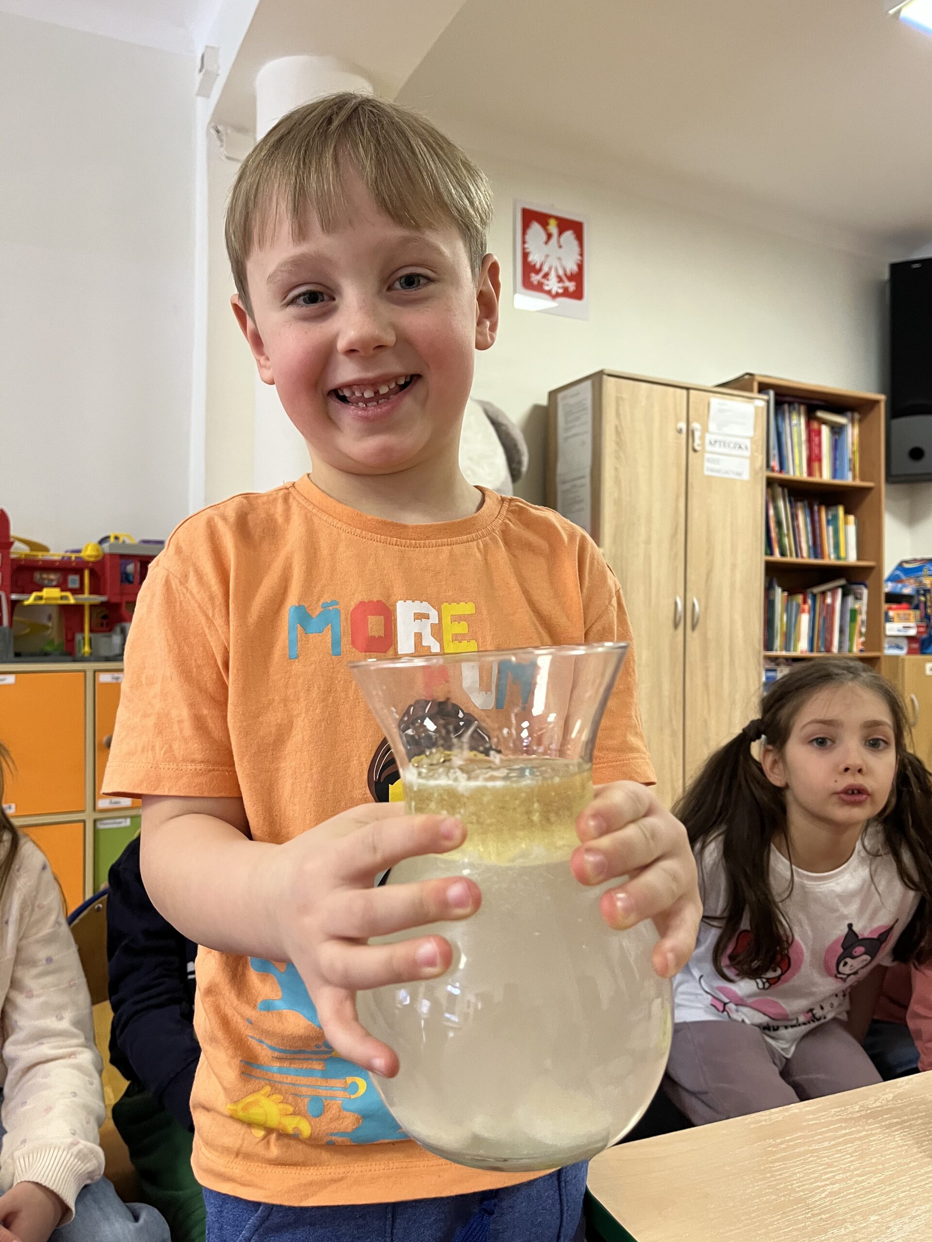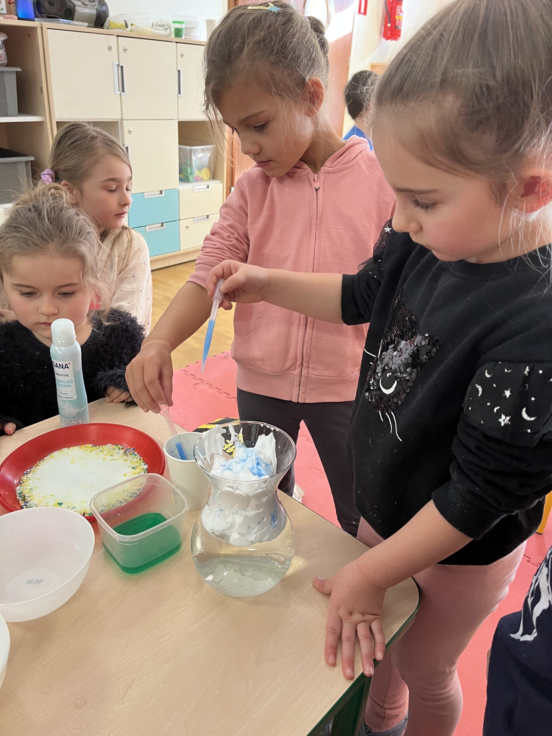 Kolejną inspirującą postacią była Maria Skłodowska-Curie. Przedszkolaki dowiedziały się, że odkryła dwa pierwiastki i stworzyła ” Małe Curie”, była dwukrotną laureatką Nagrody Nobla. Wcielając się w małych badaczy, dzieci wykonywały proste i bezpieczne eksperymenty, odkrywając tajemnice nauki poprzez zabawę i doświadczenie.