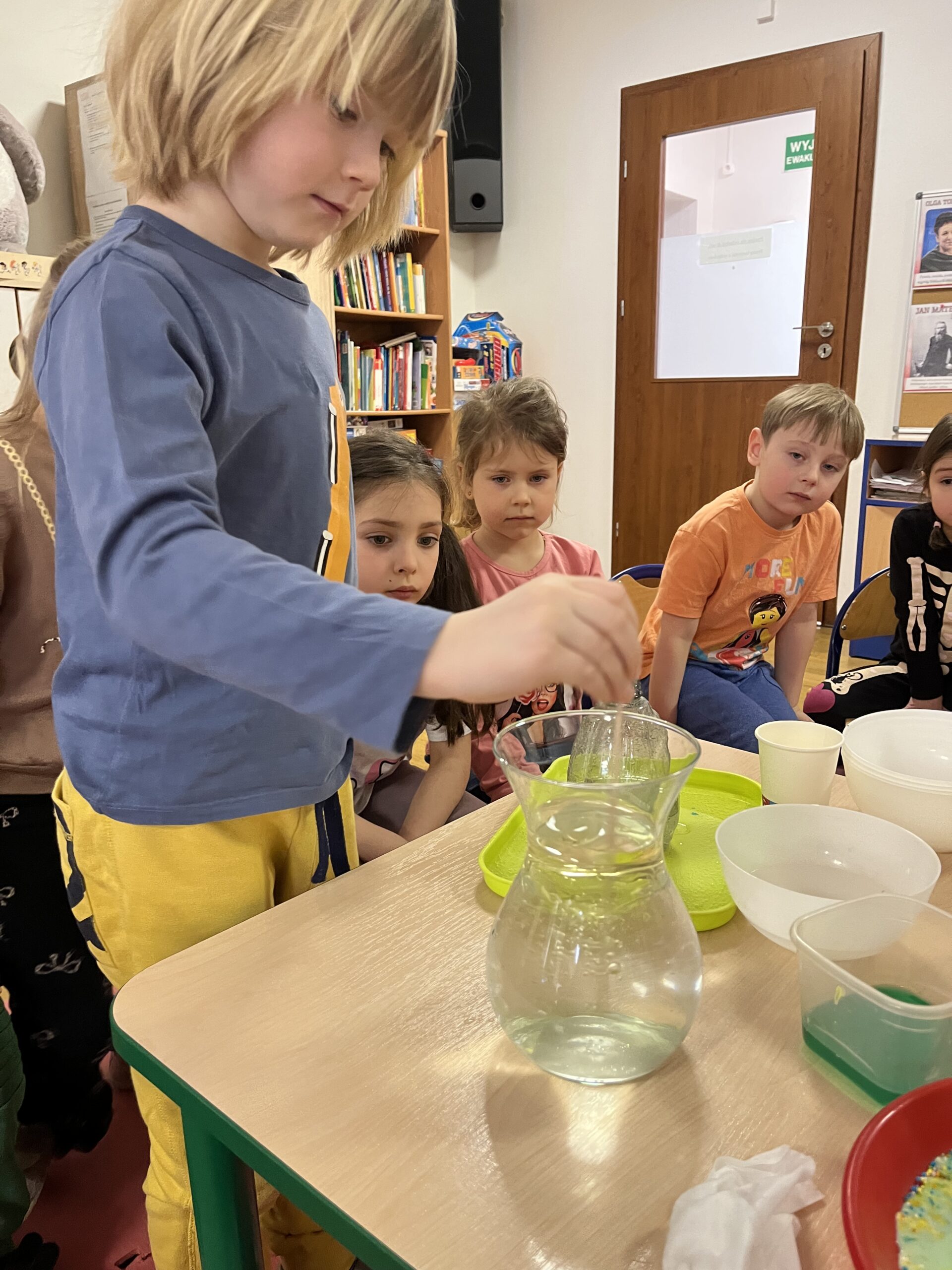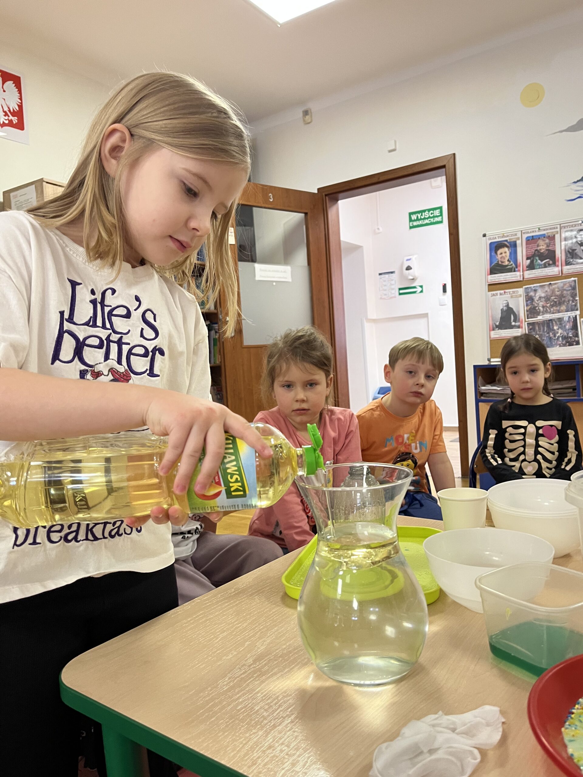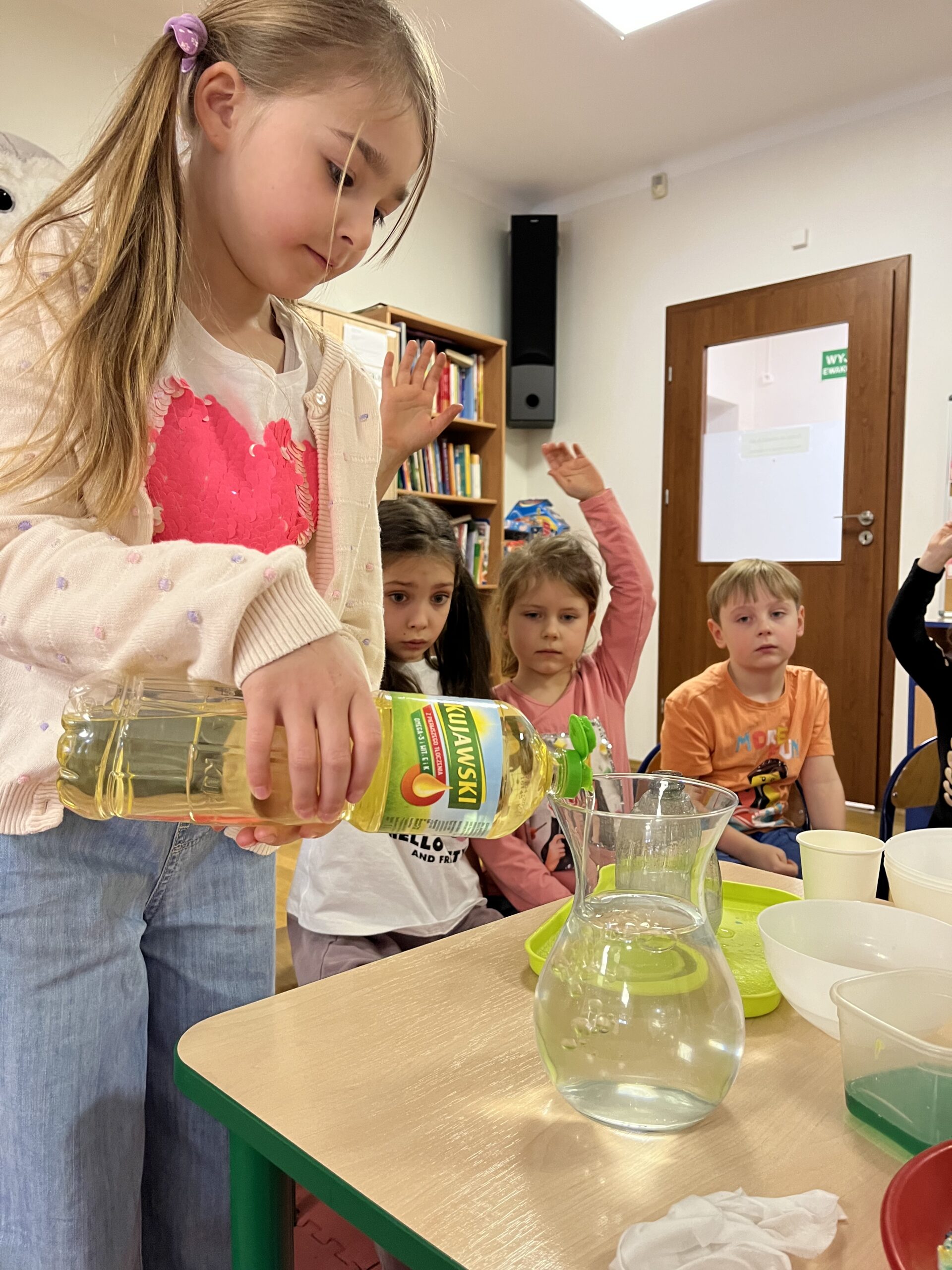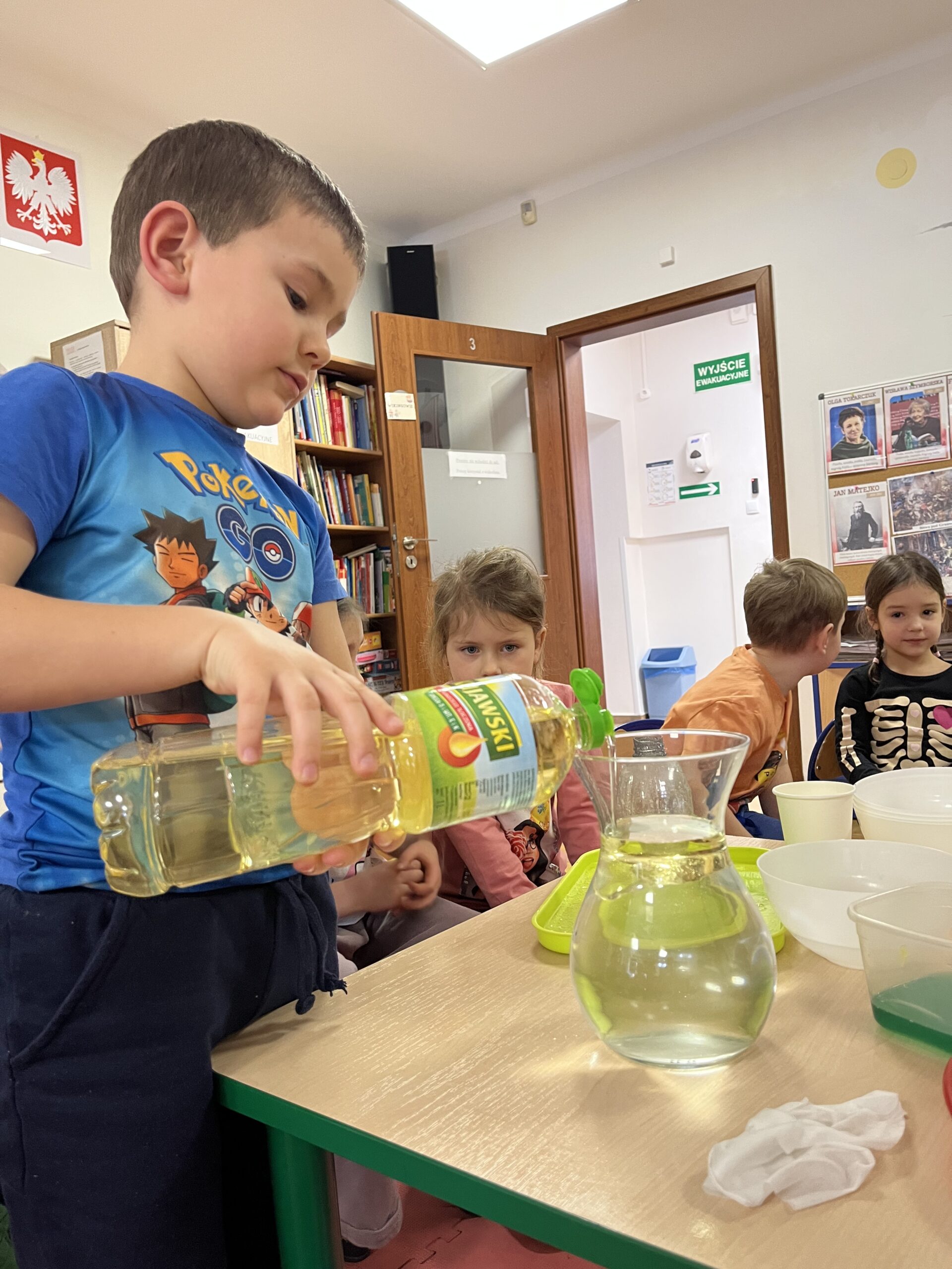 Kolejną inspirującą postacią była Maria Skłodowska-Curie. Przedszkolaki dowiedziały się, że odkryła dwa pierwiastki i stworzyła ” Małe Curie”, była dwukrotną laureatką Nagrody Nobla. Wcielając się w małych badaczy, dzieci wykonywały proste i bezpieczne eksperymenty, odkrywając tajemnice nauki poprzez zabawę i doświadczenie.
