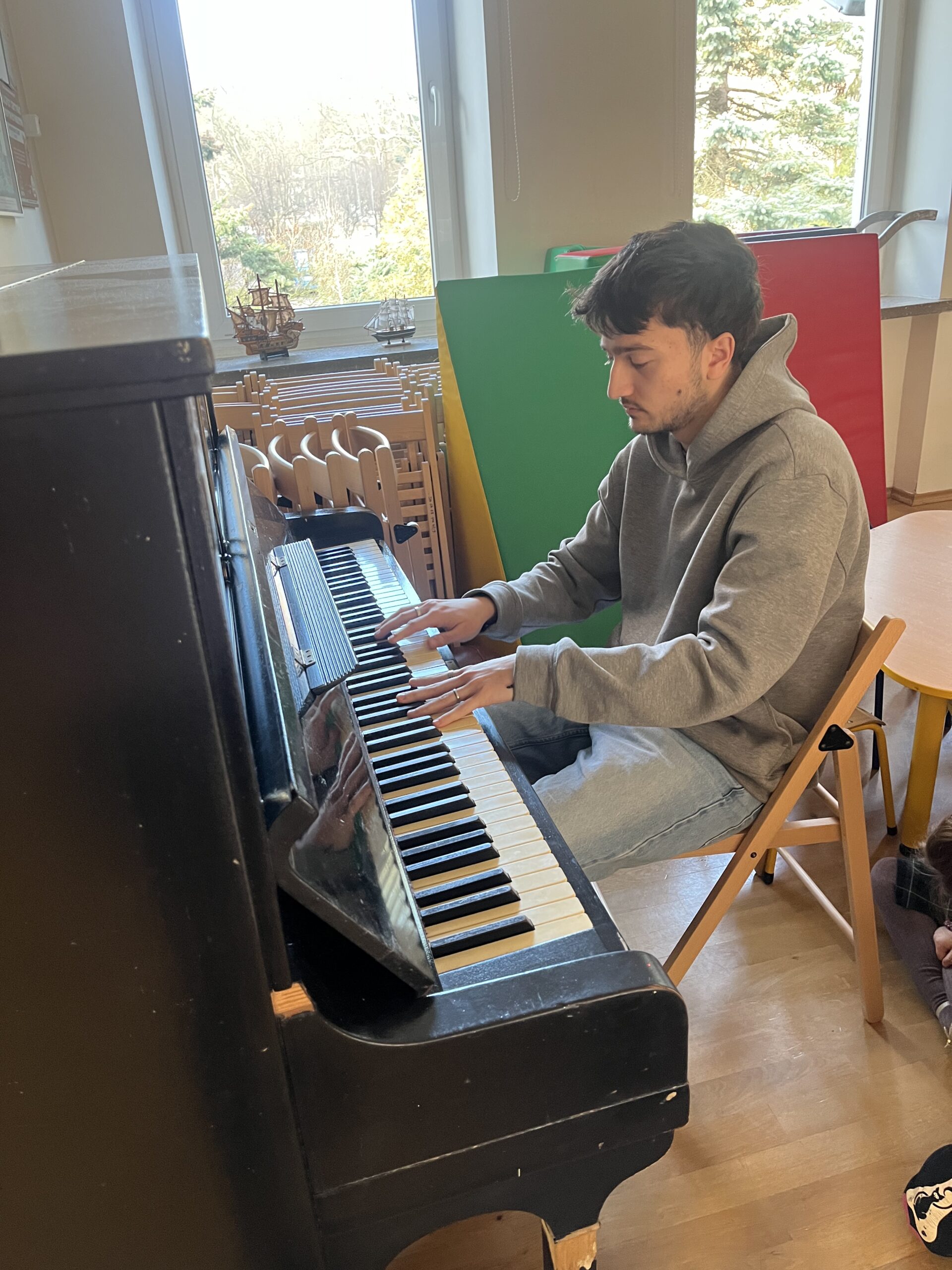 Dzieci poznały sylwetkę wybitnego kompozytora – Fryderyk Chopin. Dowiedziały się, kim był oraz jak powstaje muzyka fortepianowa. Ogromną radość sprawił im wujek Bruno -wolontariusz, który zagrał na pianinie utwory Chopina, pozwalając dzieciom poczuć magię muzyki na żywo.