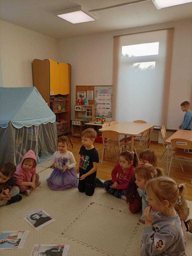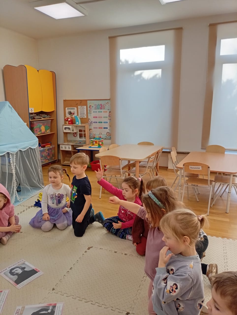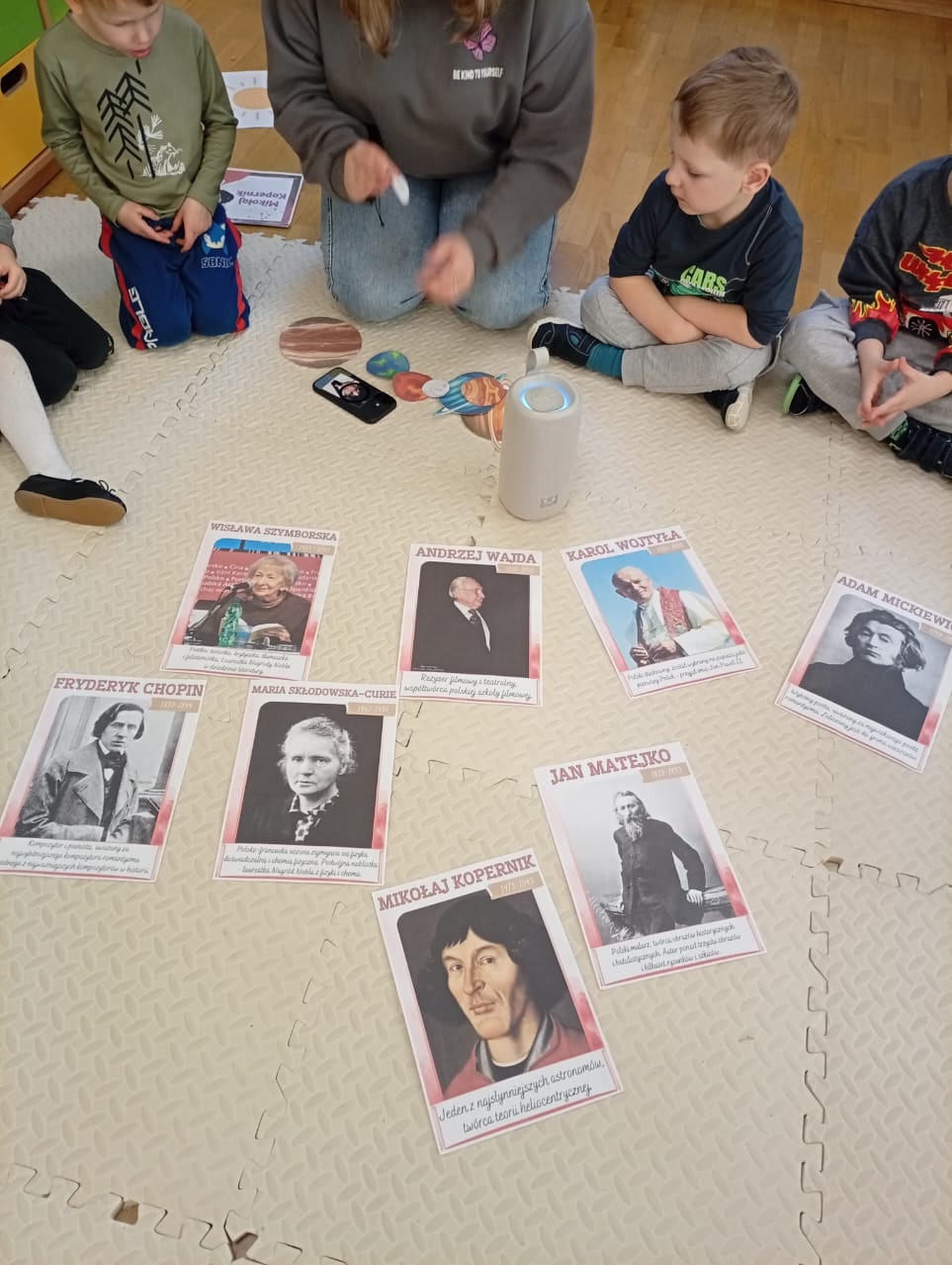 Dzień Nauki Polskiej był dla dzieci inspirującą podróżą po świecie wielkich umysłów i niezwykłych odkryć. Przedszkolaki poznały sylwetki wybitnych Polaków, którzy zapisali się na kartach historii nauki i kultury. Dowiedziały się, że Maria Skłodowska-Curie odkryła dwa pierwiastki i aż dwukrotnie została uhonorowana Nagrodą Nobla. Poznały również twórczość Wiesławy Szymborskiej, słuchając fragmentu wiersza czytanego przez samą poetkę.