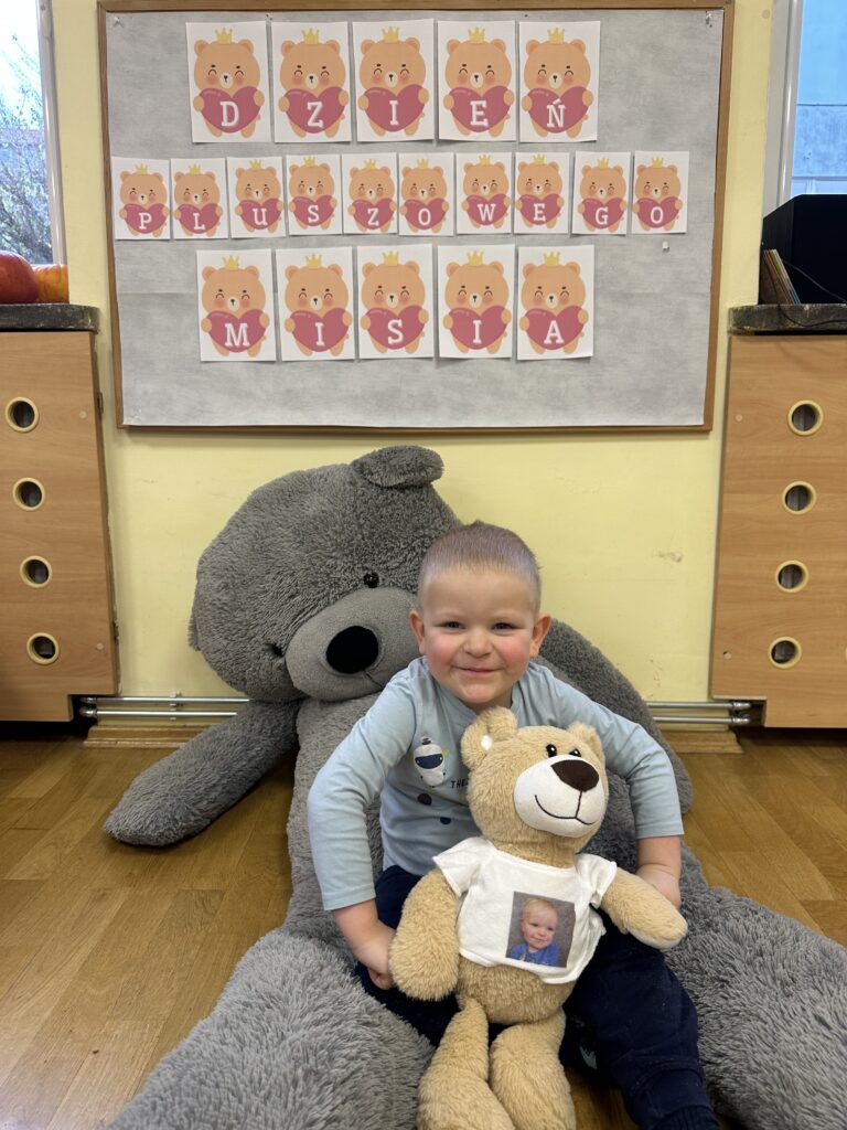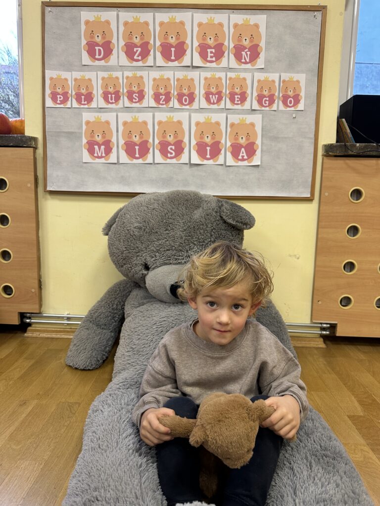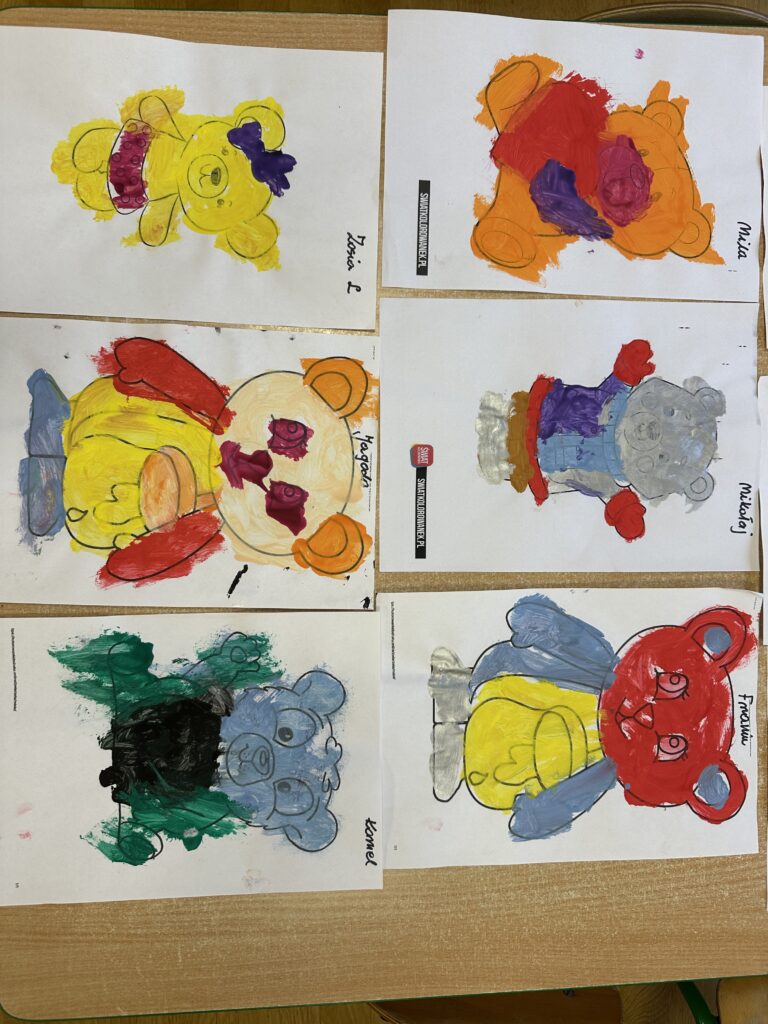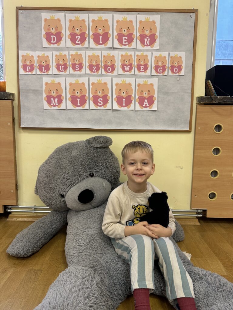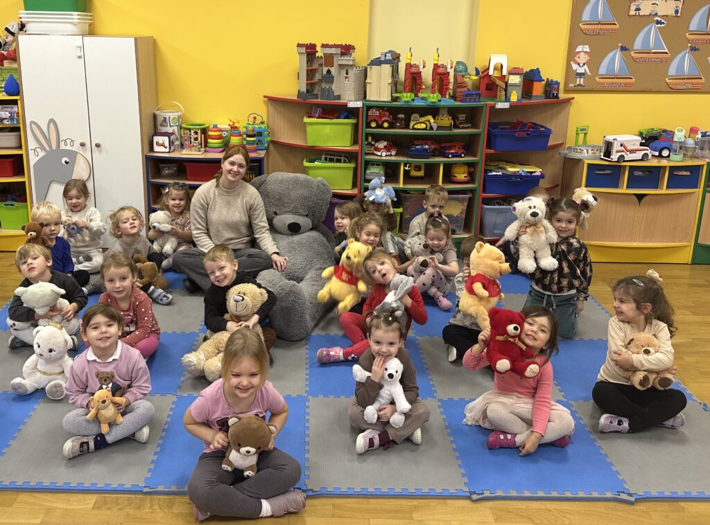Dzisiaj w naszej grupie świętowaliśmy Dzień Pluszowego Misia. Każdy z nas przyniósł swoją przytulankę. Podczas zajęć trenowaliśmy naszą spostrzegawczość i koncentrację uwagi – wyszukiwaliśmy misie, którym towarzyszyły różnorodne przedmioty. Chętni z nas pokazali swojego misia całej grupie i trochę o nim opowiedzieli. Wcześniej, ćwicząc motorykę małą, przygotowaliśmy pracę plastyczną z misiem, którą każdy z nas zabrał do domu. Nie zabrakło oczywiście zabawy z naszym największym towarzyszem dzisiejszego dnia 🧸