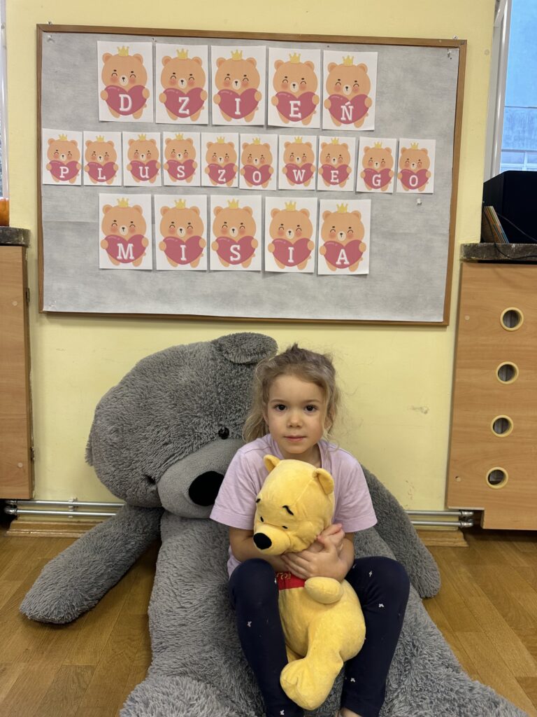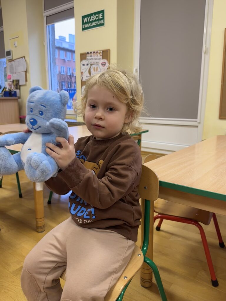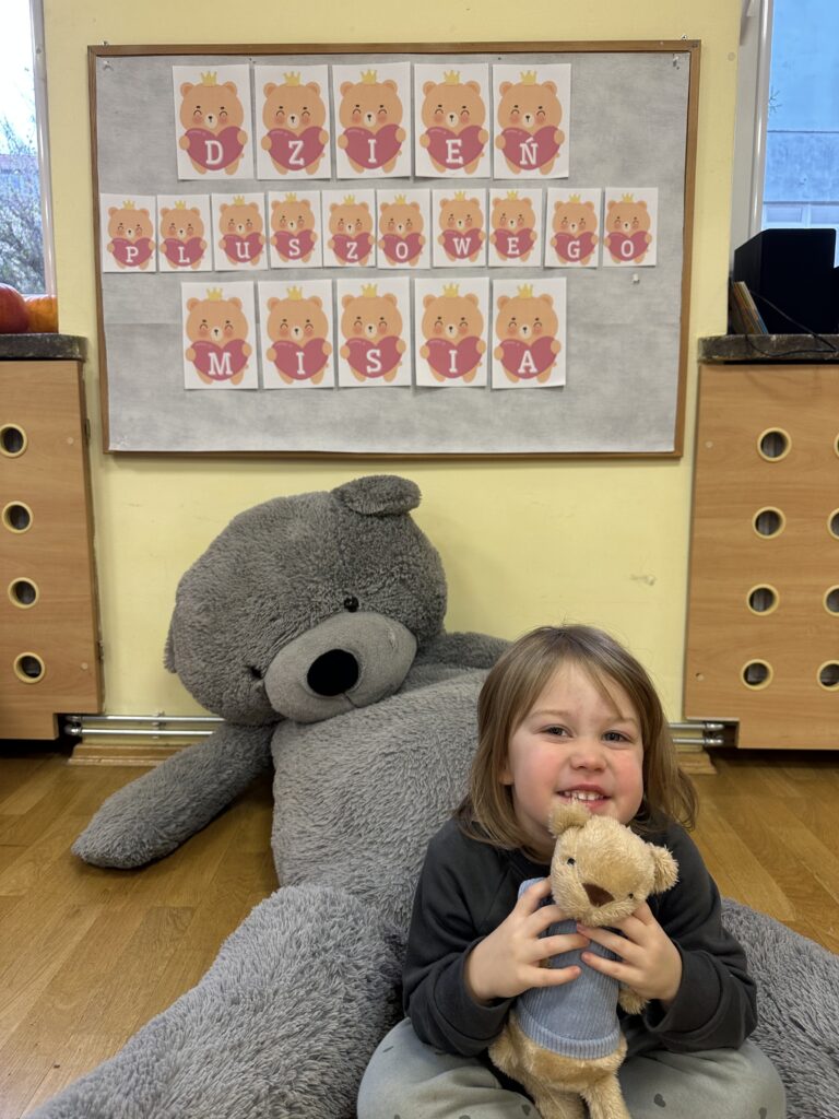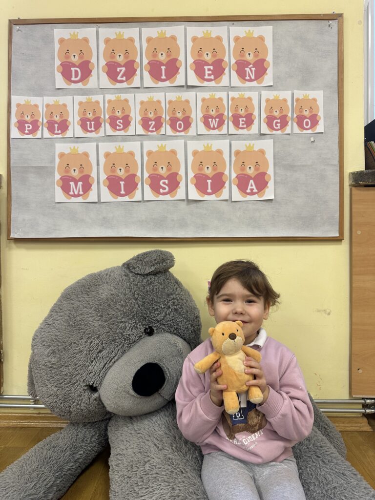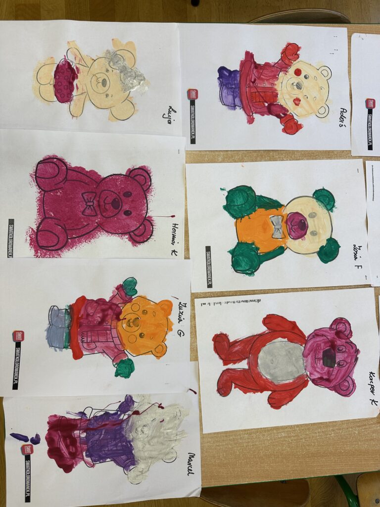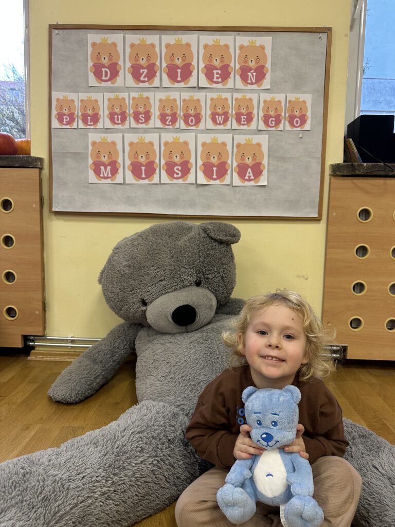 Dzisiaj w naszej grupie świętowaliśmy Dzień Pluszowego Misia. Każdy z nas przyniósł swoją przytulankę. Podczas zajęć trenowaliśmy naszą spostrzegawczość i koncentrację uwagi – wyszukiwaliśmy misie, którym towarzyszyły różnorodne przedmioty. Chętni z nas pokazali swojego misia całej grupie i trochę o nim opowiedzieli. Wcześniej, ćwicząc motorykę małą, przygotowaliśmy pracę plastyczną z misiem, którą każdy z nas zabrał do domu. Nie zabrakło oczywiście zabawy z naszym największym towarzyszem dzisiejszego dnia 🧸
