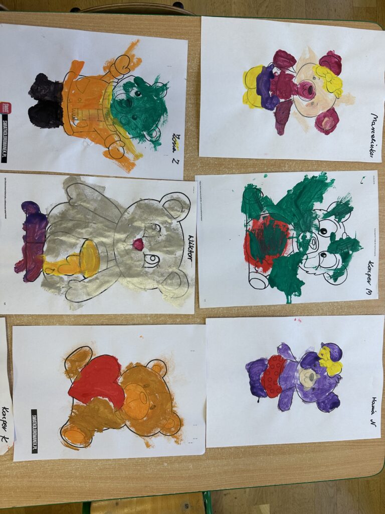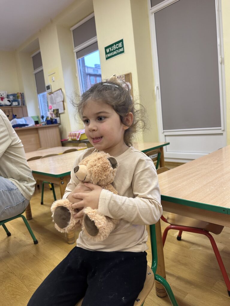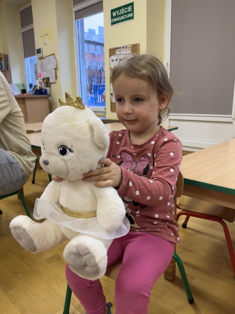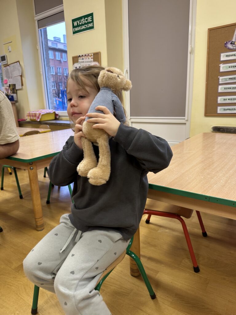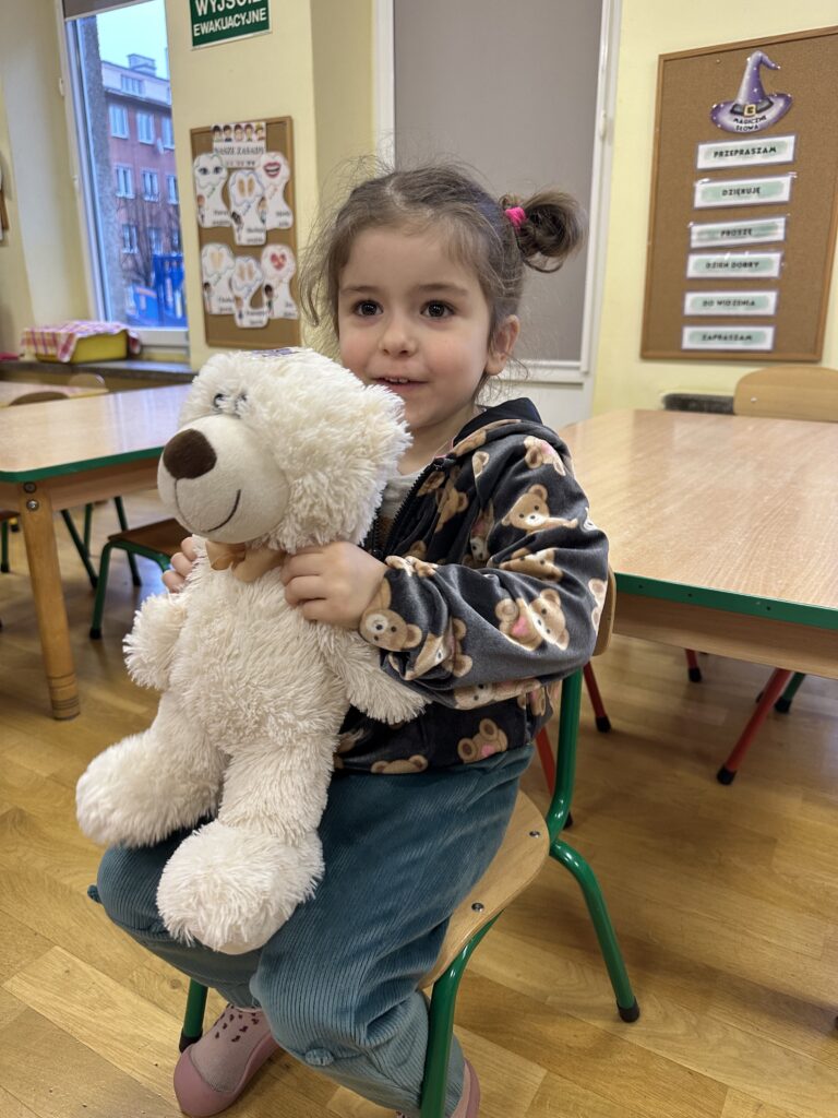 Dzisiaj w naszej grupie świętowaliśmy Dzień Pluszowego Misia. Każdy z nas przyniósł swoją przytulankę. Podczas zajęć trenowaliśmy naszą spostrzegawczość i koncentrację uwagi – wyszukiwaliśmy misie, którym towarzyszyły różnorodne przedmioty. Chętni z nas pokazali swojego misia całej grupie i trochę o nim opowiedzieli. Wcześniej, ćwicząc motorykę małą, przygotowaliśmy pracę plastyczną z misiem, którą każdy z nas zabrał do domu. Nie zabrakło oczywiście zabawy z naszym największym towarzyszem dzisiejszego dnia 🧸
