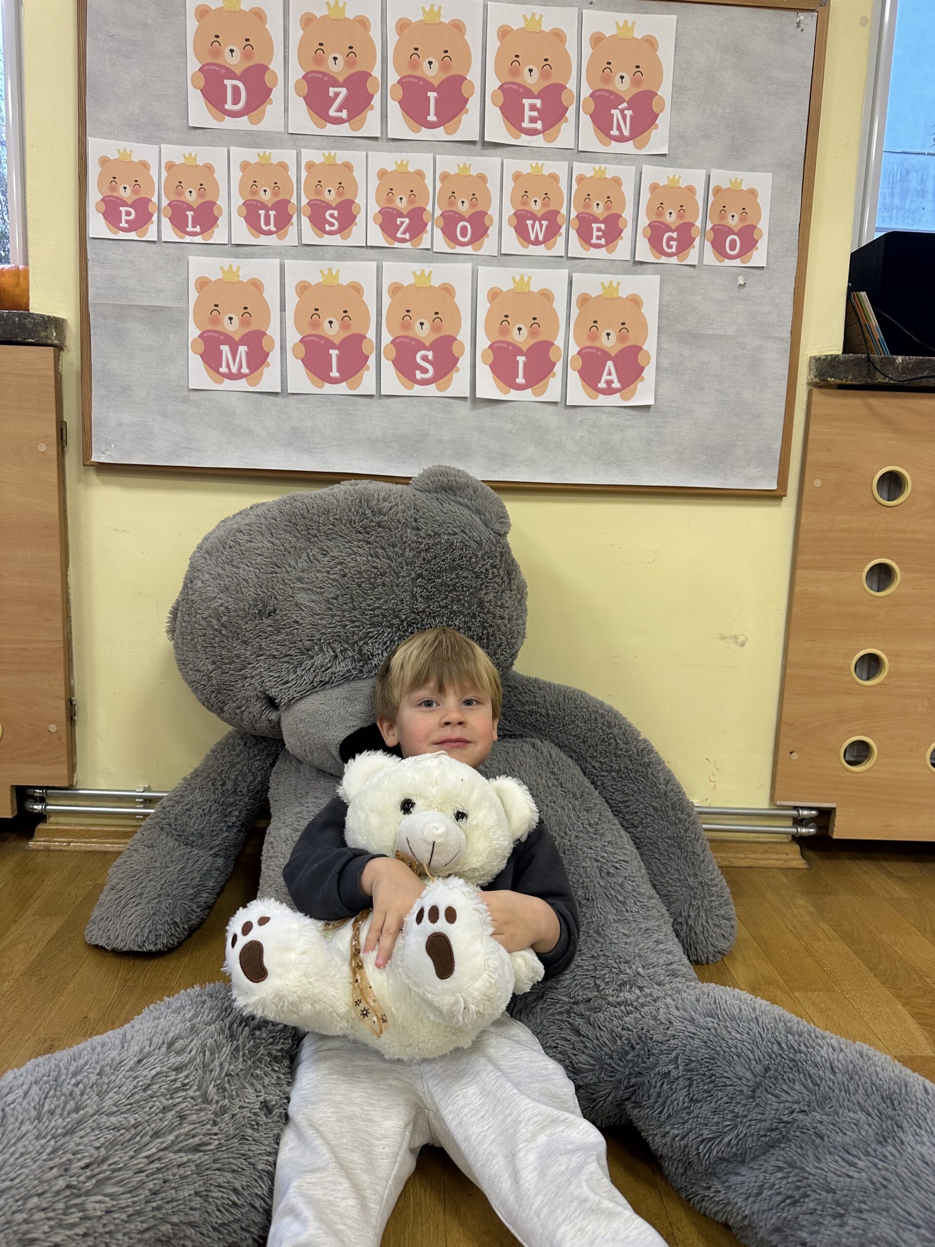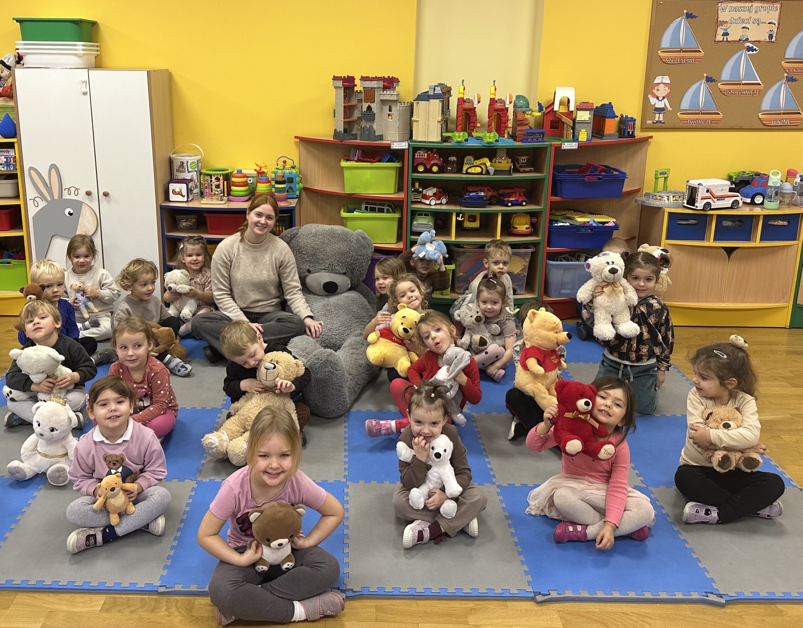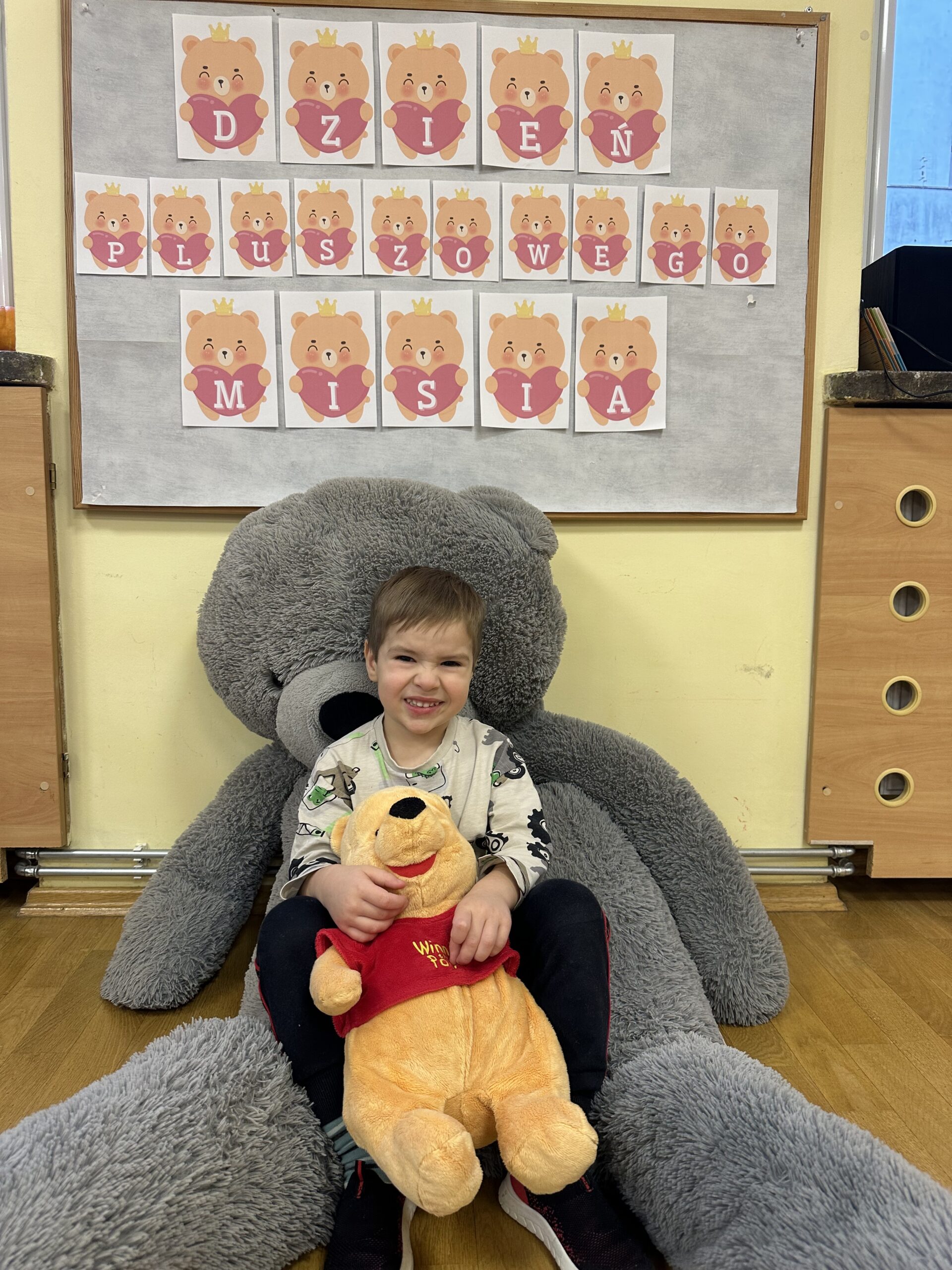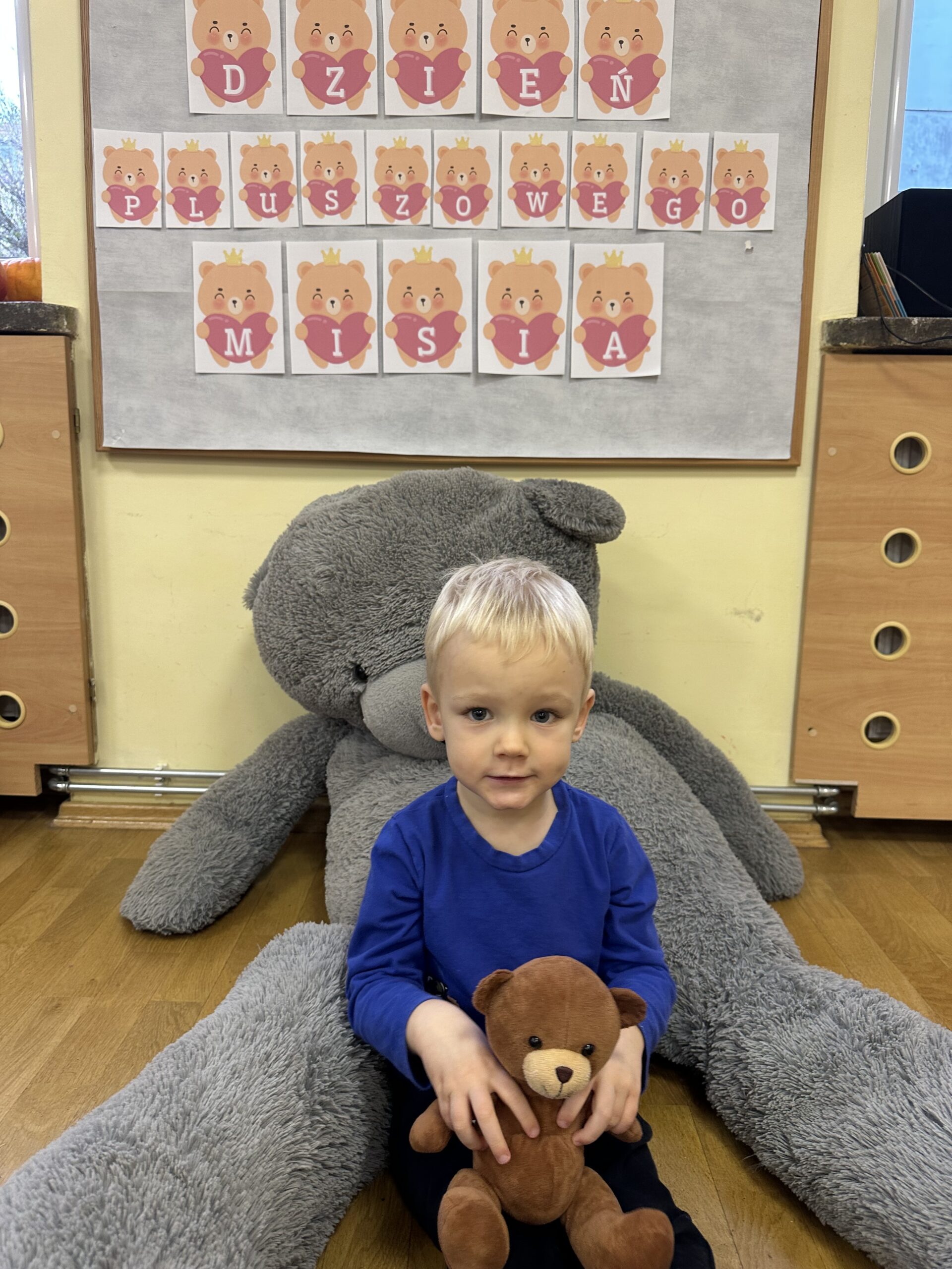 Dzisiaj w naszej grupie świętowaliśmy Dzień Pluszowego Misia. Każdy z nas przyniósł swoją przytulankę. Podczas zajęć trenowaliśmy naszą spostrzegawczość i koncentrację uwagi – wyszukiwaliśmy misie, którym towarzyszyły różnorodne przedmioty. Chętni z nas pokazali swojego misia całej grupie i trochę o nim opowiedzieli. Wcześniej, ćwicząc motorykę małą, przygotowaliśmy pracę plastyczną z misiem, którą każdy z nas zabrał do domu. Nie zabrakło oczywiście zabawy z naszym największym towarzyszem dzisiejszego dnia 🧸