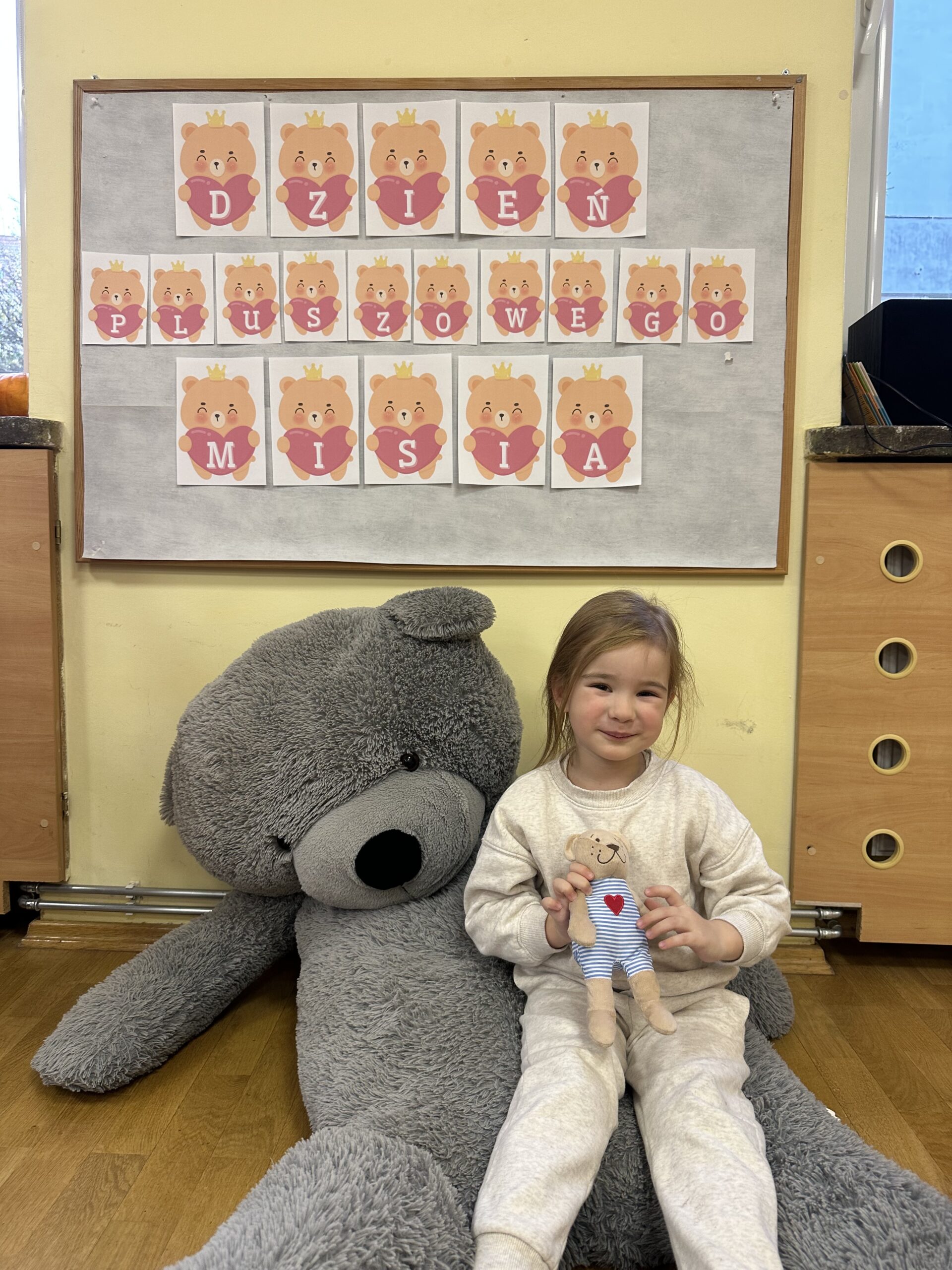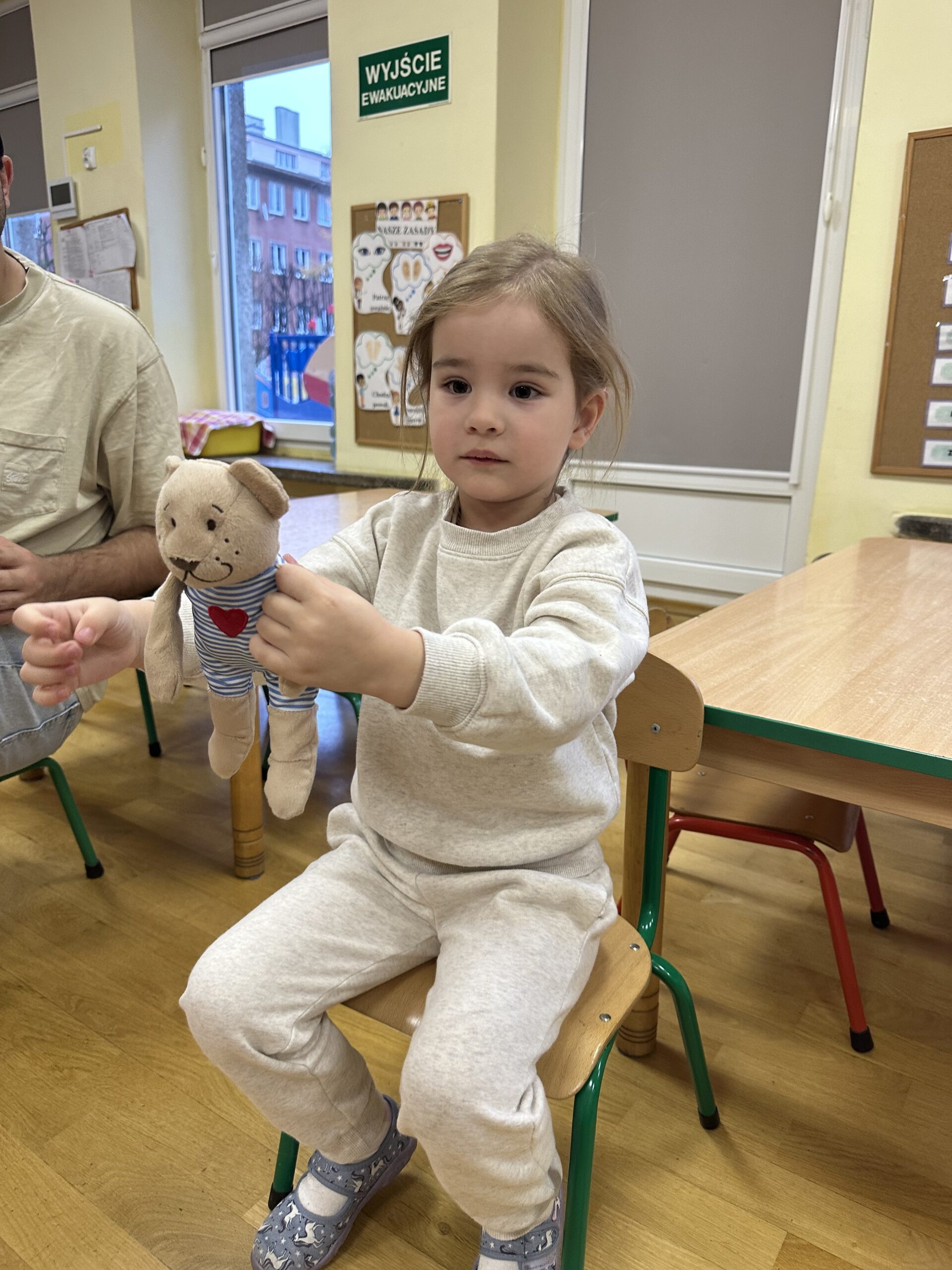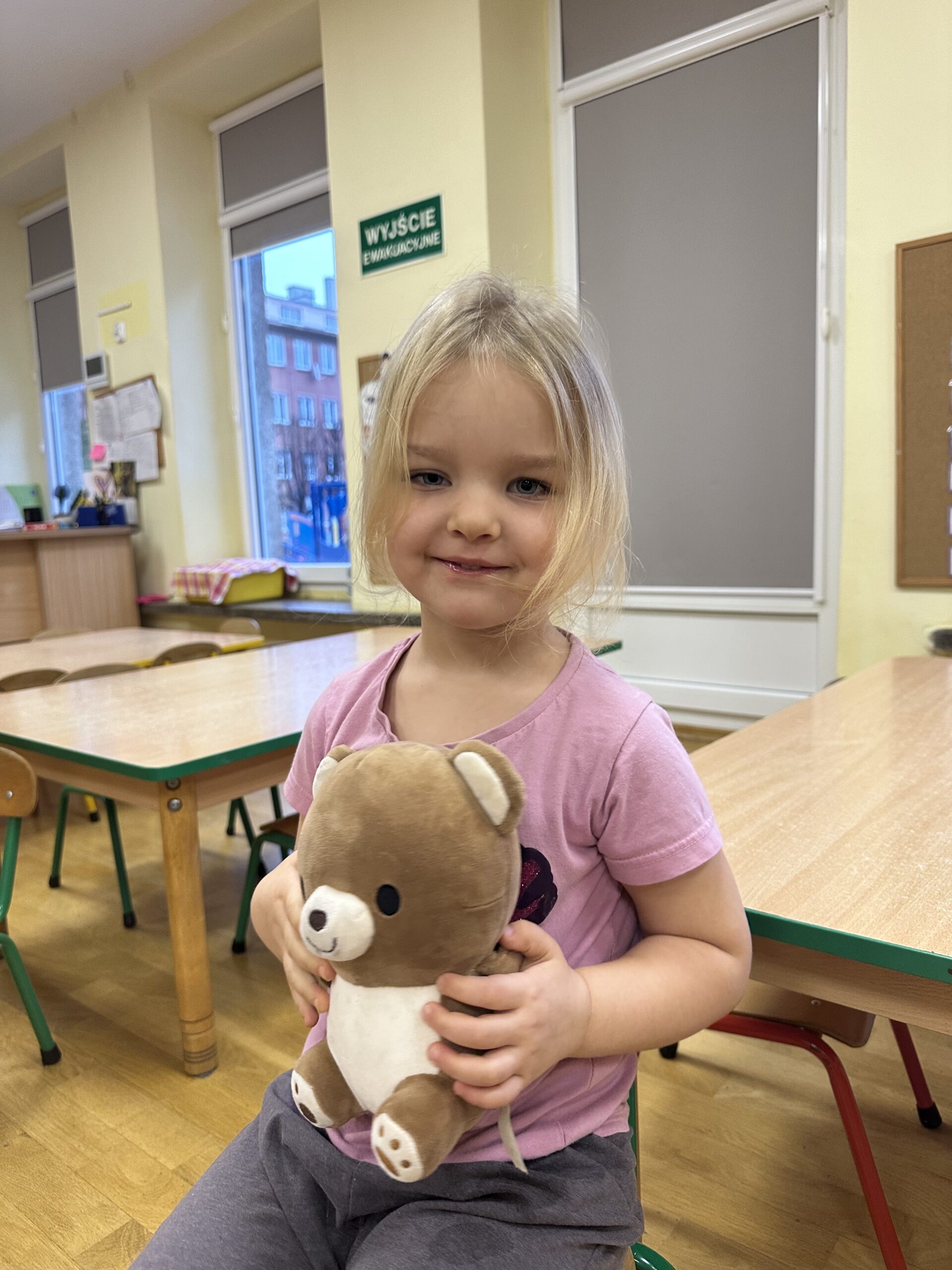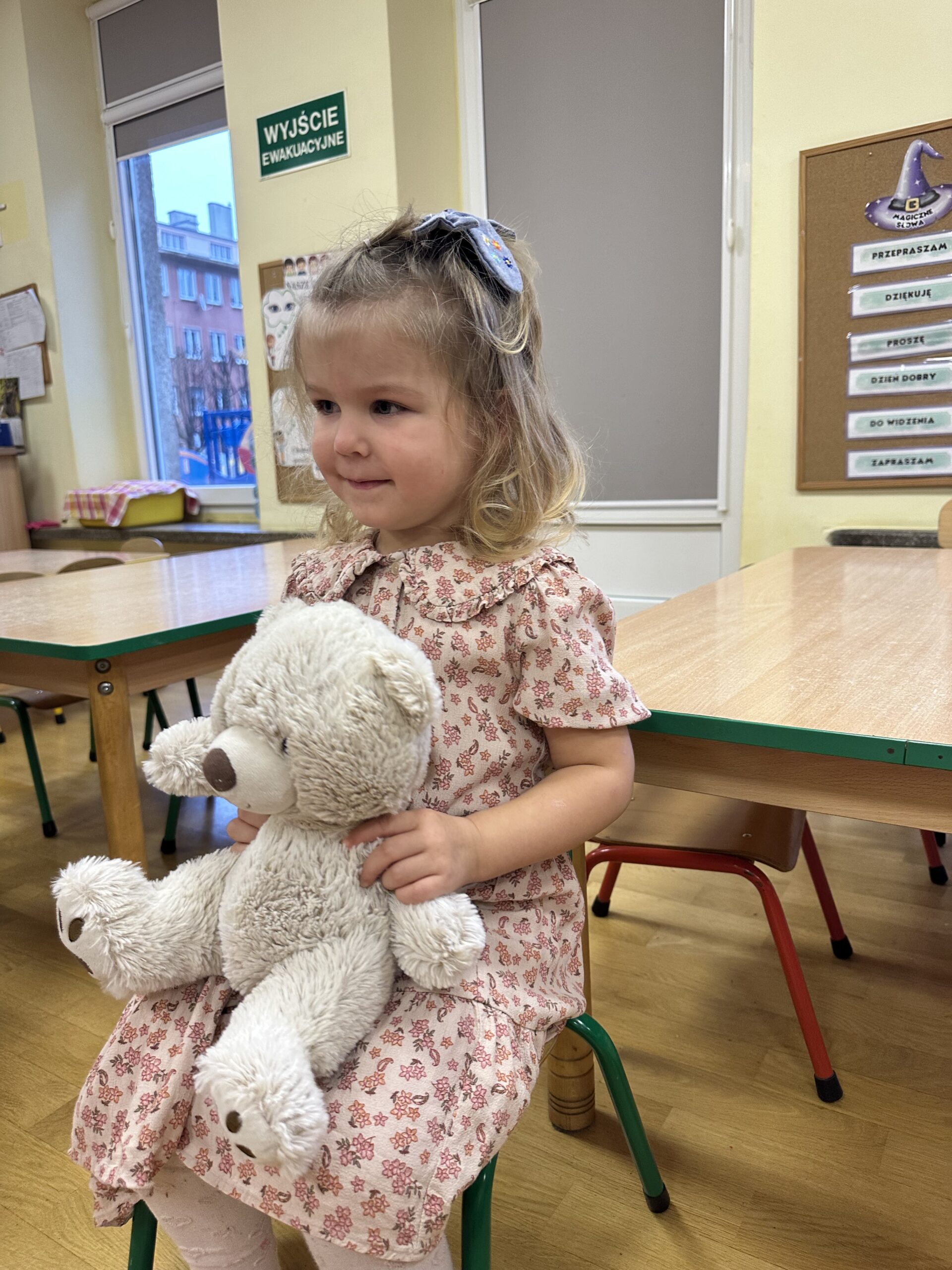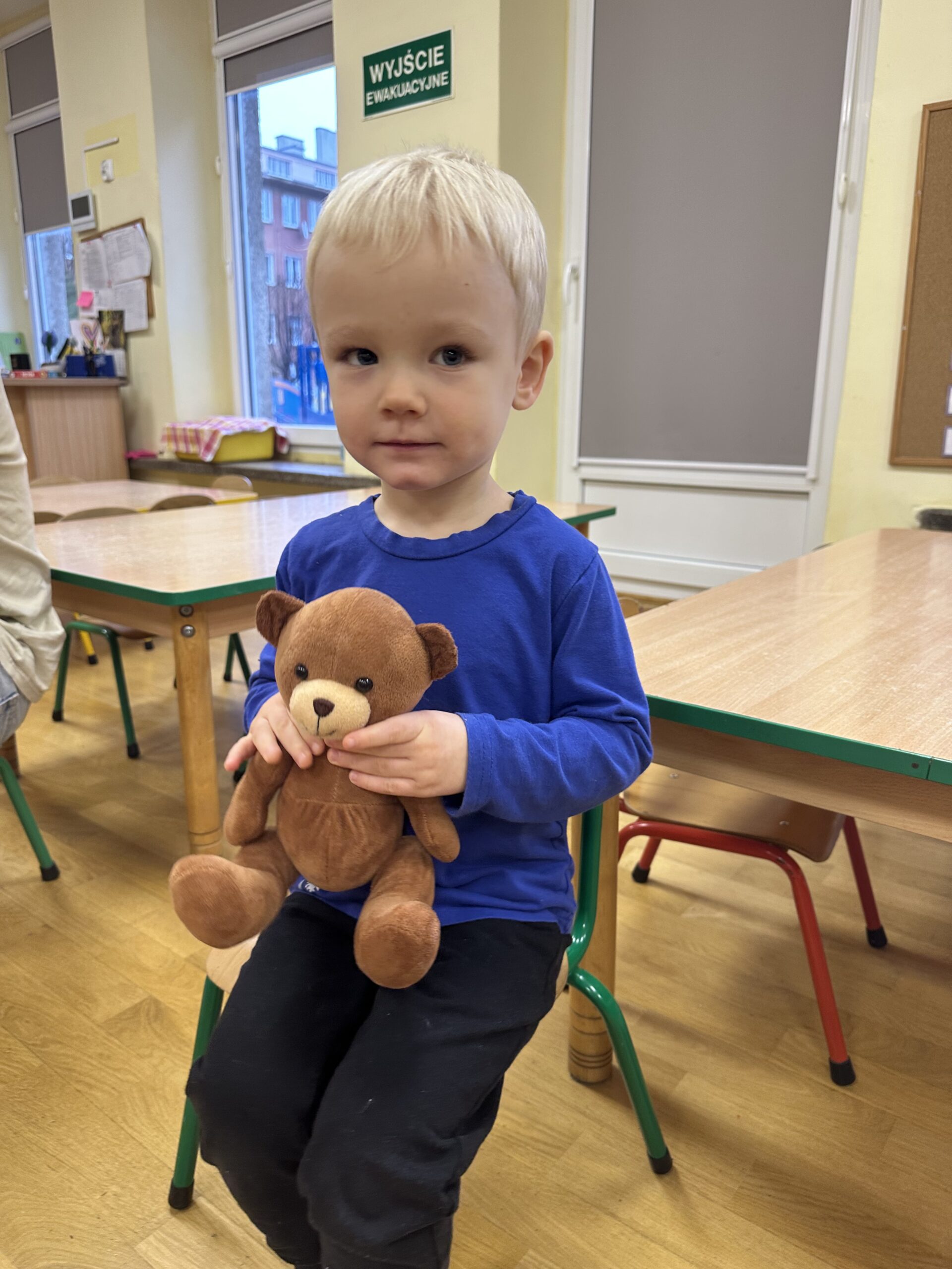 Dzisiaj w naszej grupie świętowaliśmy Dzień Pluszowego Misia. Każdy z nas przyniósł swoją przytulankę. Podczas zajęć trenowaliśmy naszą spostrzegawczość i koncentrację uwagi – wyszukiwaliśmy misie, którym towarzyszyły różnorodne przedmioty. Chętni z nas pokazali swojego misia całej grupie i trochę o nim opowiedzieli. Wcześniej, ćwicząc motorykę małą, przygotowaliśmy pracę plastyczną z misiem, którą każdy z nas zabrał do domu. Nie zabrakło oczywiście zabawy z naszym największym towarzyszem dzisiejszego dnia 🧸