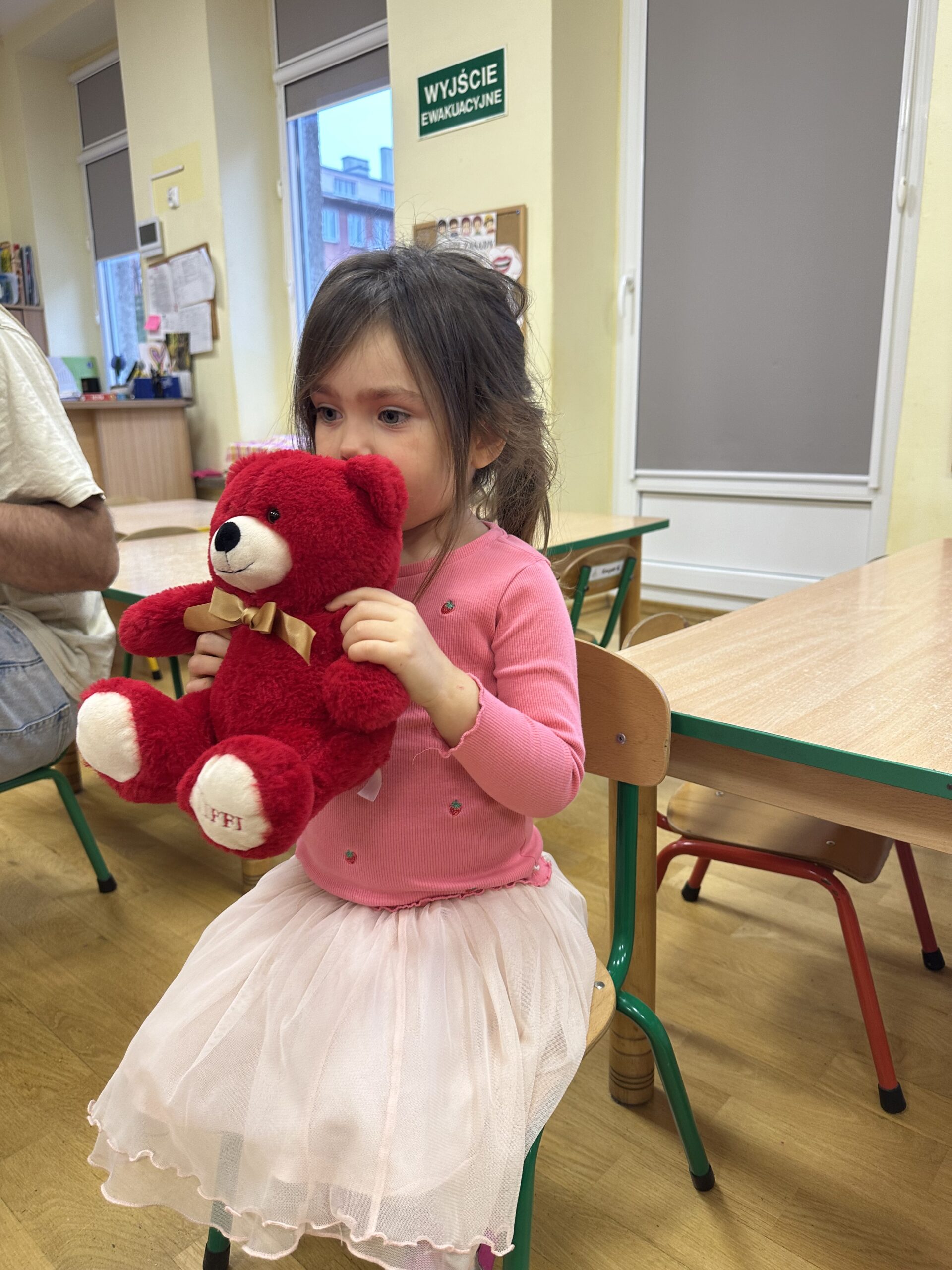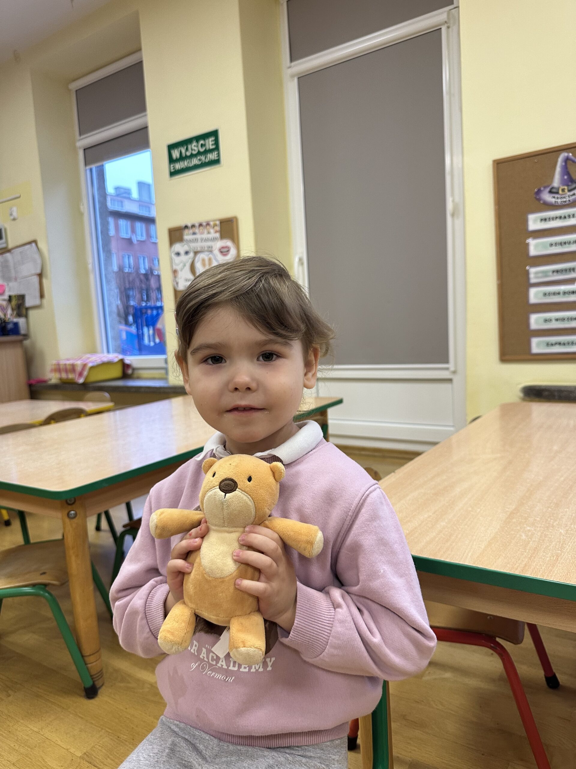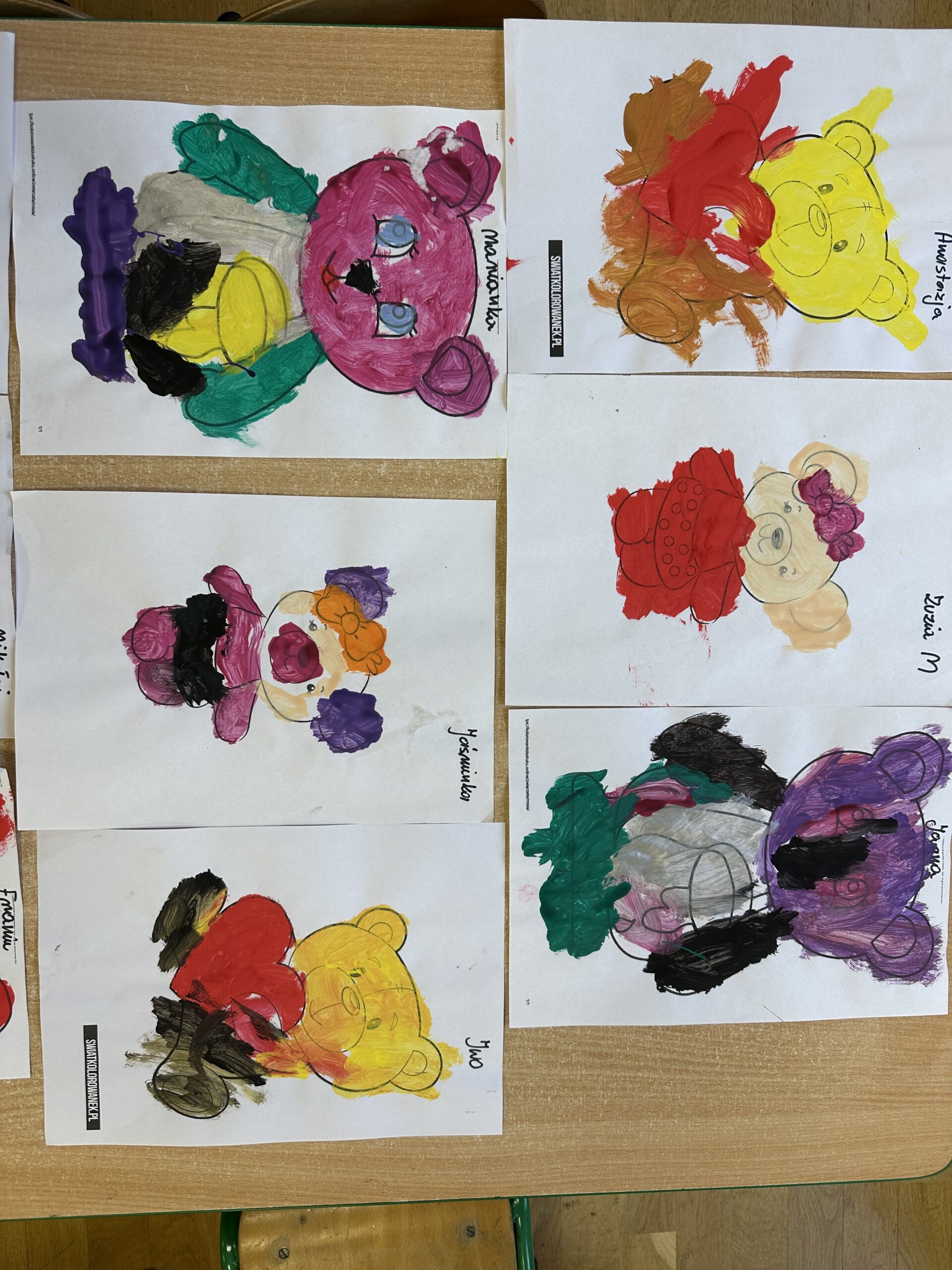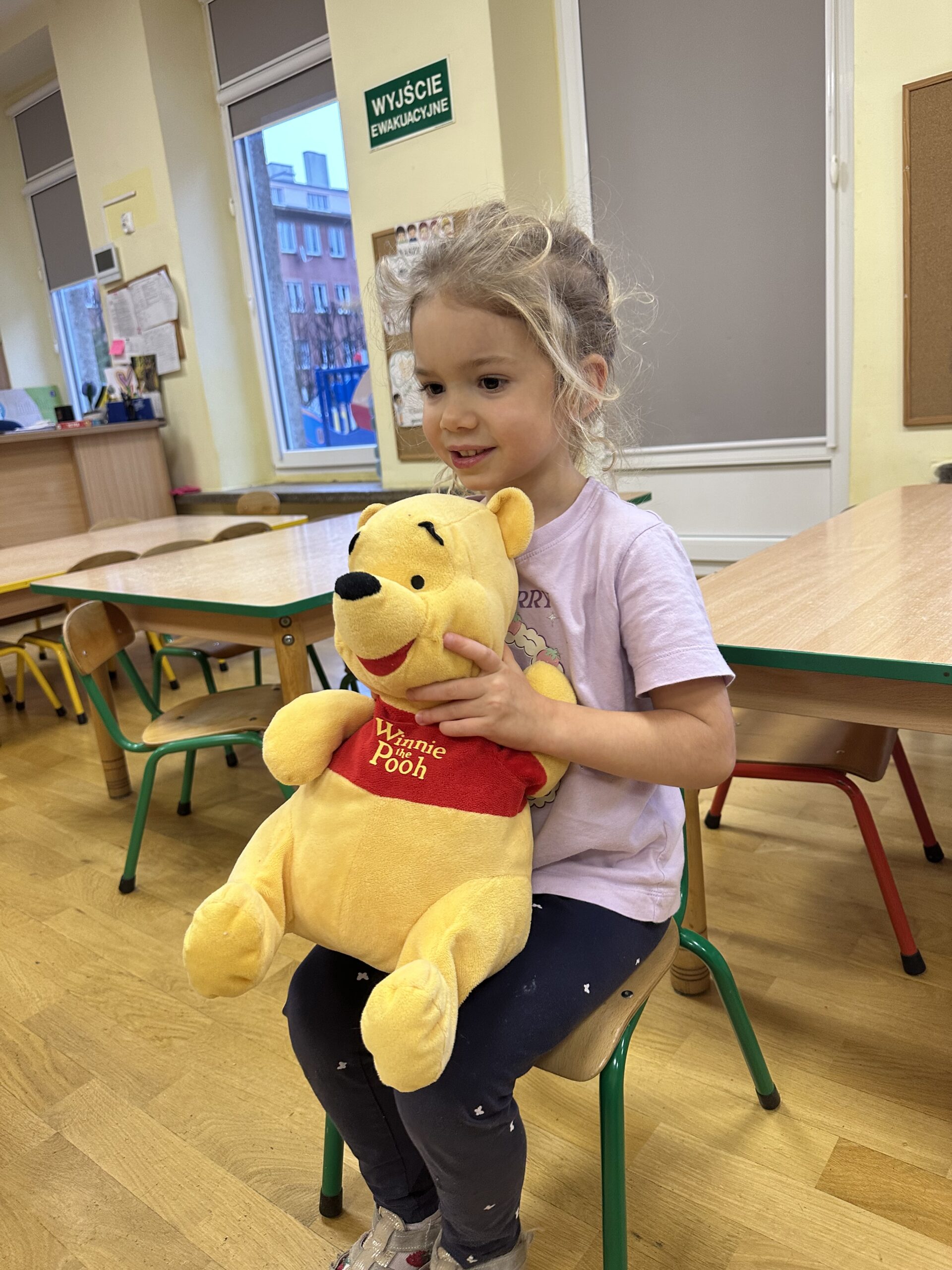 Dzisiaj w naszej grupie świętowaliśmy Dzień Pluszowego Misia. Każdy z nas przyniósł swoją przytulankę. Podczas zajęć trenowaliśmy naszą spostrzegawczość i koncentrację uwagi – wyszukiwaliśmy misie, którym towarzyszyły różnorodne przedmioty. Chętni z nas pokazali swojego misia całej grupie i trochę o nim opowiedzieli. Wcześniej, ćwicząc motorykę małą, przygotowaliśmy pracę plastyczną z misiem, którą każdy z nas zabrał do domu. Nie zabrakło oczywiście zabawy z naszym największym towarzyszem dzisiejszego dnia 🧸
