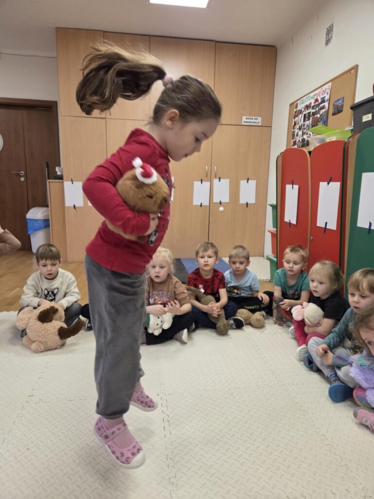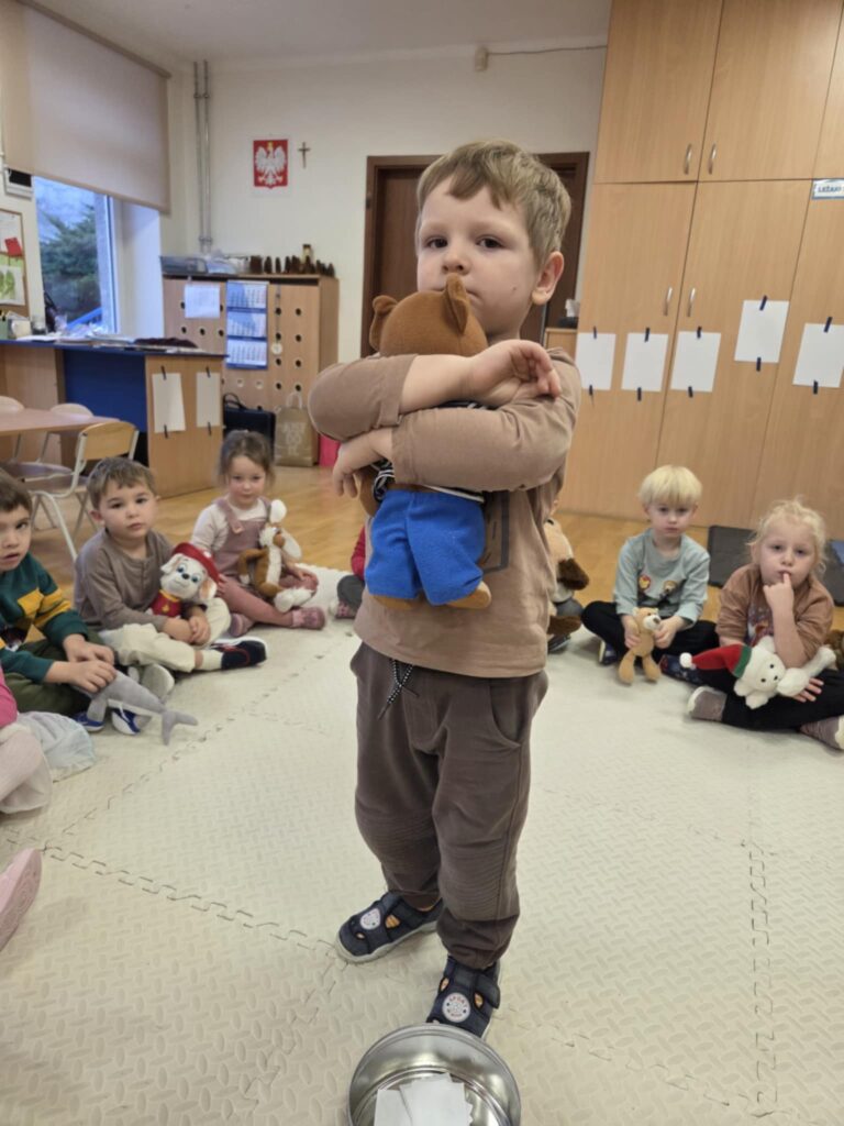Dzisiaj w naszej grupie świętowaliśmy Dzień Pluszowego Misia. Dzieci spędzały ten wyjątkowy dzień w towarzystwie swoich ulubionych przytulanek, które towarzyszyły im we wszystkich aktywnościach. Na rybaków czekały różne zadania do wykonania wraz z misiami, wspólne zabawy, aktywności ruchowe oraz tworzenie portretów swoich pluszowych przyjaciół. Po pełnym wrażeń czasie zabaw przyszedł również moment na chwilę odpoczynku w towarzystwie ukochanych maskotek, co stworzyło wyjątkowo ciepłą i przytulną atmosferę w naszej sali.