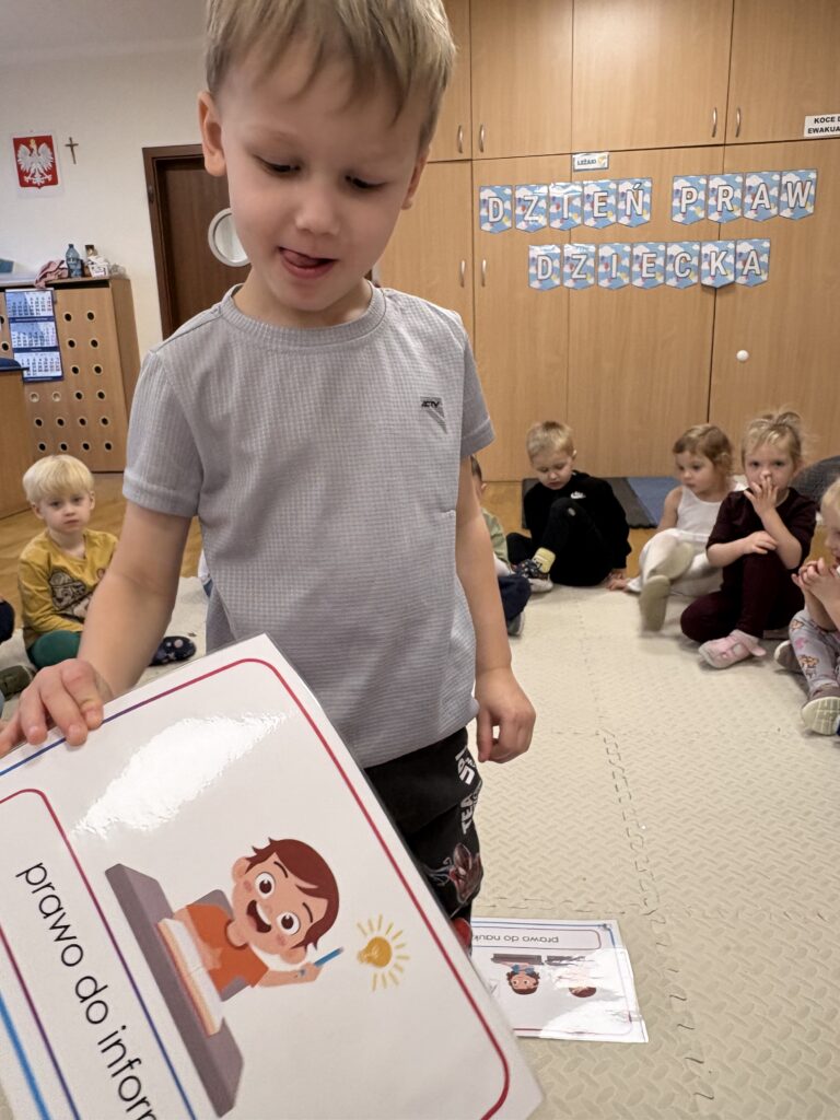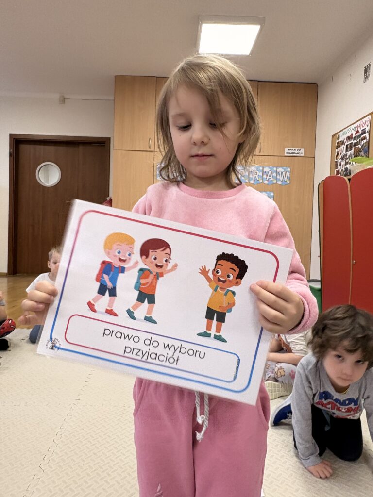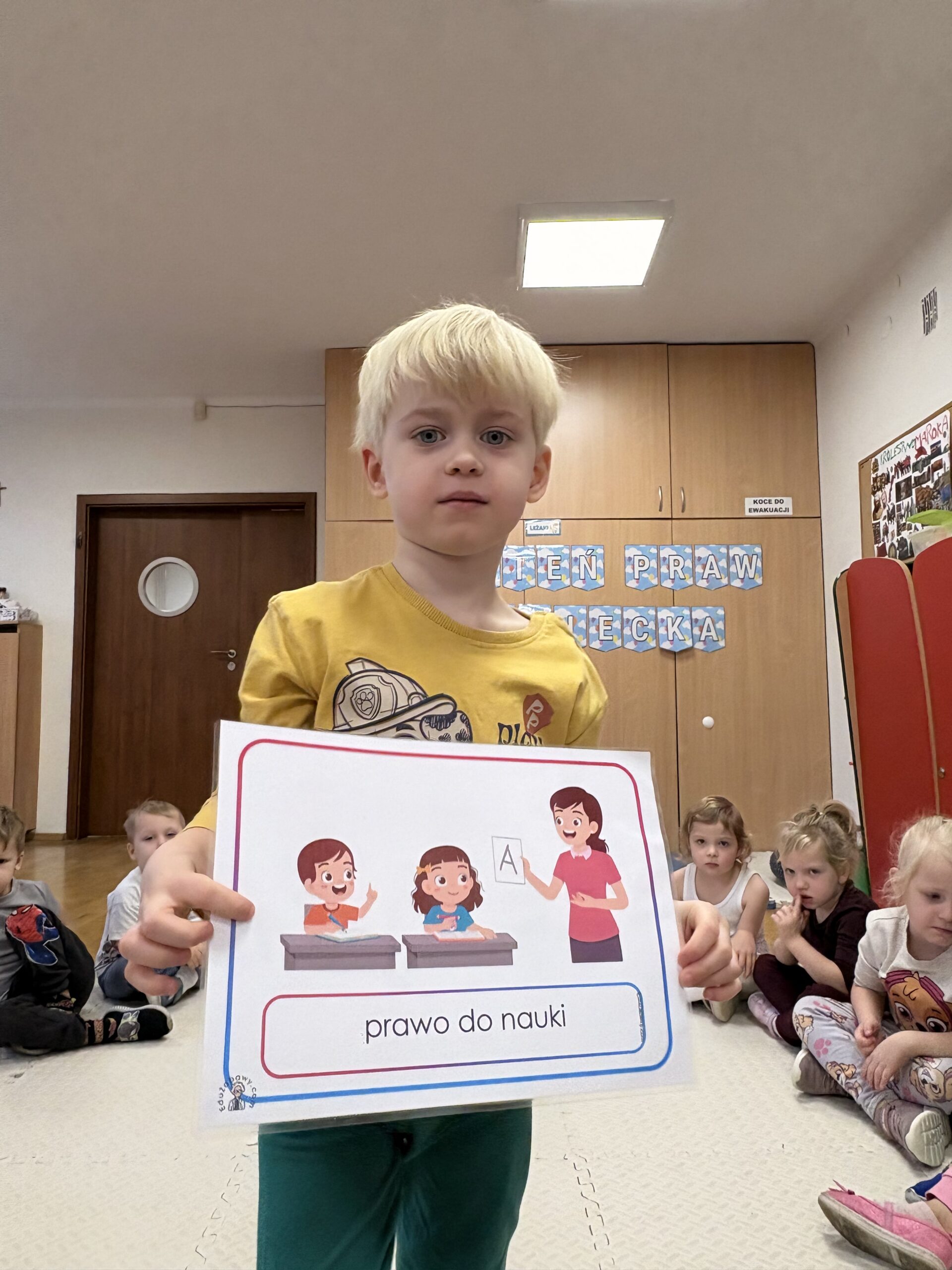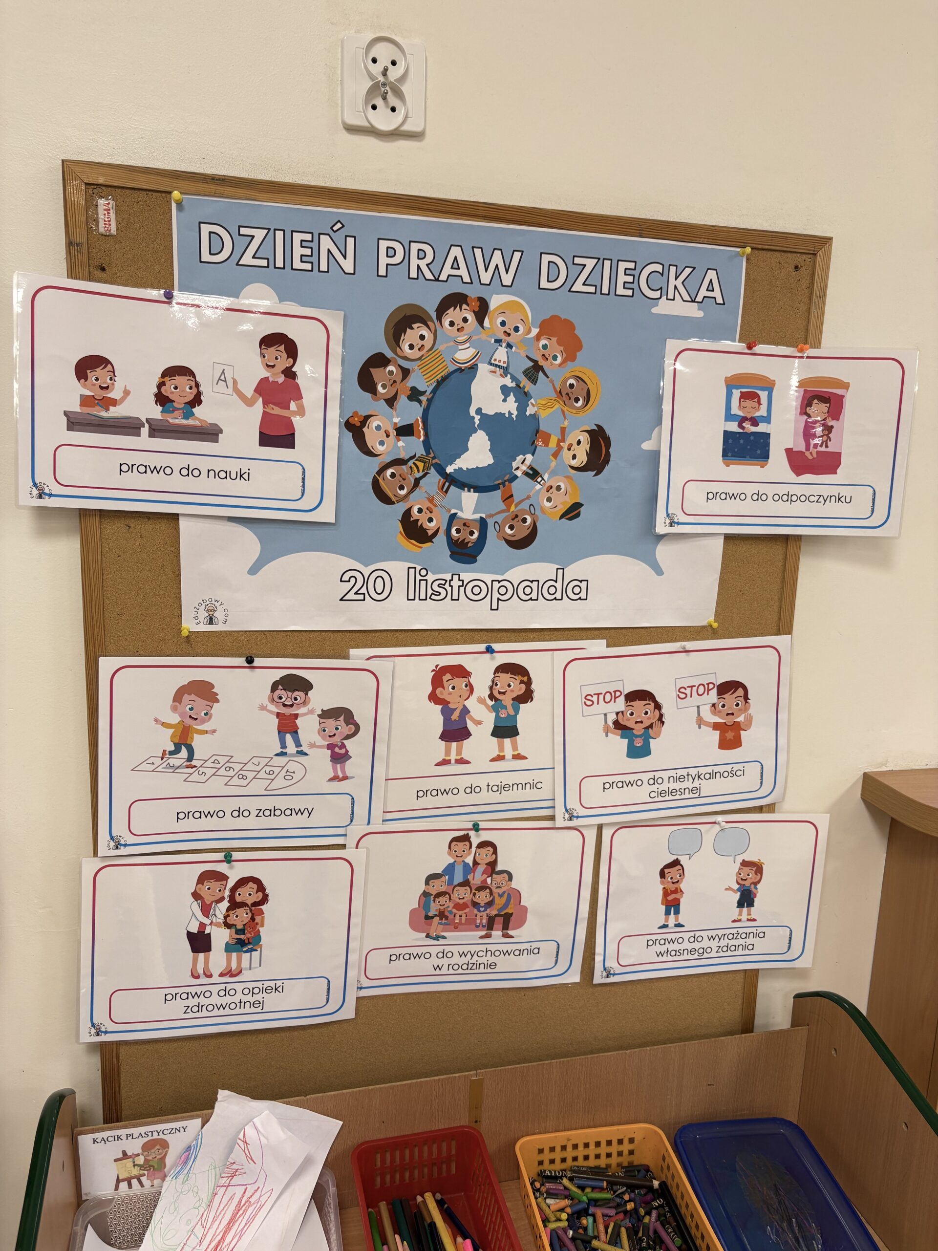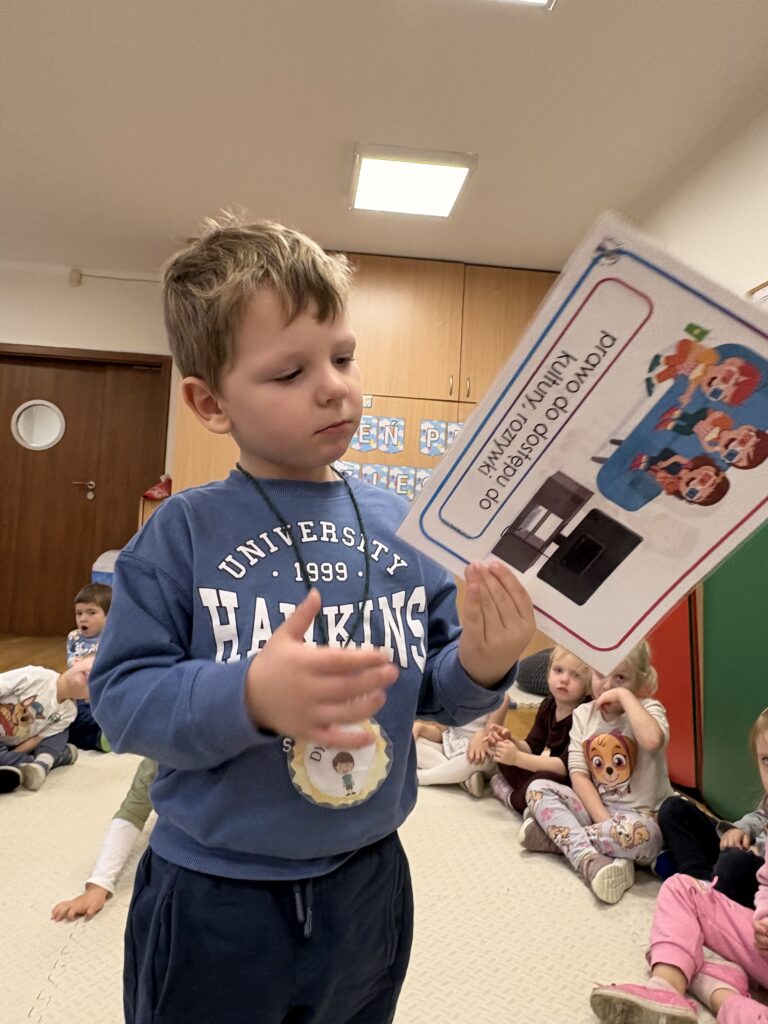 W naszej grupie świętowaliśmy dziś Międzynarodowy Dzień Praw Dziecka. Podczas zajęć dzieci dowiedziały się, czym są prawa dziecka i dlaczego są tak ważne w codziennym życiu. Wspólnie wysłuchaliśmy piosenki, która w przyjazny sposób przedstawiała najważniejsze prawa, a następnie dzieci samodzielnie nazywały te, które zapamiętały i uznały za szczególnie ważne.