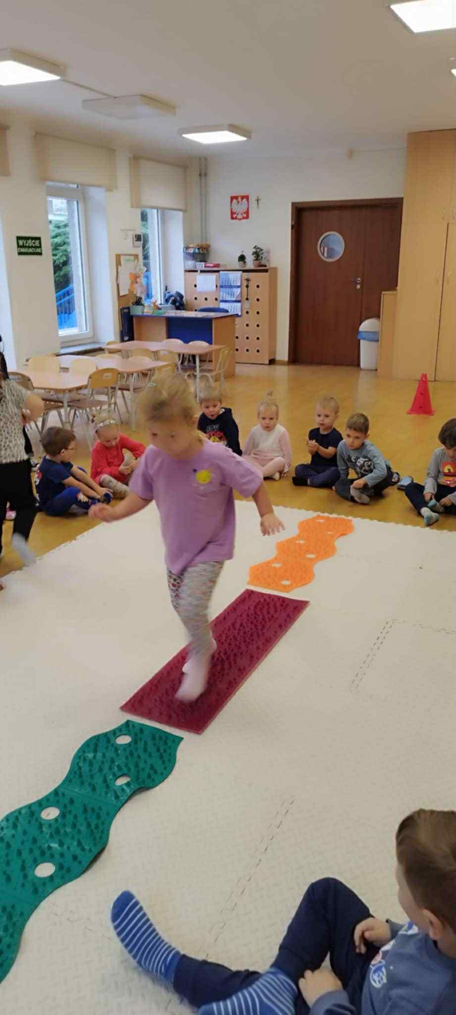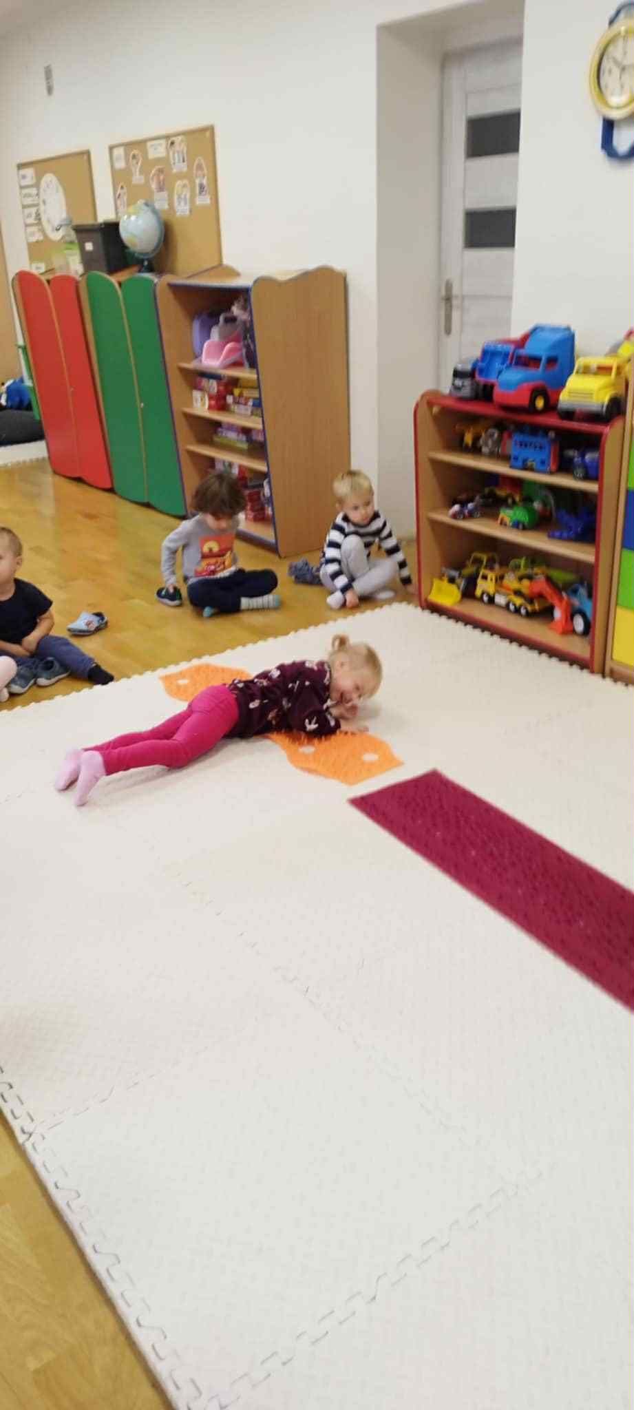 W ,,Rybakach”, przy okazji poznawania warzyw, rozwiązywaliśmy zagadki, dzieliliśmy warzywa według kolorów, następnie spróbowaliśmy zrobić mini przedstawienie inspirowane wierszem Jana Brzechwy ,,Na straganie „. Spróbowaliśmy też swoich sił na ścieżce sensorycznej, co przyniosło nam dużo zabawnych sytuacji, a następnie uczyliśmy się współpracy w parach, przenosząc krążki bez pomocy rąk. Na koniec żeby wyciszyć emocje bawiliśmy się zabawkami sensorycznymi i plasteliną.