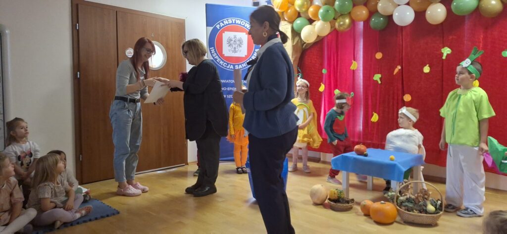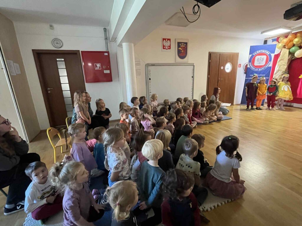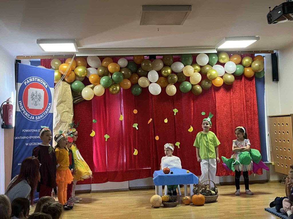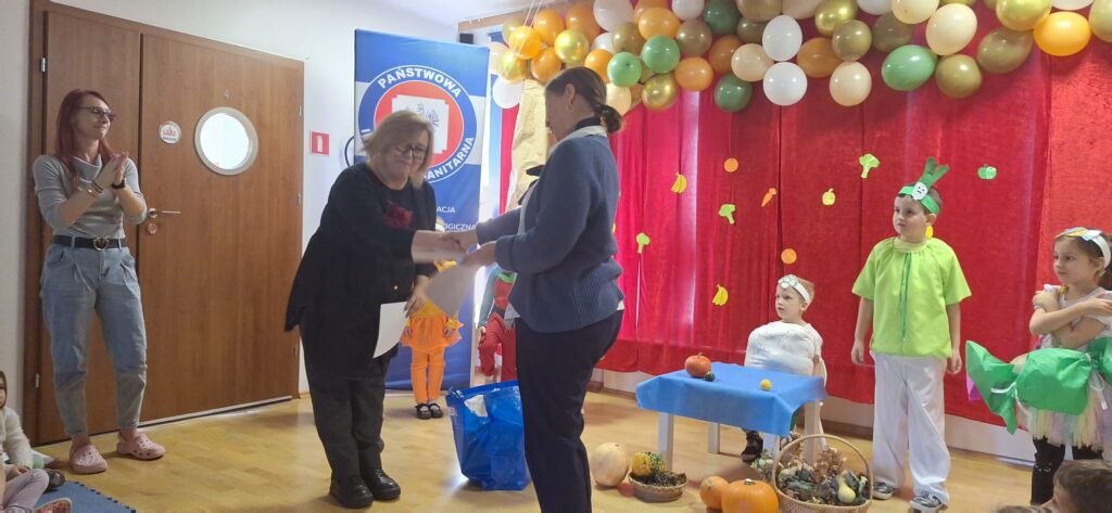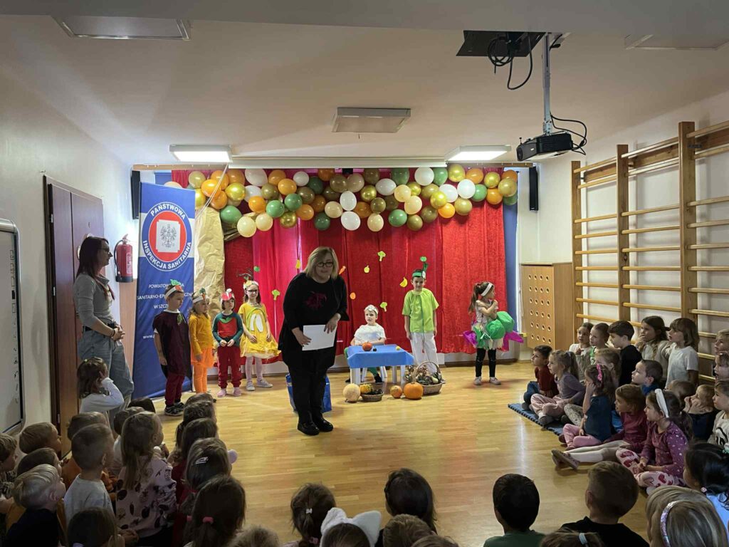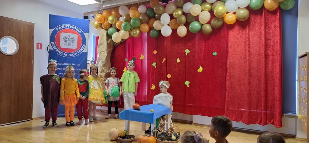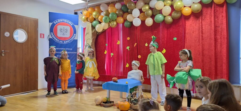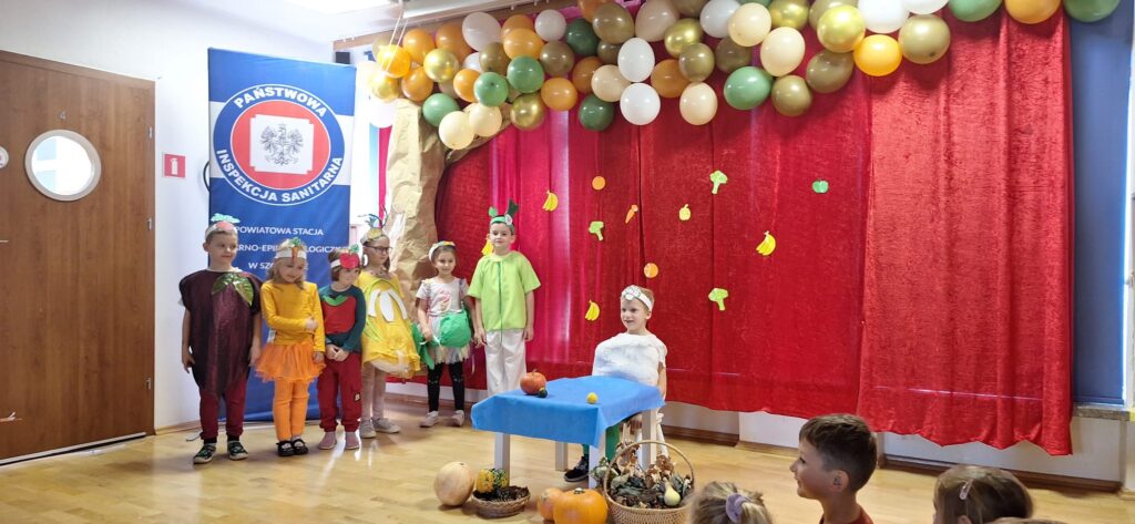Dzieci z grupy „Piraci” wzięły udział w konkursie organizowanym przez Powiatową Stację Sanitarno – Epidemiologiczną pt. „Eko warzywa kupuję, bo swoje zdrowie buduję.” Zadaniem konkursowym, było przygotowanie krótkiej inscenizacji, której celem jest zwiększenie wiedzy i świadomości przedszkolaków o nawykach higieniczno-zdrowotnych.