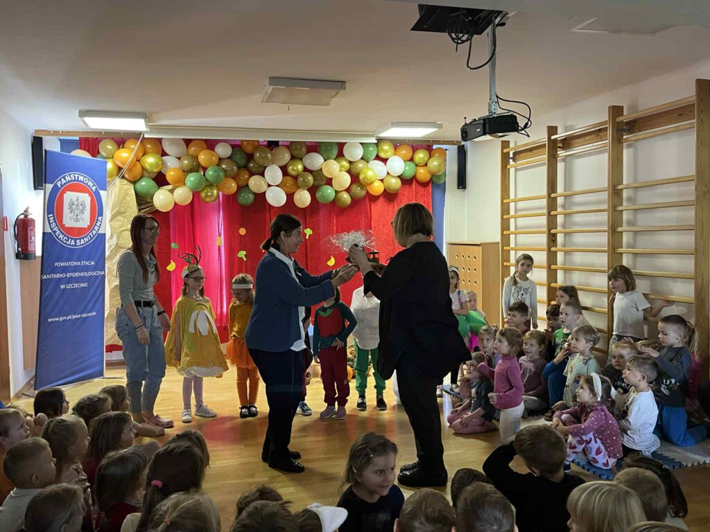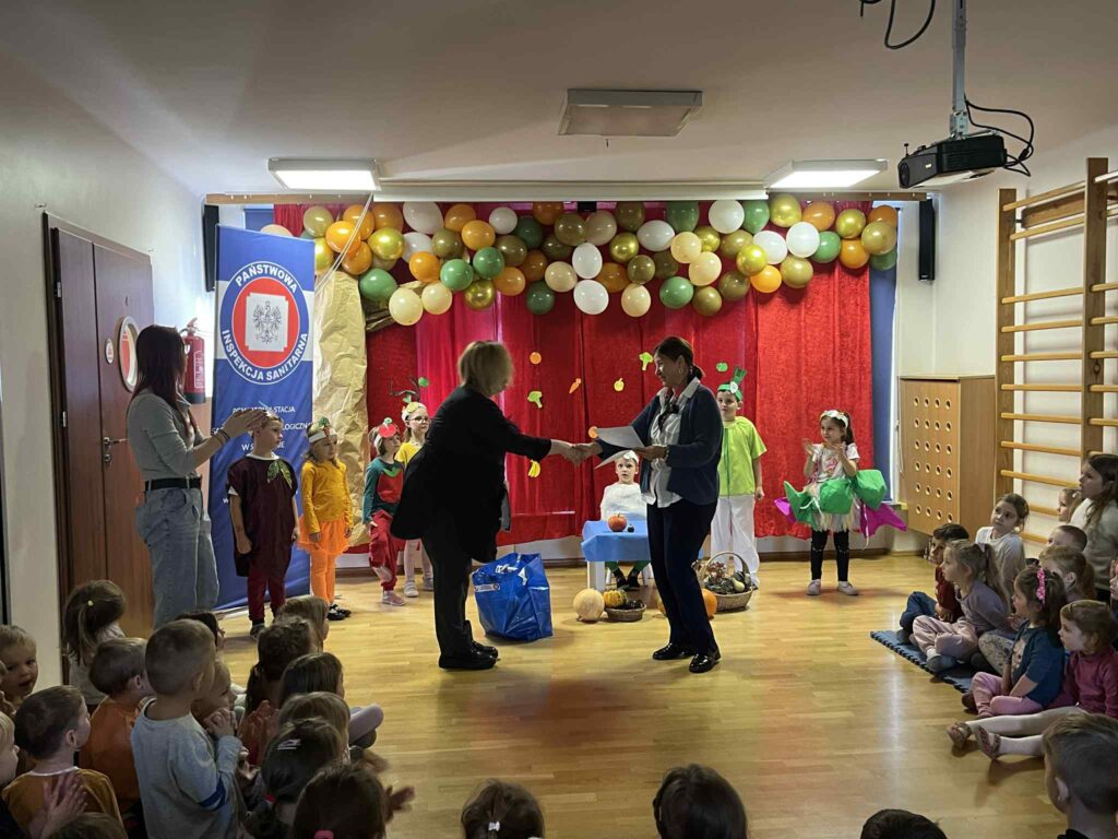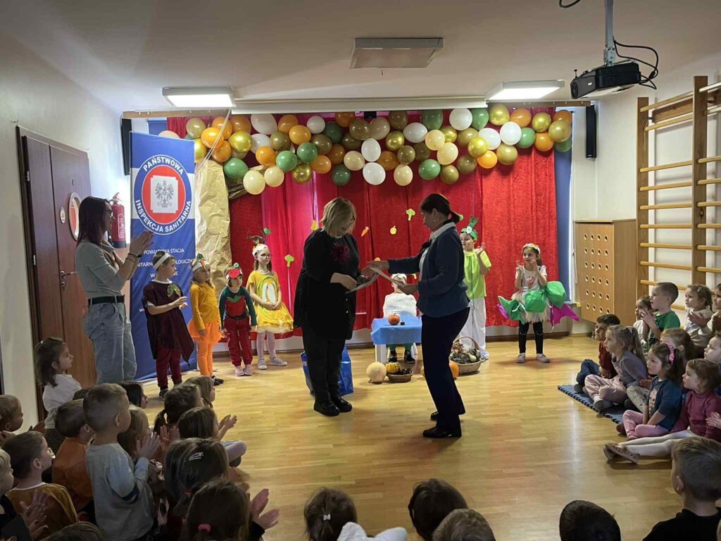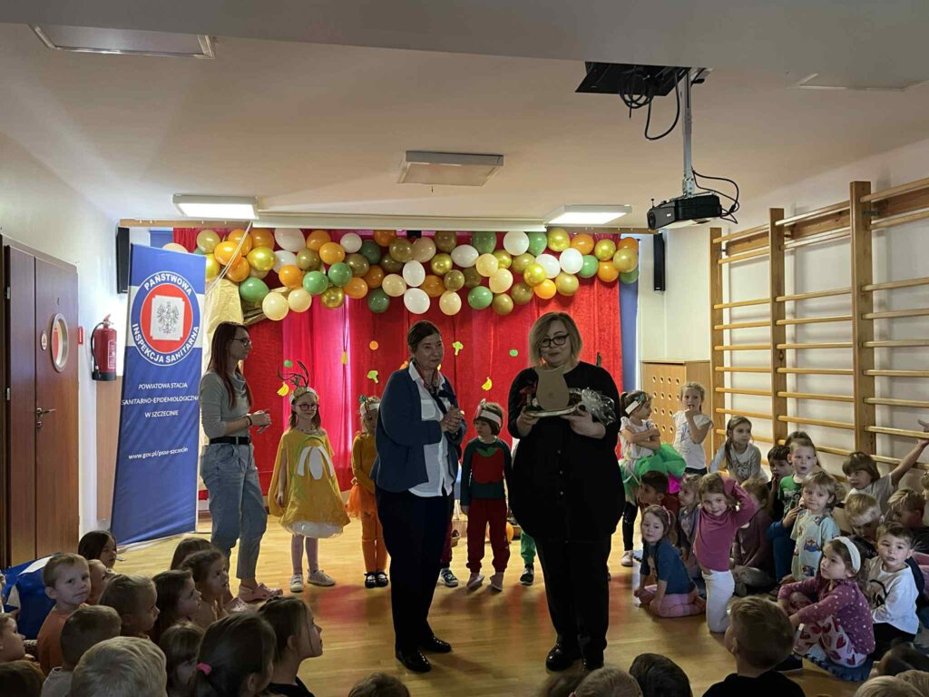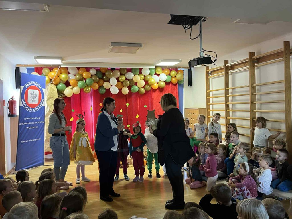 Odwiedziła nas Pani Emilia Deptalska z Powiatowej Stacji Sanitarno – Epidemiologicznej, która wręczyła naszym aktorom nagrody za udział w konkursie.