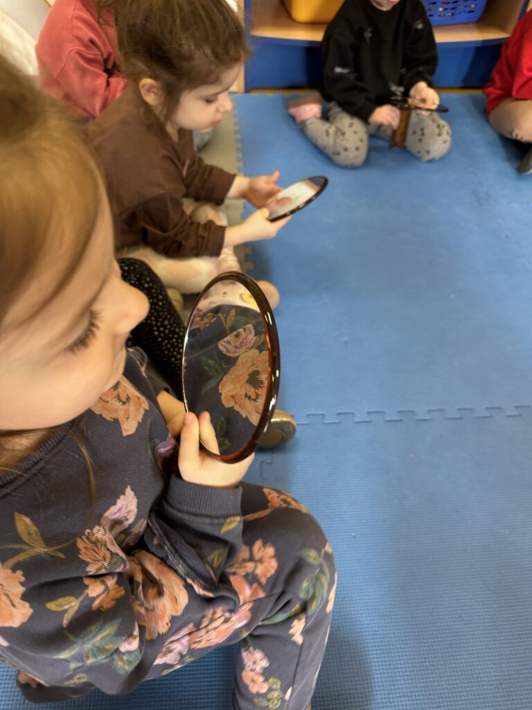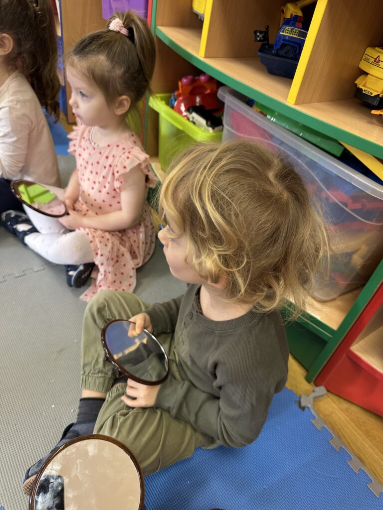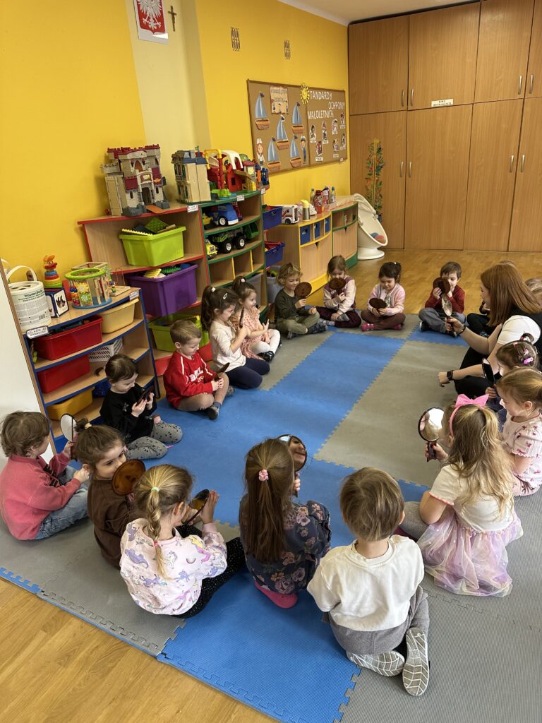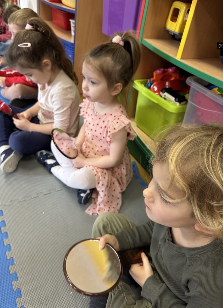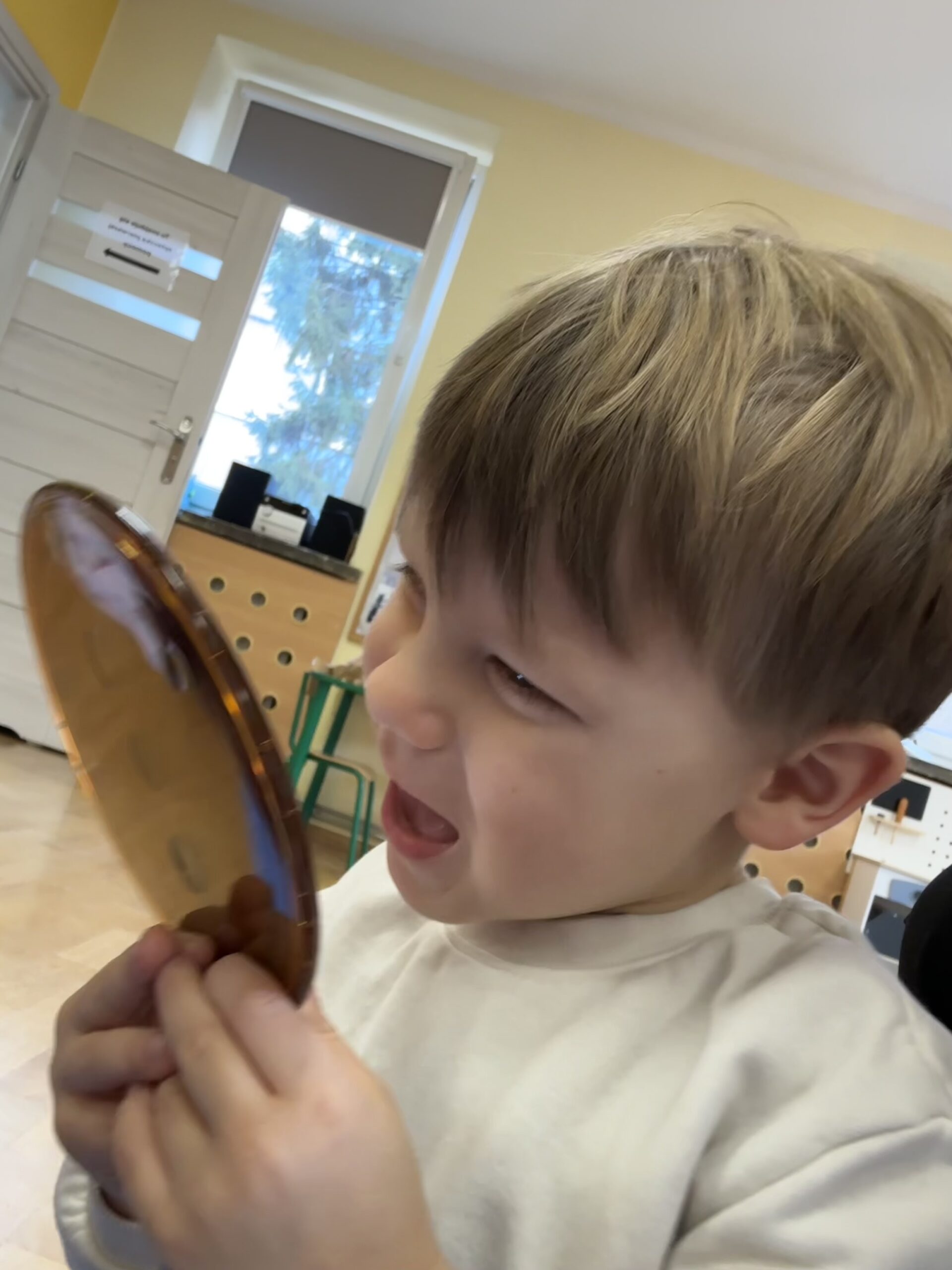 Dzisiaj na naszych zajęciach królowały ciekawe przedmioty – lusterka 🪞 Dzięki nim mogliśmy obserwować, czy poprawnie wykonujemy ćwiczenia, mające na celu usprawnienie naszego aparatu artykulacyjnego. Dzisiejsza gimnastyka buzi i języka była oparta na interesującej bajce o „Kubusiu Puchatku”. Była świetna zabawa!