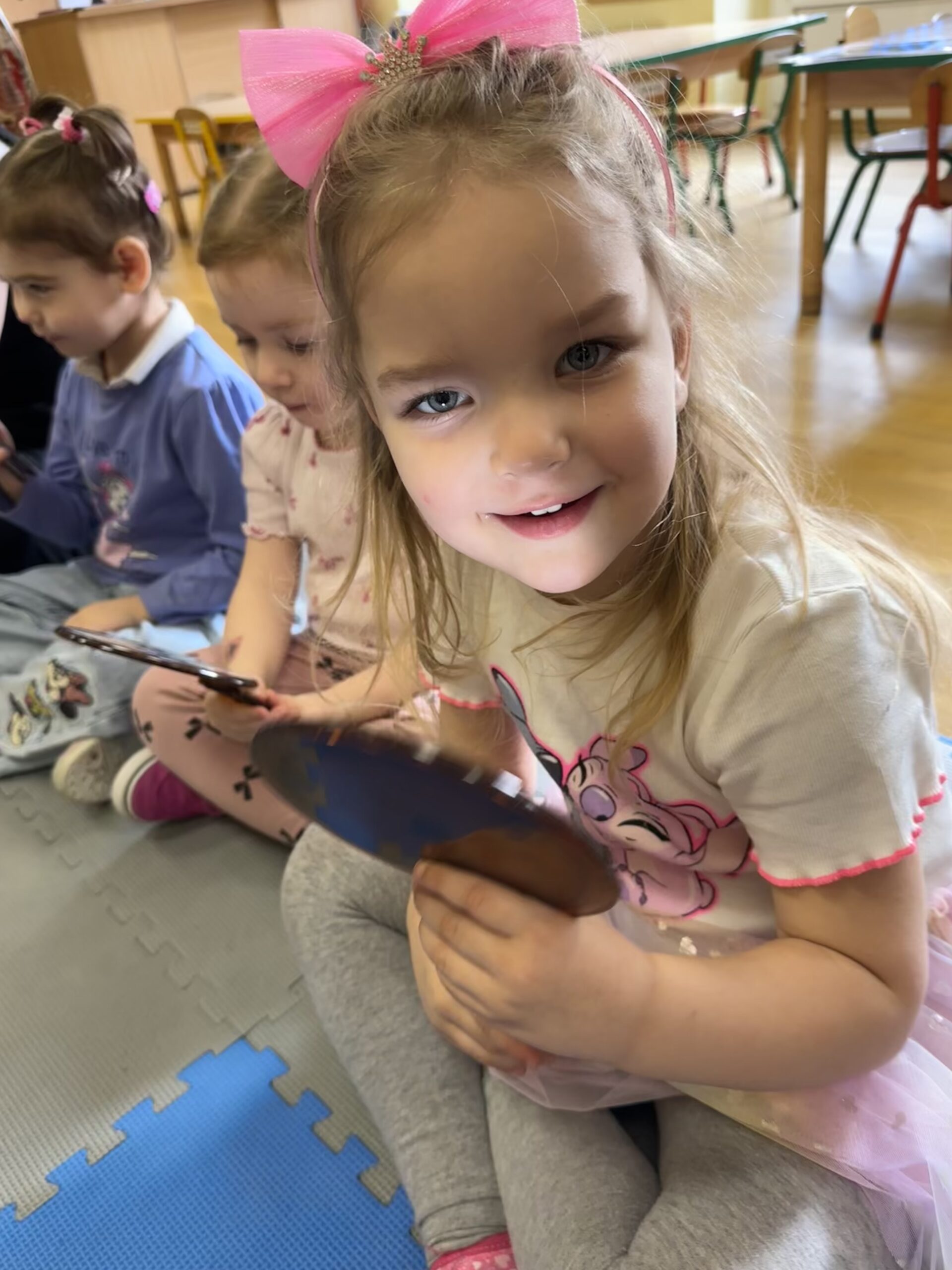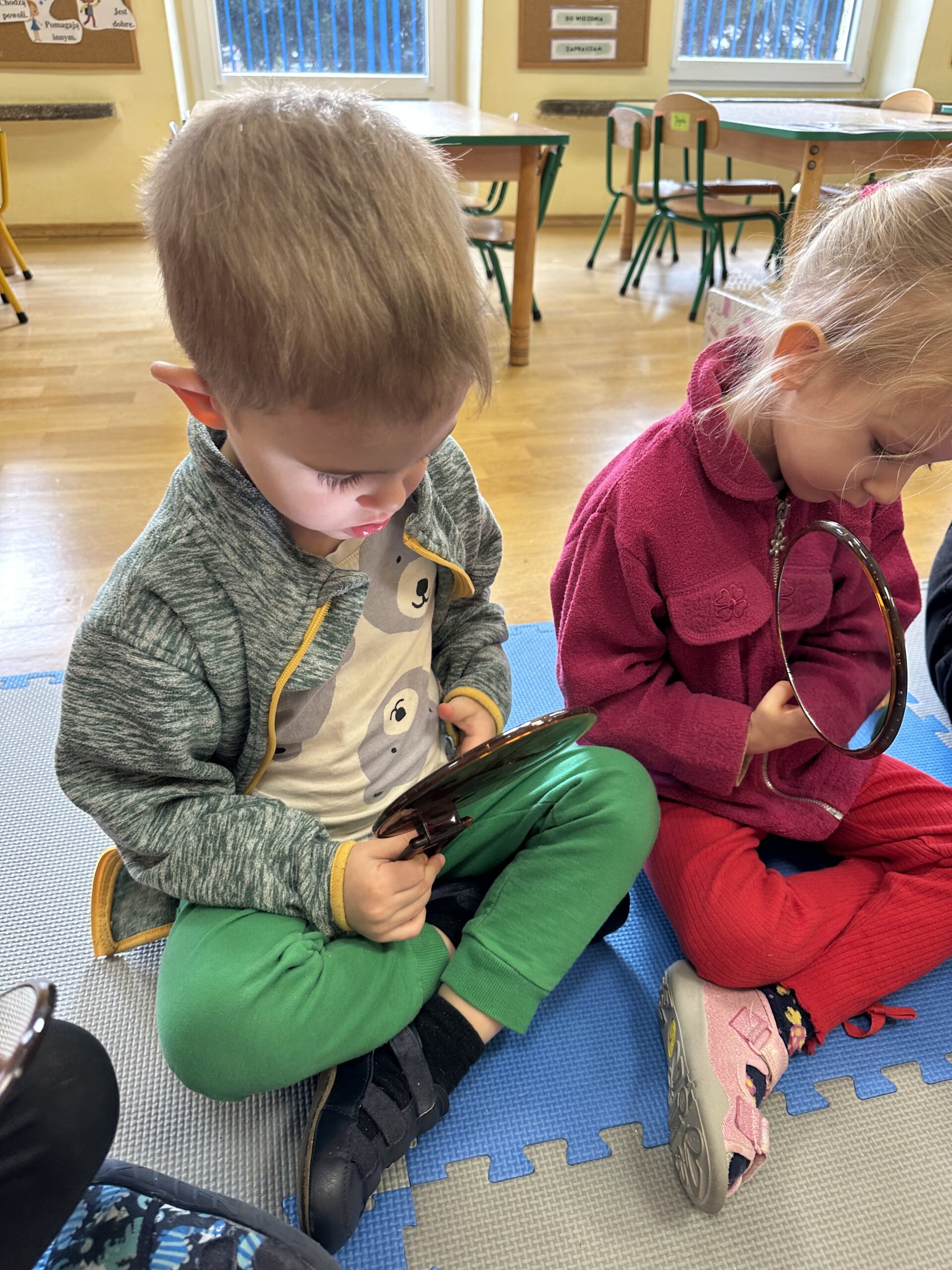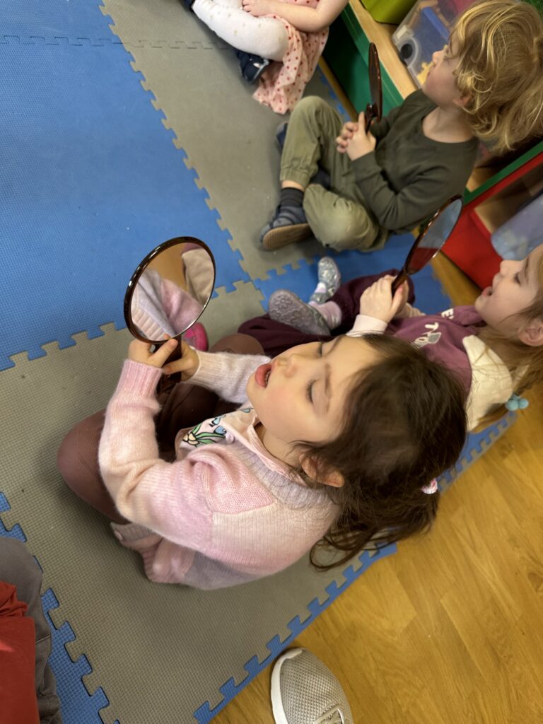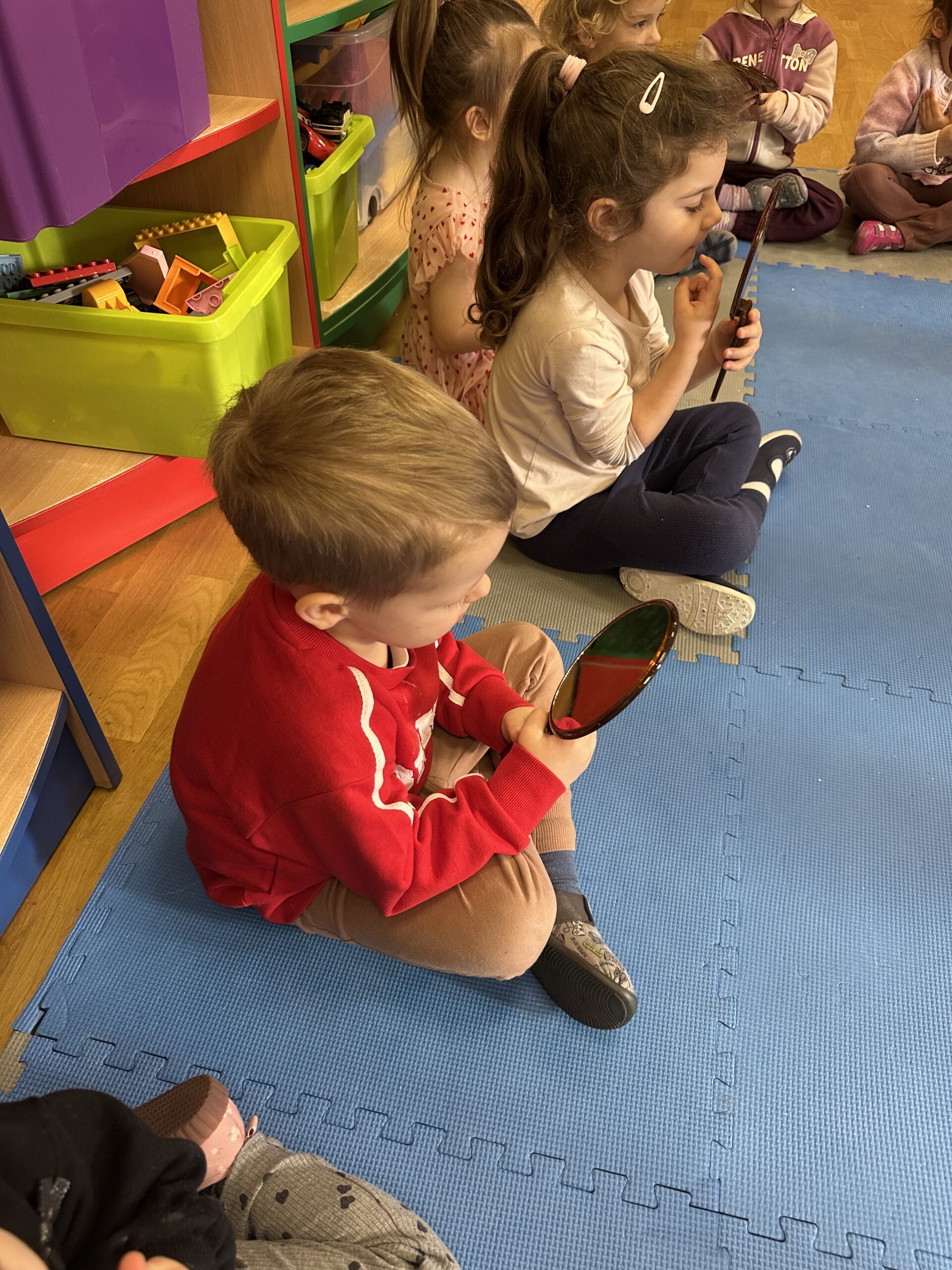 Dzisiaj na naszych zajęciach królowały ciekawe przedmioty – lusterka 🪞 Dzięki nim mogliśmy obserwować, czy poprawnie wykonujemy ćwiczenia, mające na celu usprawnienie naszego aparatu artykulacyjnego. Dzisiejsza gimnastyka buzi i języka była oparta na interesującej bajce o „Kubusiu Puchatku”. Była świetna zabawa!