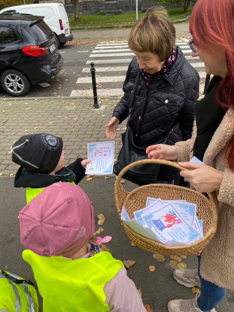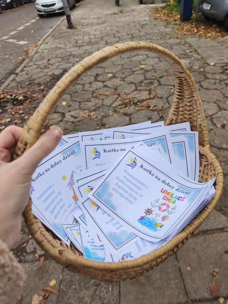 W przedszkolu zorganizowaliśmy również kącik z takimi samymi karteczkami. Każdy mógł zabrać jedną, przeczytać ją w drodze do pracy, szkoły czy na spacerze, a potem – jeśli chce – podzielić się dalej uśmiechem, przekazując ją komuś innemu lub tworząc własne życzenia.