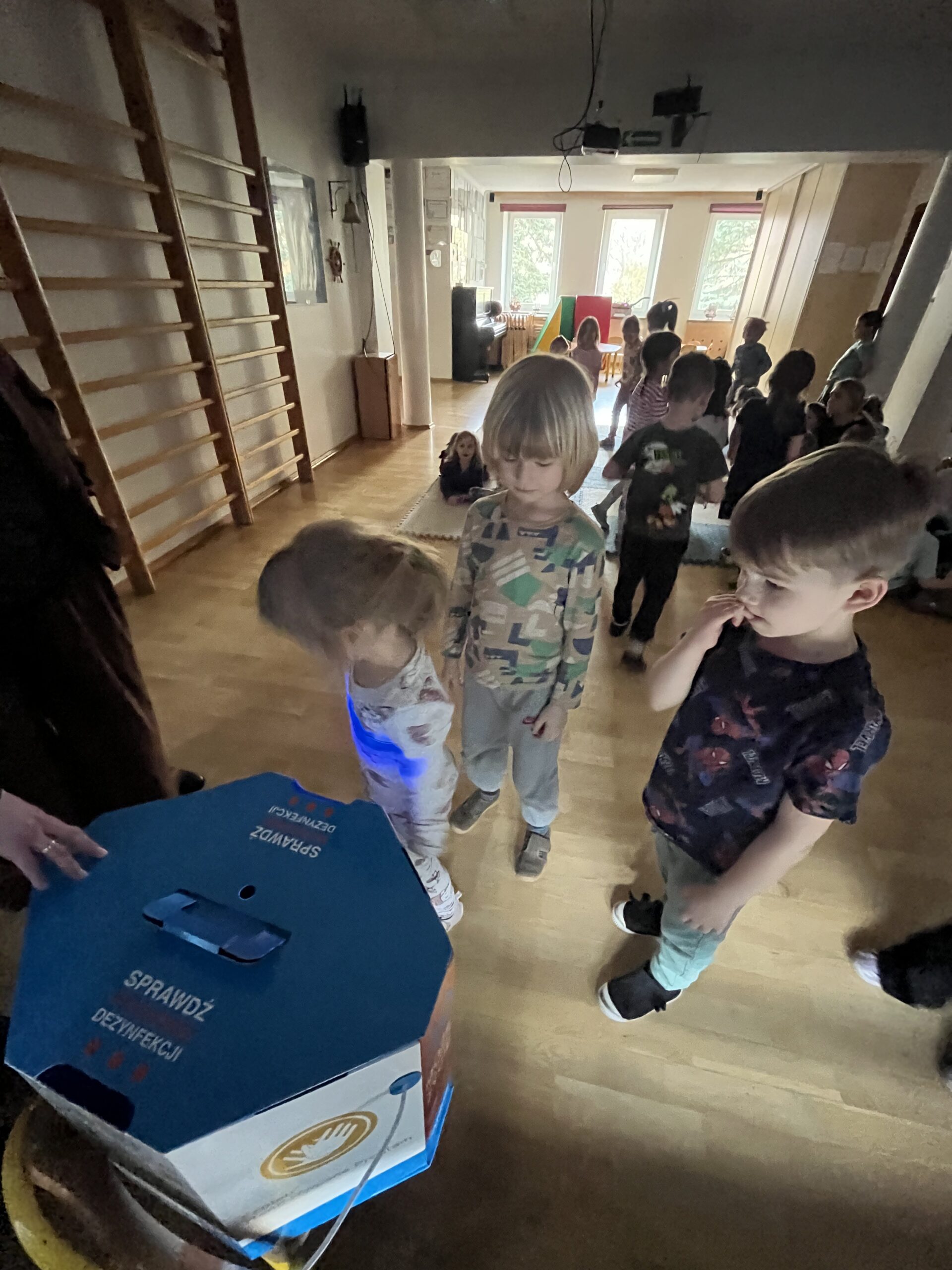 Podczas zajęć profilaktycznych dzieci uczyły się, jak prawidłowo myć ręce – używając ciepłej wody i mydła, dokładnie pocierając dłonie, paluszki, przestrzenie między palcami oraz kciuki. Dowiedziały się również, kiedy należy myć ręce: przed jedzeniem, po wyjściu z toalety, po powrocie z podwórka oraz po kaszlu czy kichaniu.