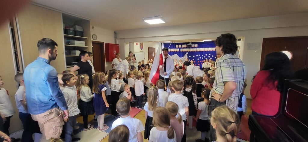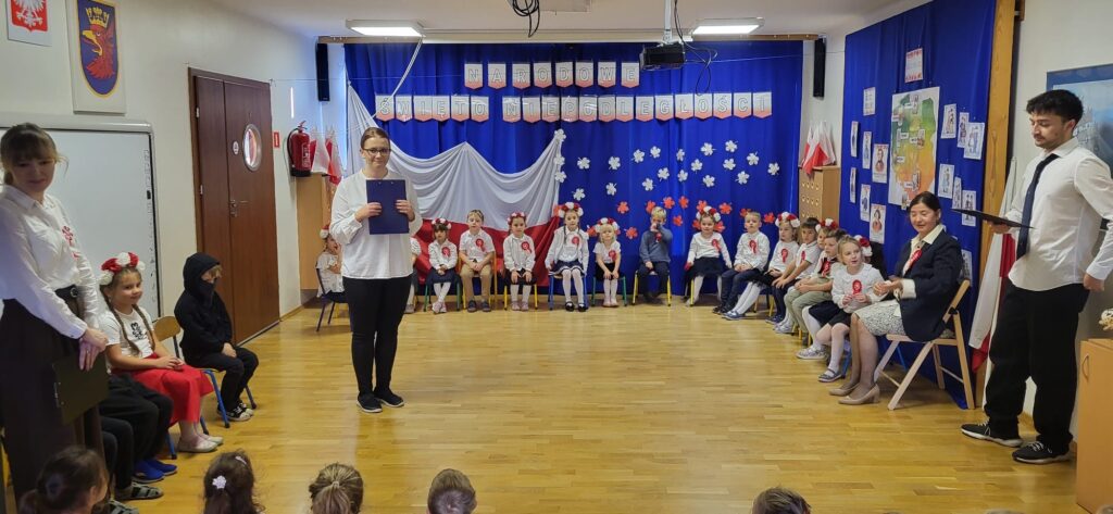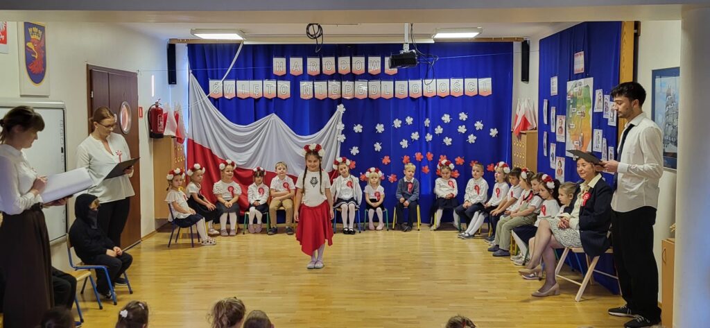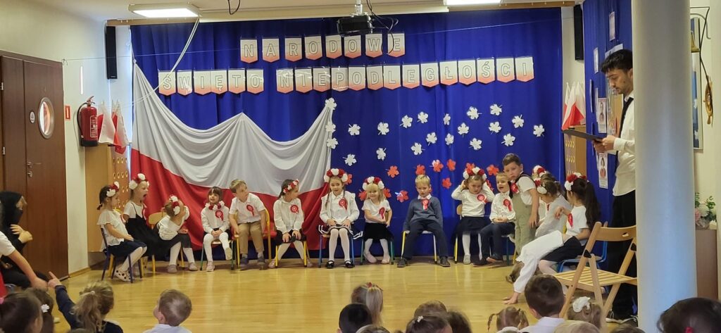 Dzisiaj mieliśmy okazję przygotować dla całego przedszkola uroczystość z okazji zbliżającego się Narodowego Święta Niepodległości. Zaprezentowaliśmy społeczności przedszkolnej wspaniałą lekcję HISTORII POLSKI. Z dumą chwalimy się, że nasz tegoroczny wolontariusz Bruno ma polskie korzenie i zna dobrze nasz język dlatego on również brał udział w prowadzeniu uroczystości. Na koniec nasze przedszkolaki uroczyście odśpiewały hymn w ramach akcji „Szkoła do hymnu”.