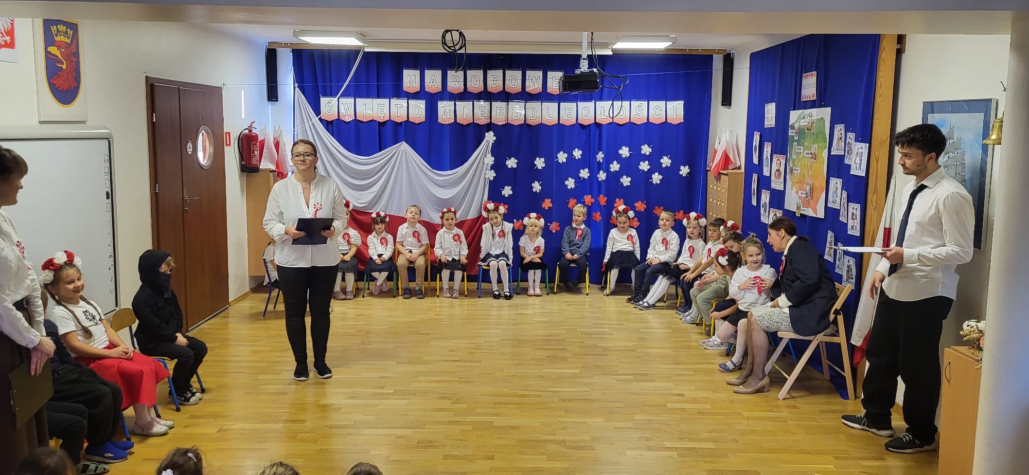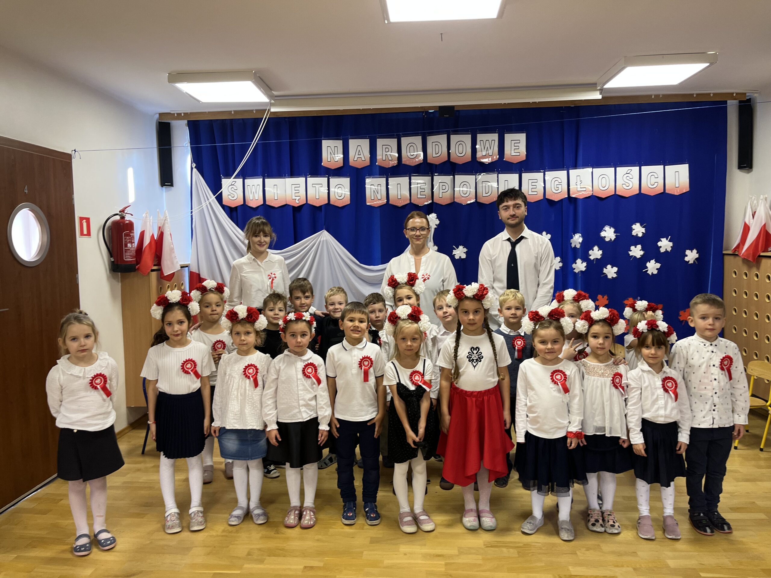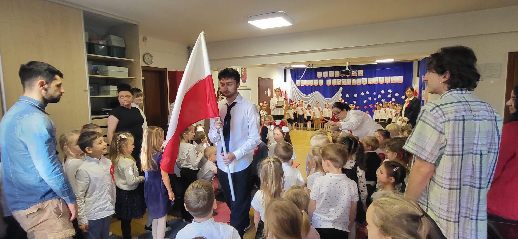 Dzisiaj mieliśmy okazję przygotować dla całego przedszkola uroczystość z okazji zbliżającego się Narodowego Święta Niepodległości. Zaprezentowaliśmy społeczności przedszkolnej wspaniałą lekcję HISTORII POLSKI. Z dumą chwalimy się, że nasz tegoroczny wolontariusz Bruno ma polskie korzenie i zna dobrze nasz język dlatego on również brał udział w prowadzeniu uroczystości. Na koniec nasze przedszkolaki uroczyście odśpiewały hymn w ramach akcji „Szkoła do hymnu”.