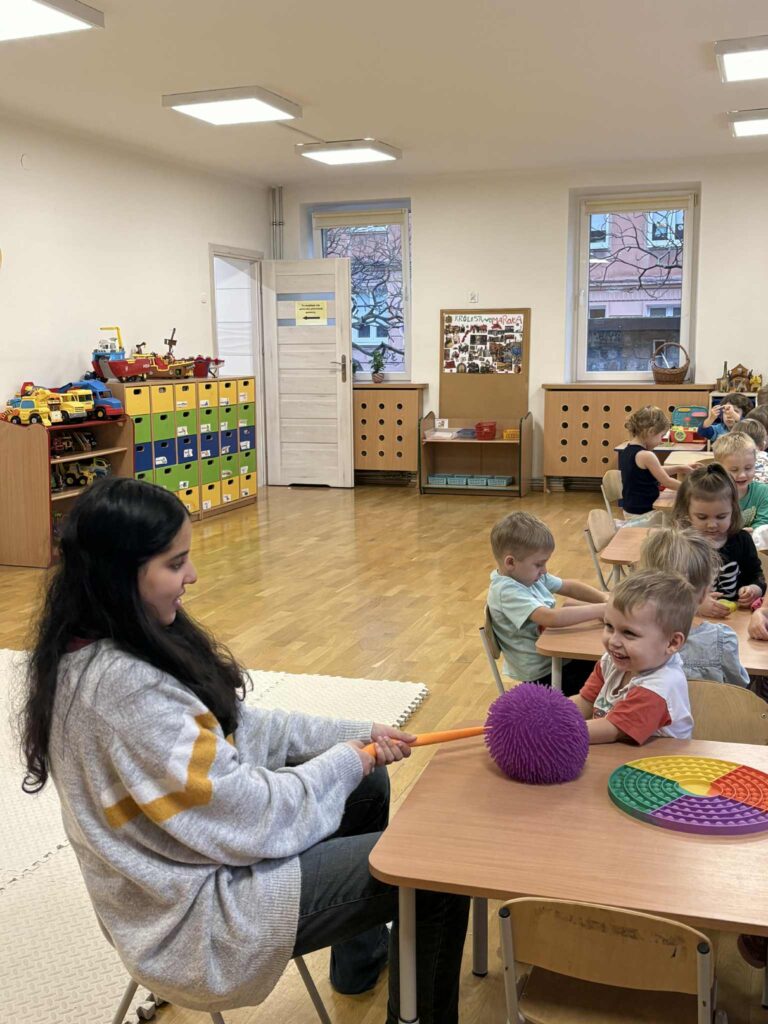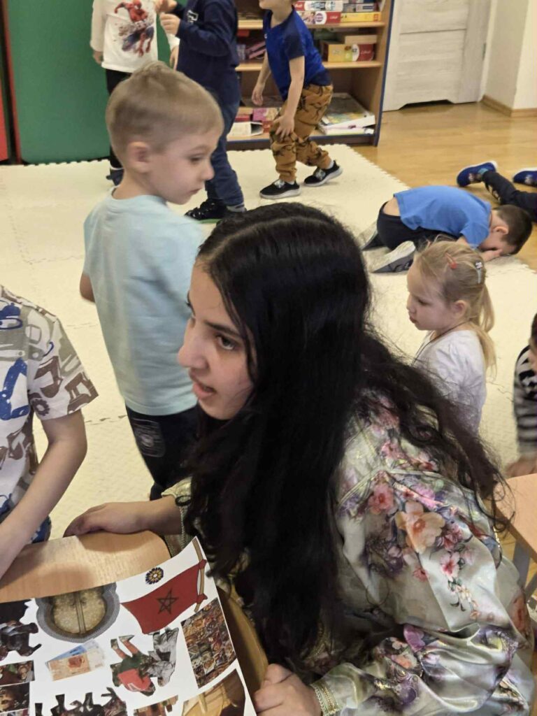 W tym tygodniu nasza wolontariuszka spędziła w grupie Rybacy pełne radości chwile. Przypomniała dzieciom ciekawe informacje o Maroku, chętnie bawiła się z nimi na świeżym powietrzu oraz aktywnie uczestniczyła w różnorodnych zabawach. Dzięki jej zaangażowaniu każdy dzień był pełen uśmiechów i ciekawych odkryć.