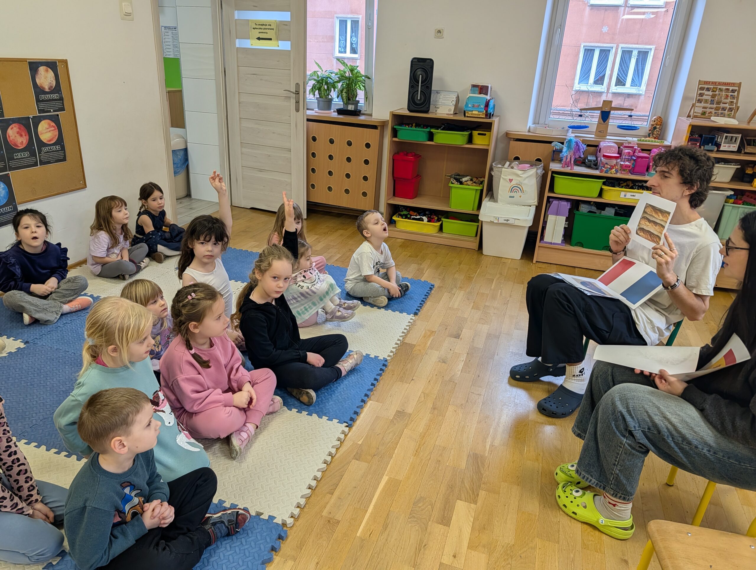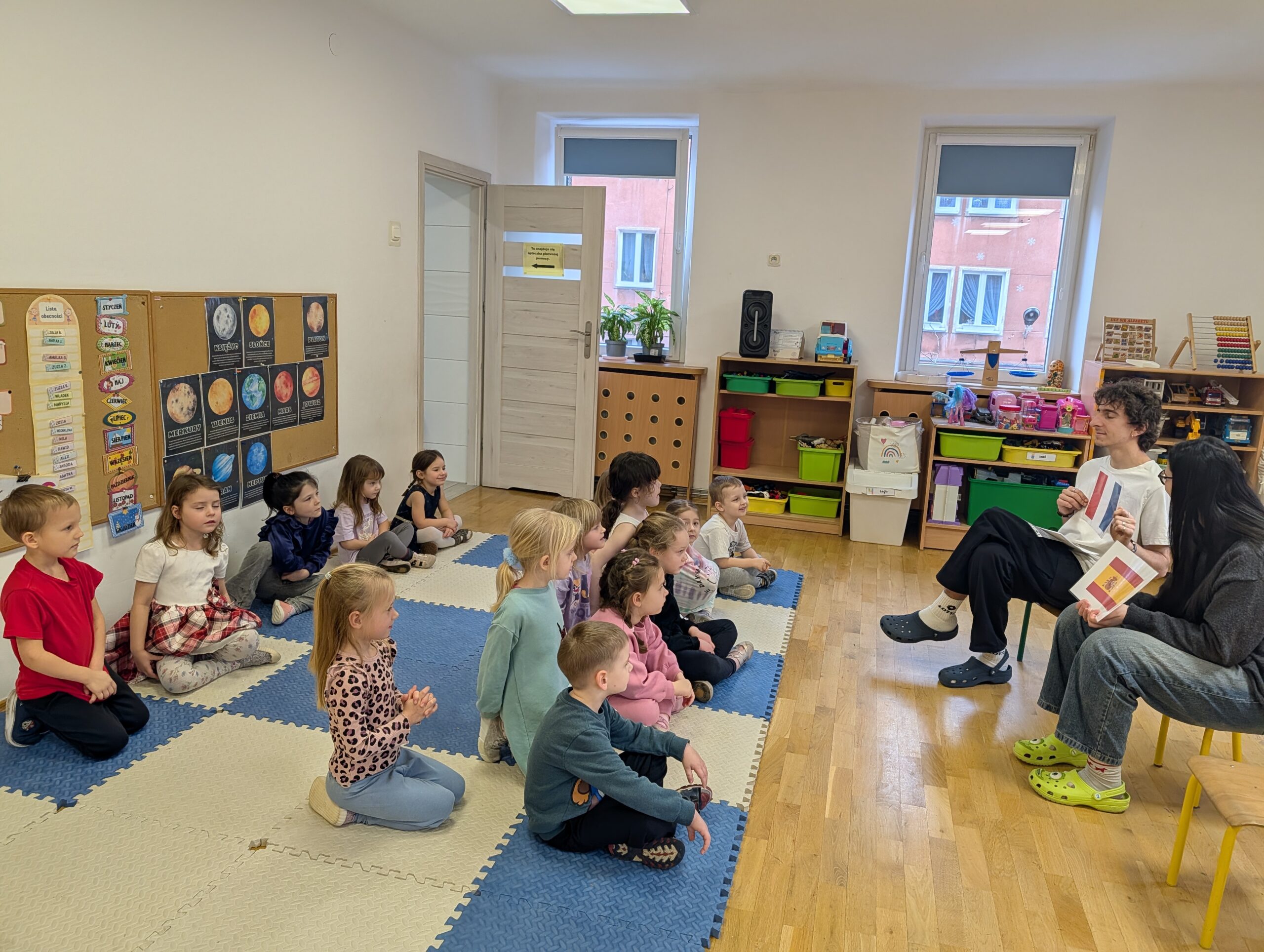 Dziś w naszym przedszkolu gościliśmy wolontariuszkę z Francji. Wraz z naszym wolontariuszem zabrali dzieci w wyjątkową podróż po kulturze 🇫🇷🇪🇸Przedszkolaki poznały wygląd i znaczenie flag, ciekawostki o tych krajach oraz popularne potrawy. Była to świetna okazja do nauki poprzez zabawę, rozwijania ciekawości świata i poznawania innych tradycji.Dziękujemy wolontariuszom za inspirujące spotkanie i wspólnie spędzony czas!