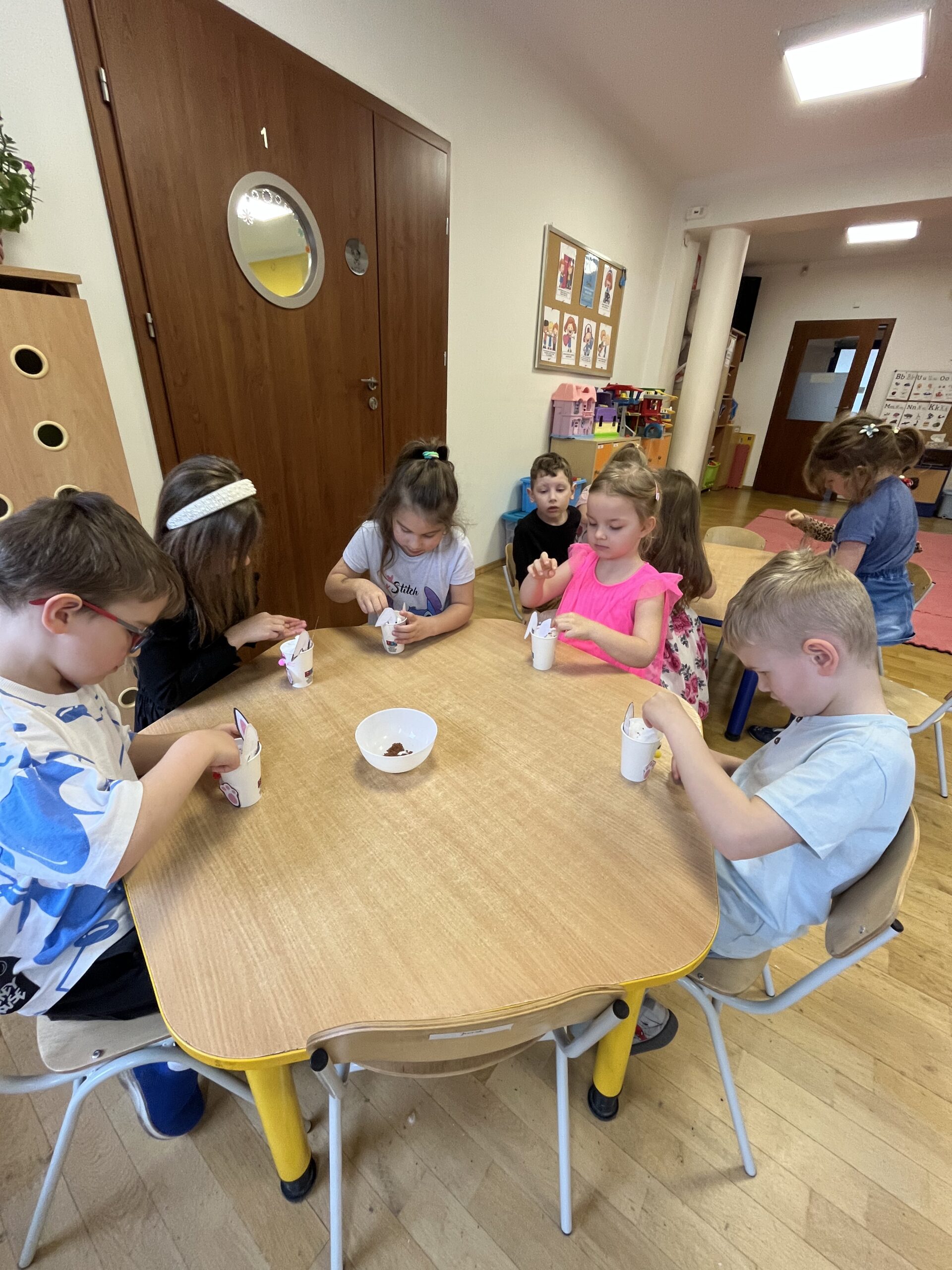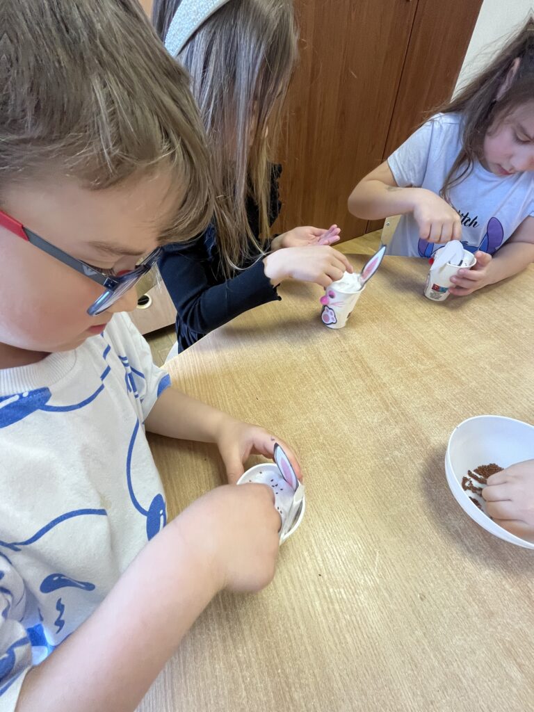 W radosnej, przedświątecznej atmosferze nasze przedszkolaki z zaangażowaniem przygotowują się do Wielkanocy. Dzieci wykonały piękne, kolorowe ozdoby na kiermasz, rozwijając swoją kreatywność i zdolności manualne. Z wielką ciekawością posiały również rzeżuchę, ucząc się przy tym cierpliwości i troski o rośliny. To czas pełen uśmiechu, zabawy i wspólnego odkrywania tradycji wielkanocnych. 🌱🐣