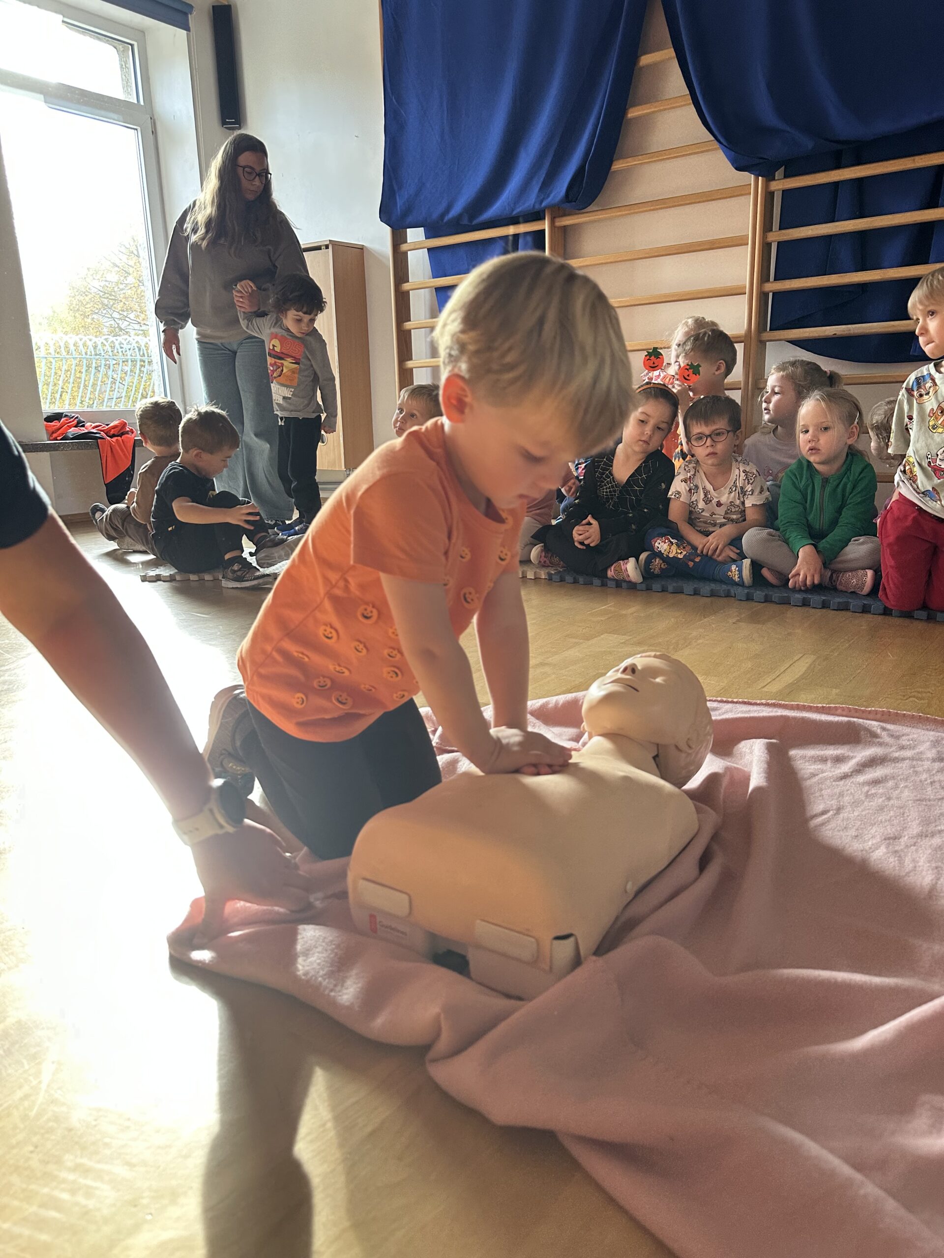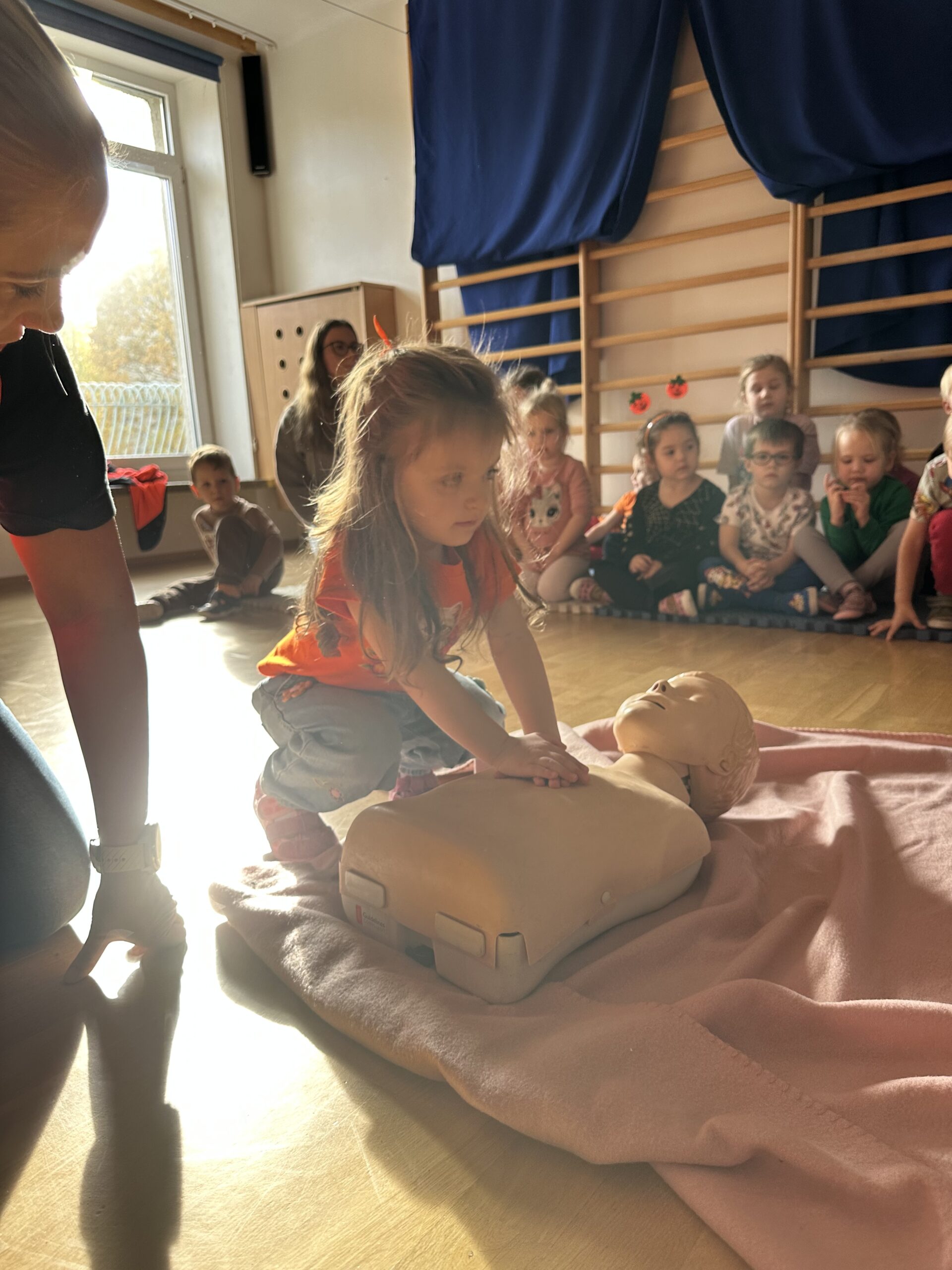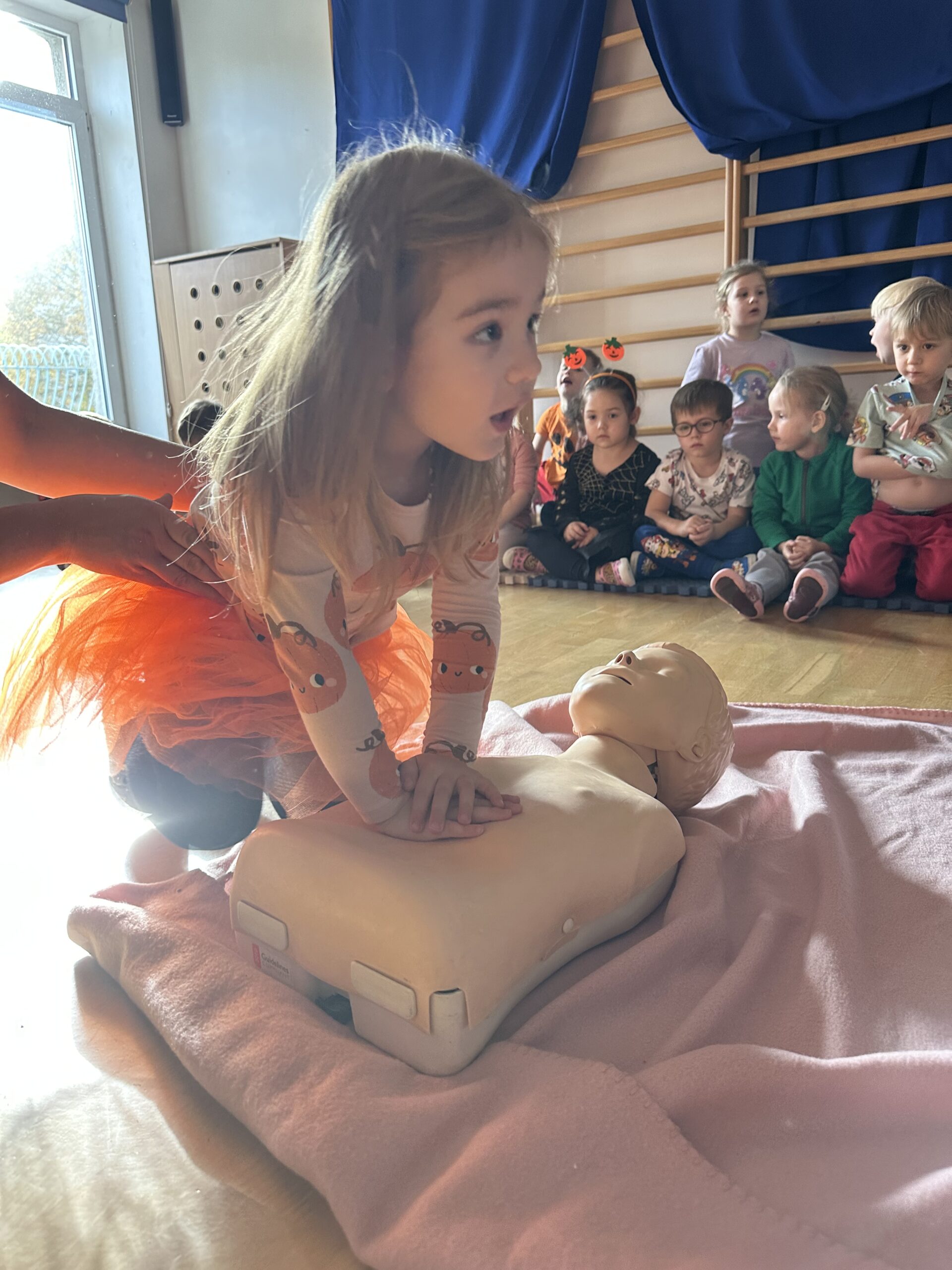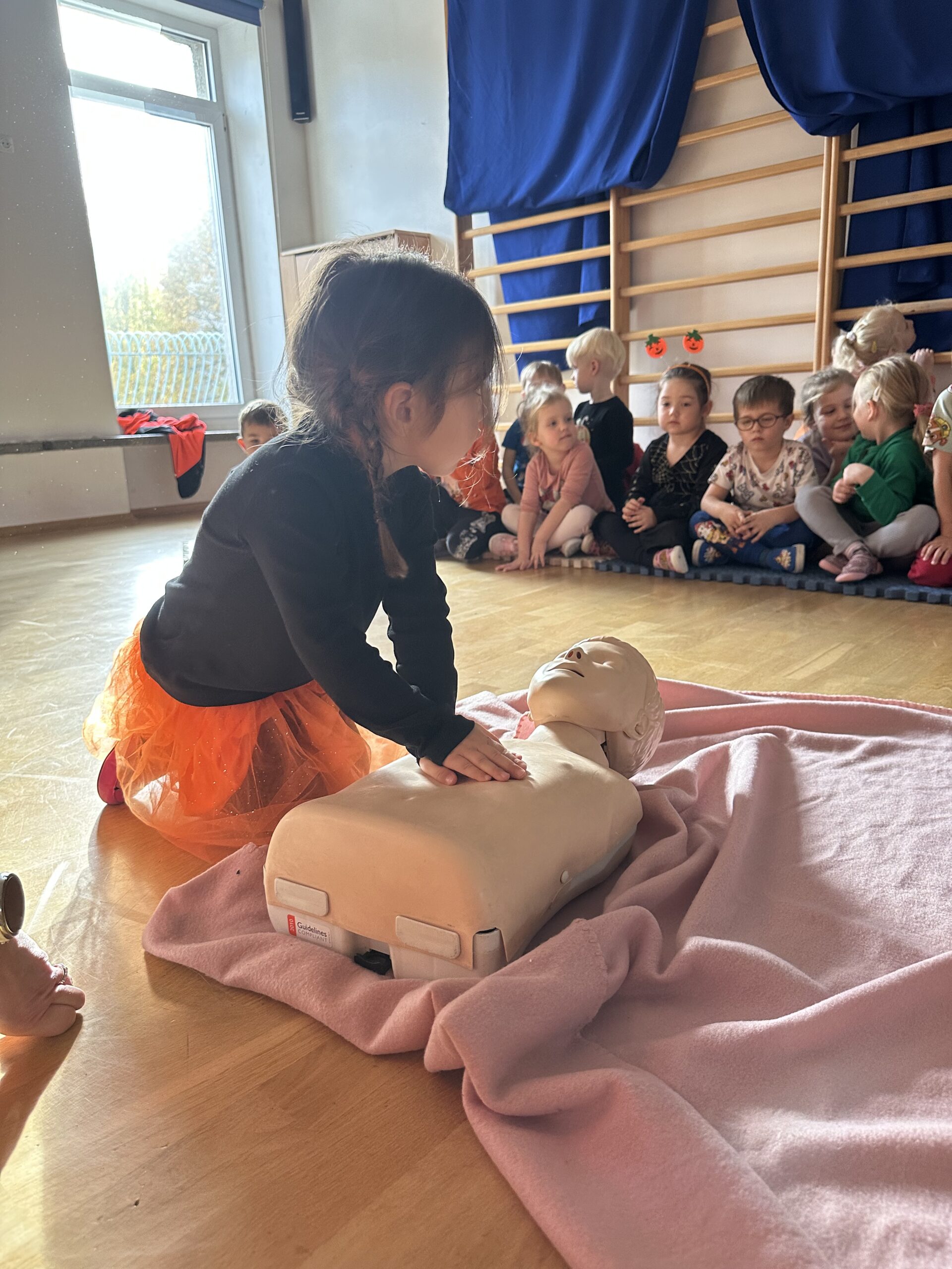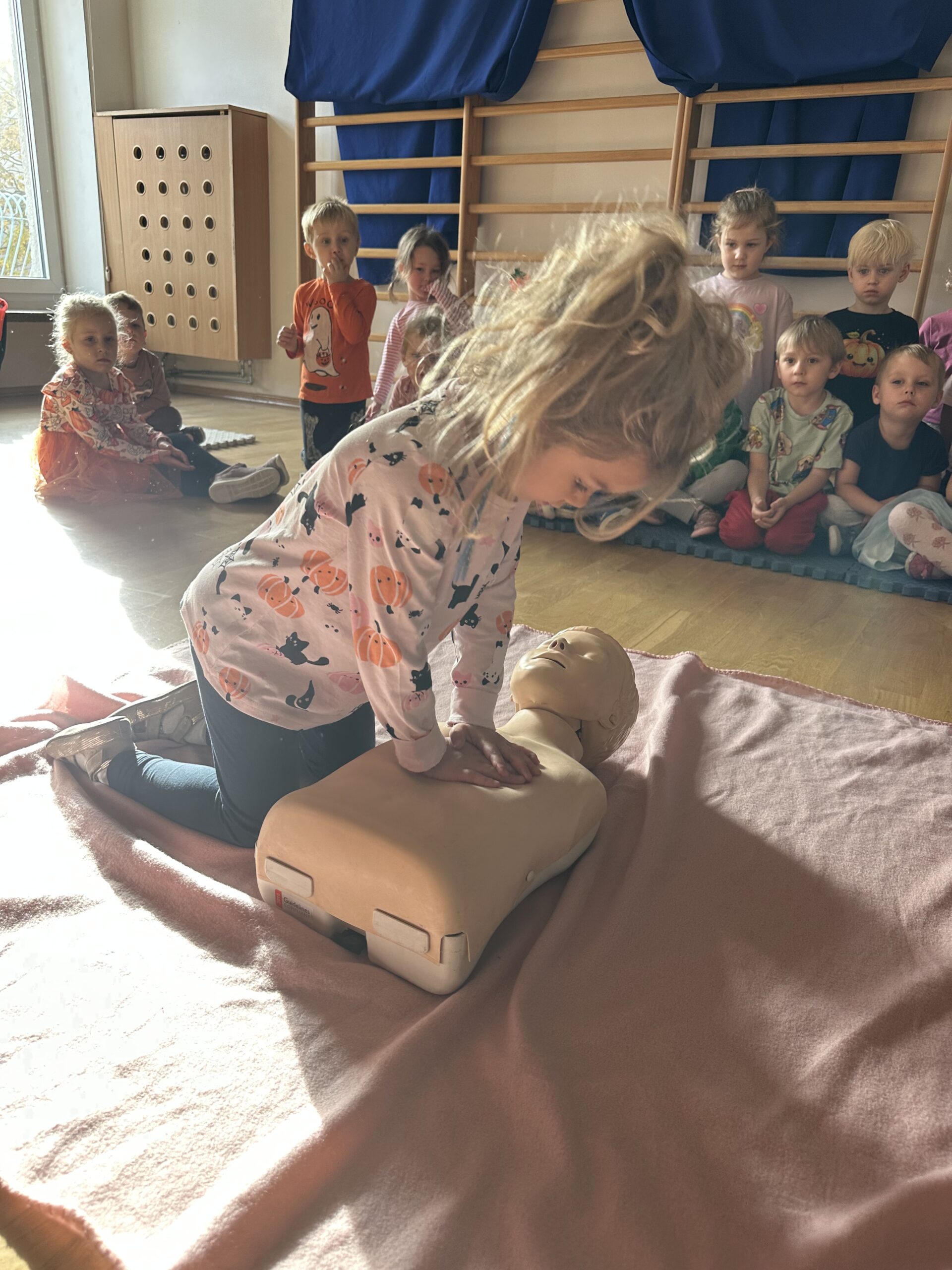 W piątek 31 października oprócz Dnia Dyni, mieliśmy także okazję wziąć udział w spotkaniu z Panią Ratownik 🚑 Dowiedzieliśmy się jak zadzwonić po pomoc oraz co jest najważniejsze podczas jej wzywania. Każdy z nas miał także możliwość spróbowania resuscytacji na specjalnym fantomie. Wcale nie było to takie łatwe! To była niezwykle ciekawa i pouczająca lekcja bezpieczeństwa! 🚑