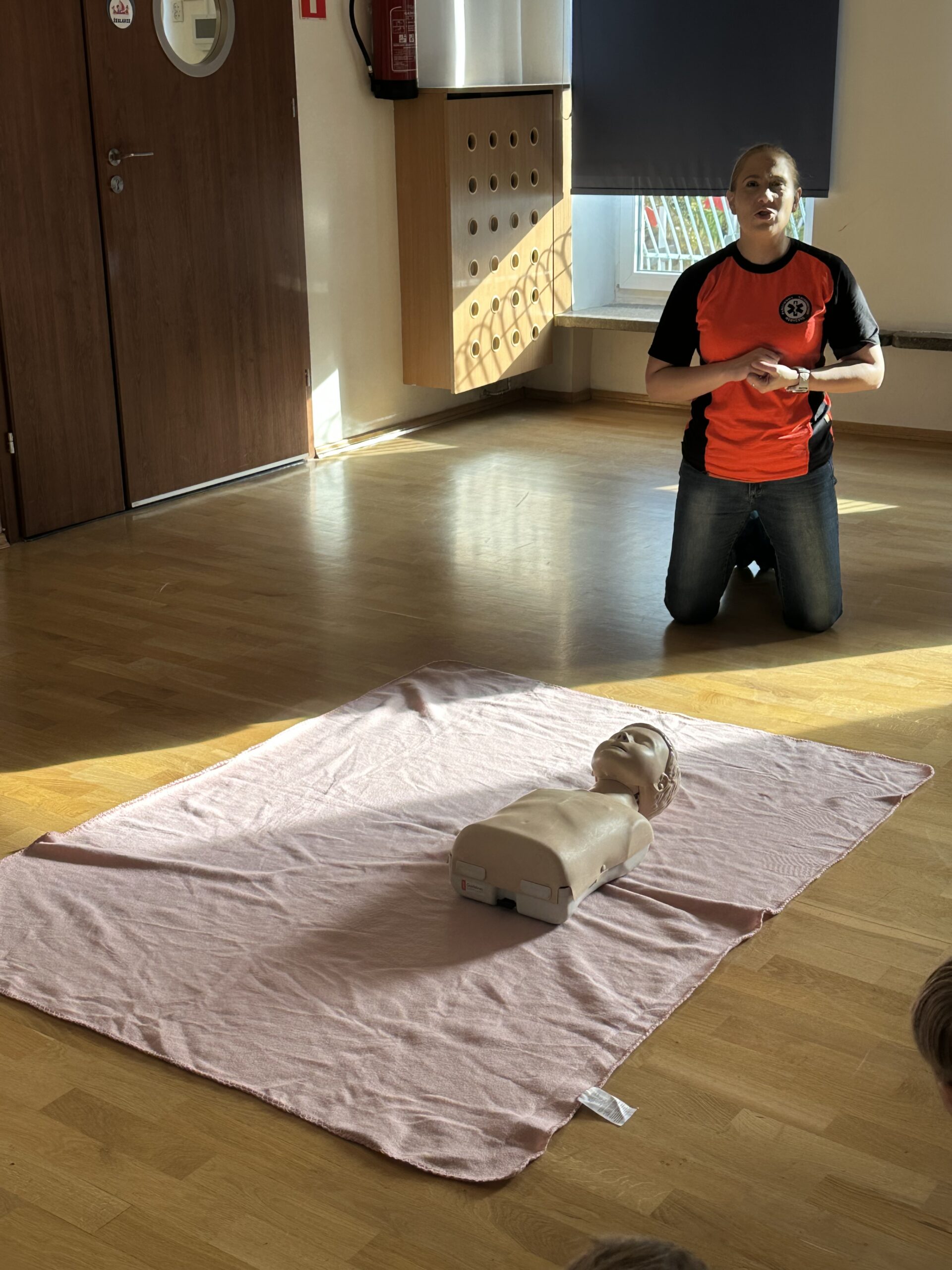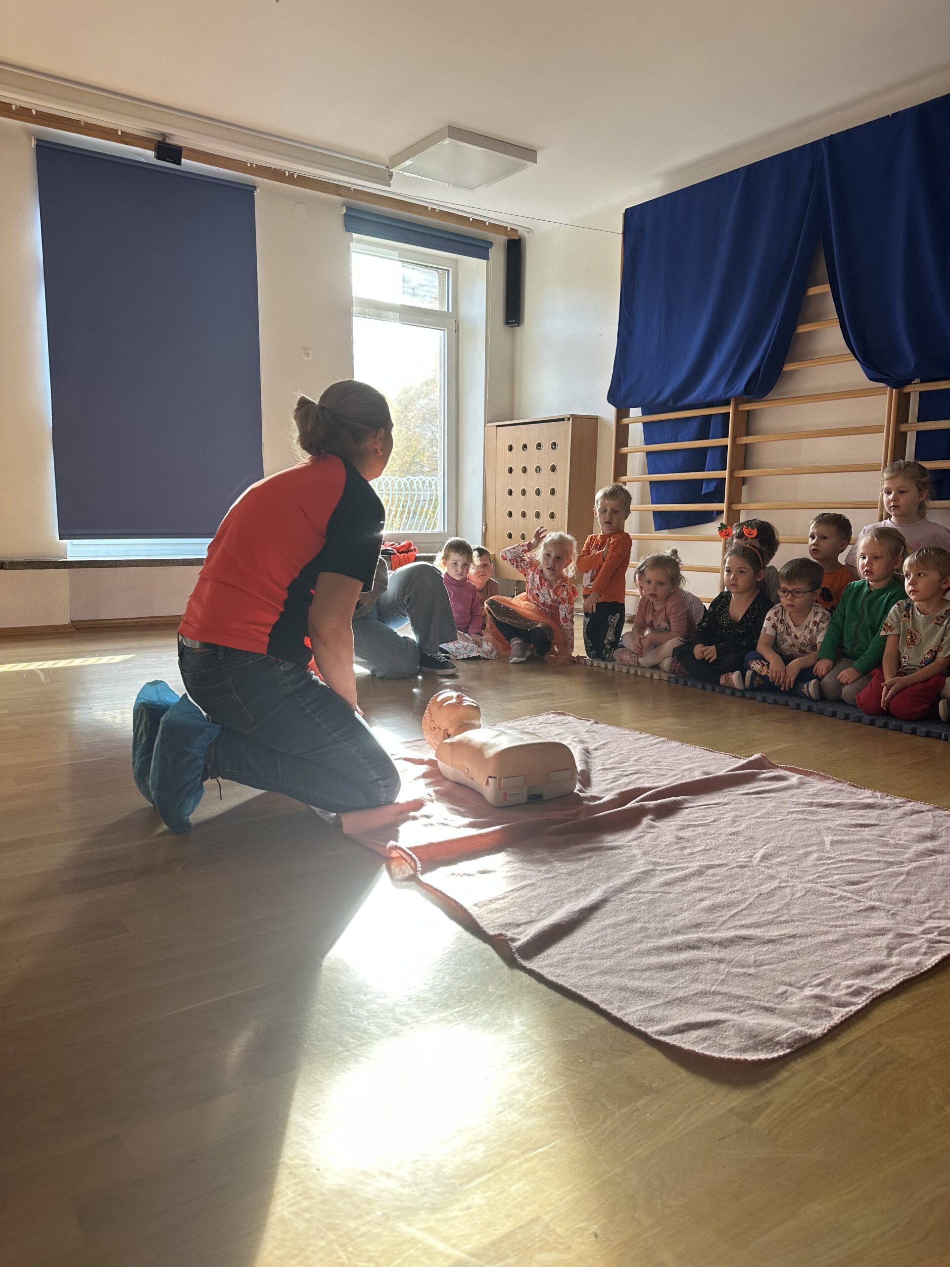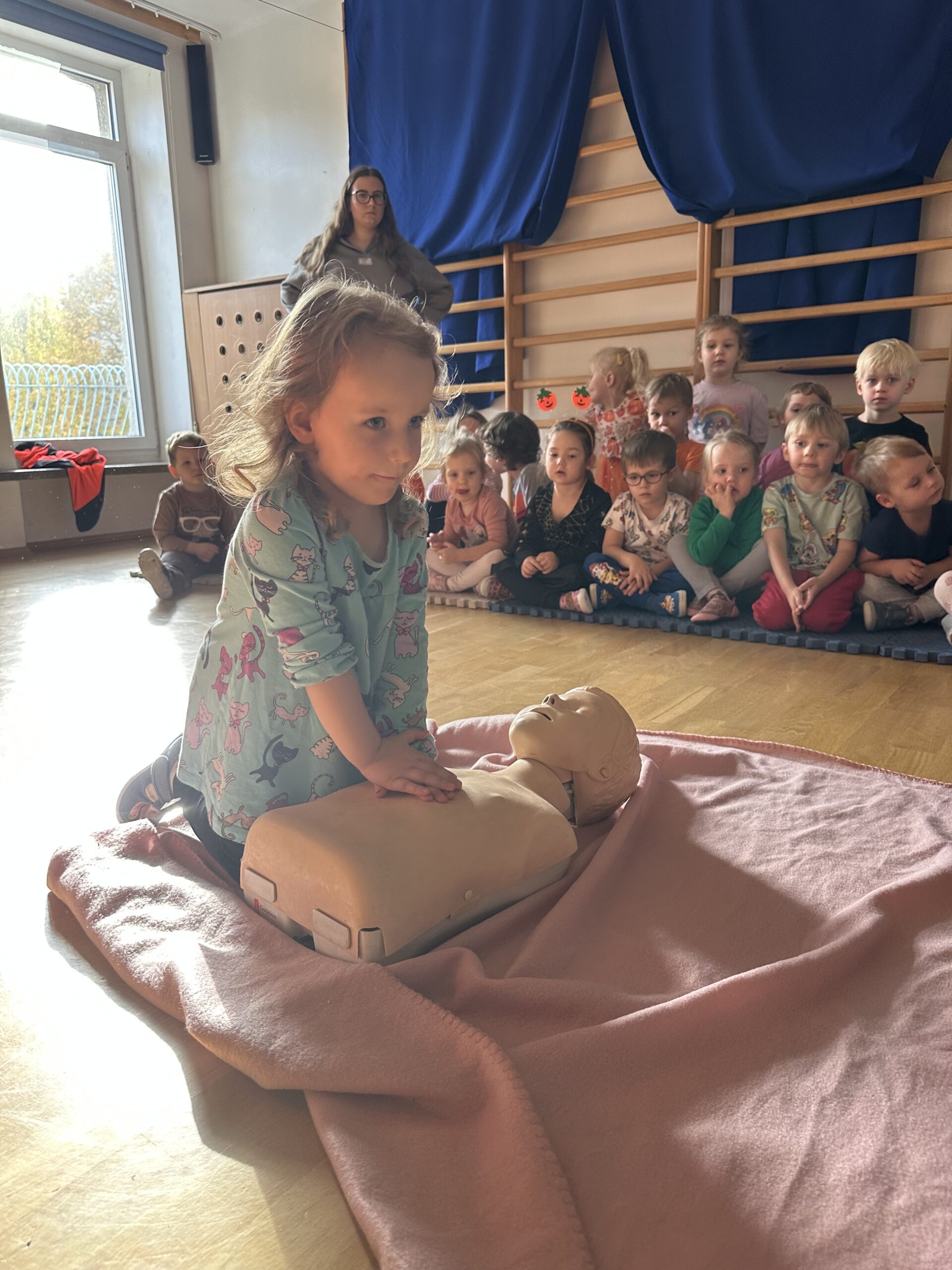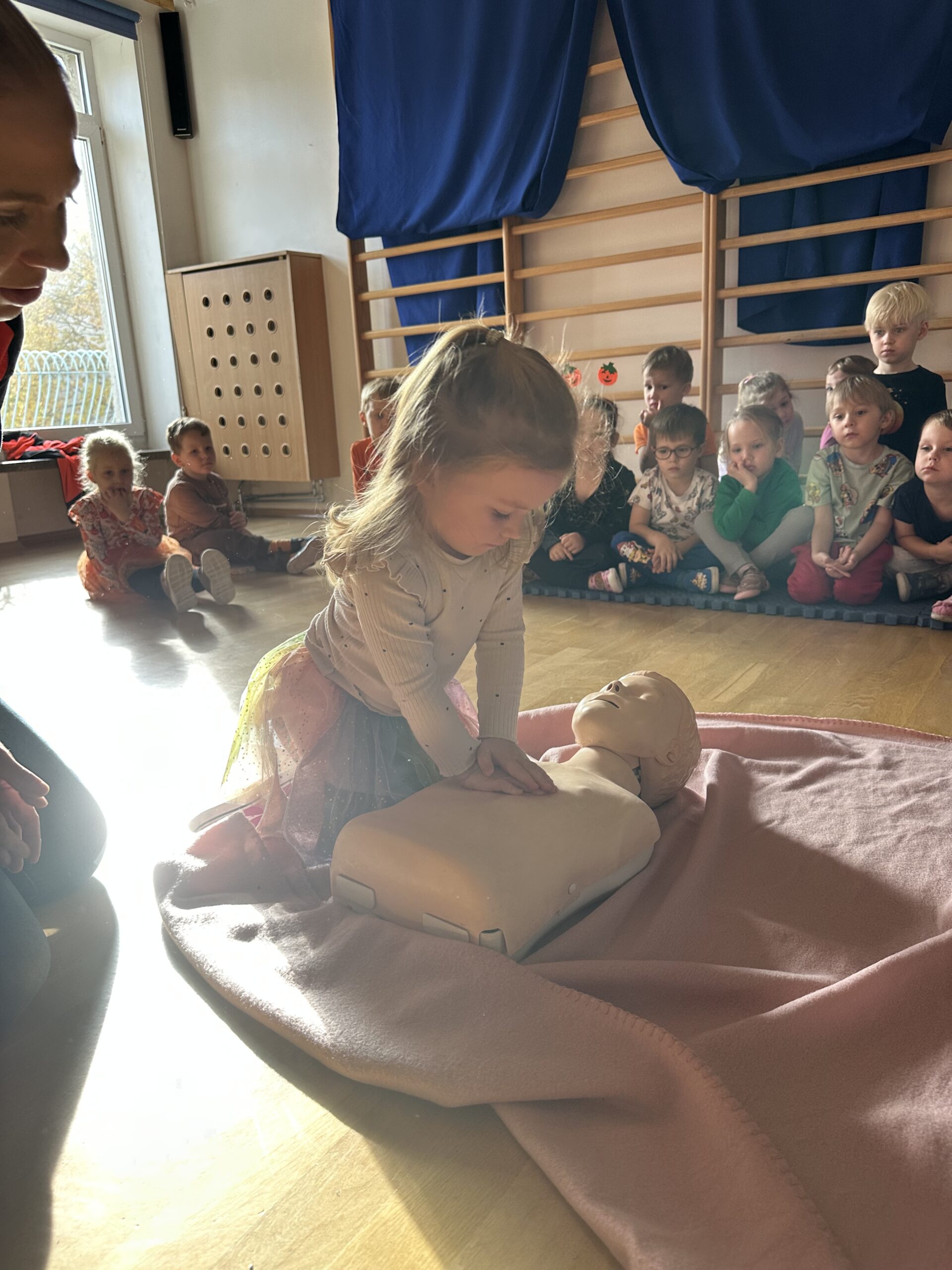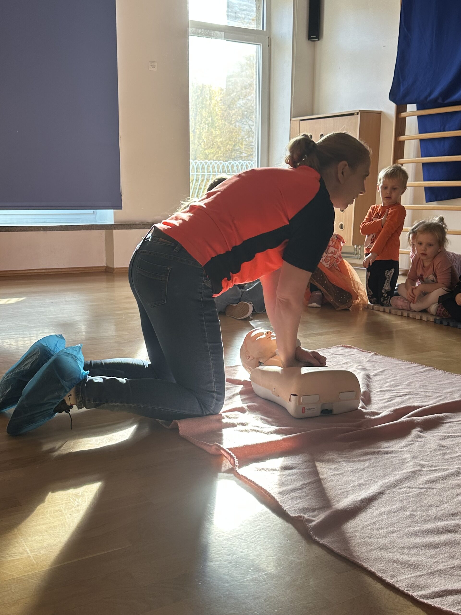 W piątek 31 października oprócz Dnia Dyni, mieliśmy także okazję wziąć udział w spotkaniu z Panią Ratownik 🚑 Dowiedzieliśmy się jak zadzwonić po pomoc oraz co jest najważniejsze podczas jej wzywania. Każdy z nas miał także możliwość spróbowania resuscytacji na specjalnym fantomie. Wcale nie było to takie łatwe! To była niezwykle ciekawa i pouczająca lekcja bezpieczeństwa! 🚑