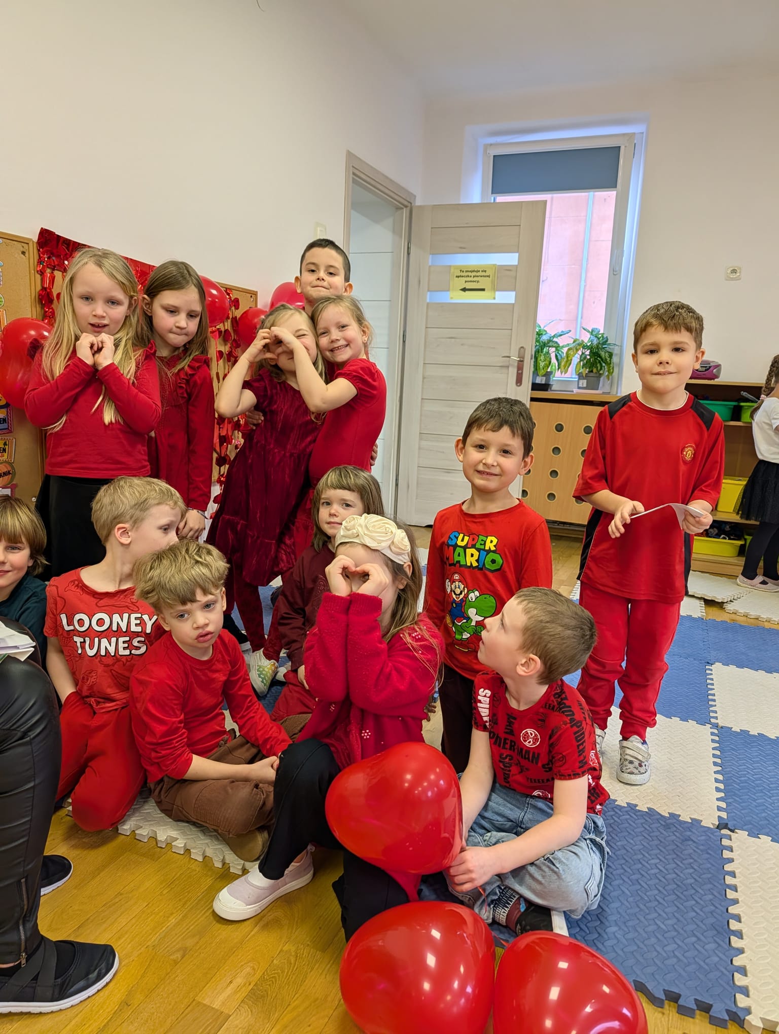 ❤️ Walentynki: W tym dniu nasze sale wypełniły się kolorem czerwonym i motywami serduszek. Celebrowaliśmy nie tylko sympatię, ale przede wszystkim koleżeństwo i wzajemny szacunek. Poczta Walentynkowa: Dzieci przygotowały kartki, które trafiły do specjalnej skrzynki, a następnie zostały rozdane adresatom.