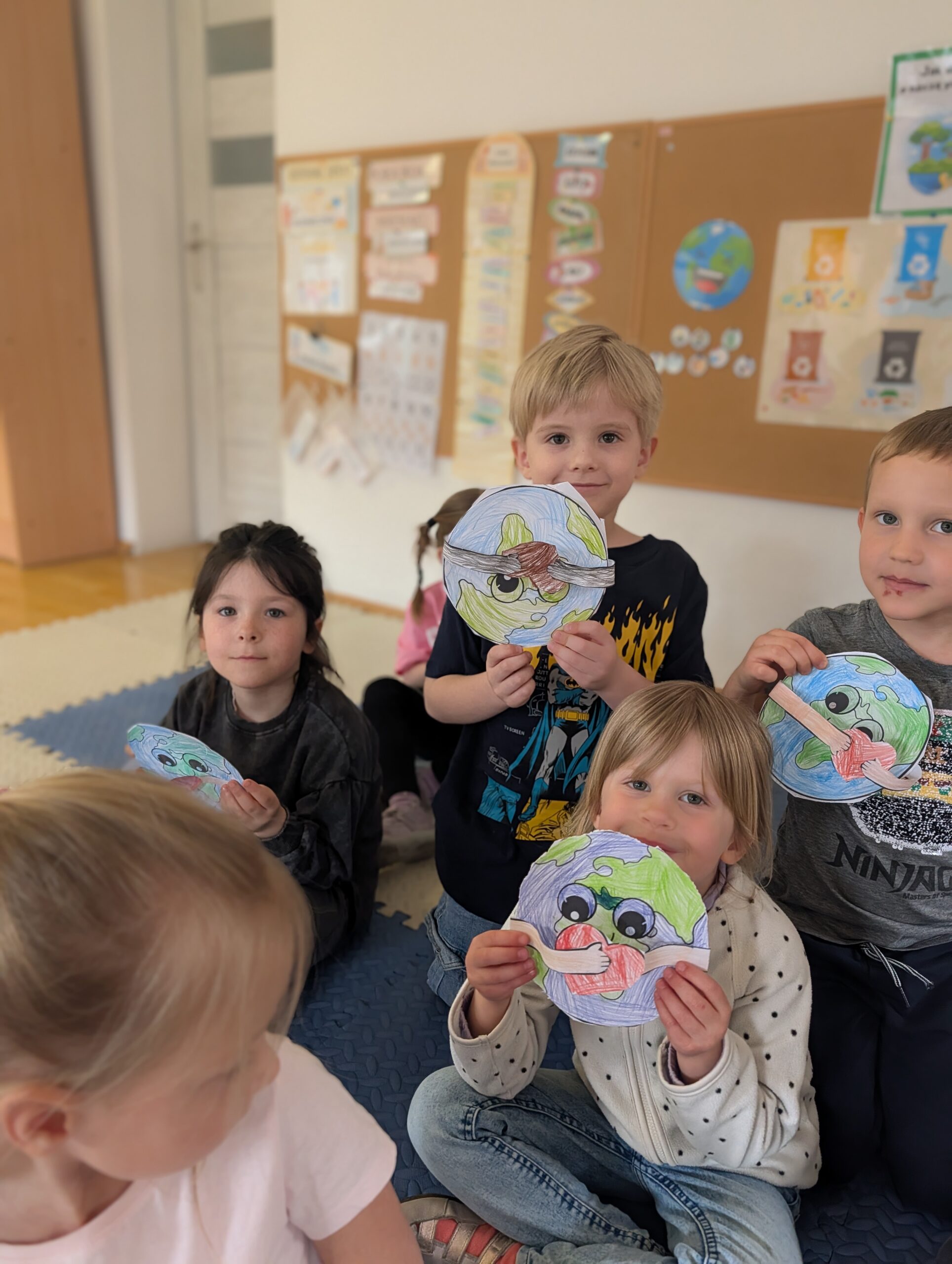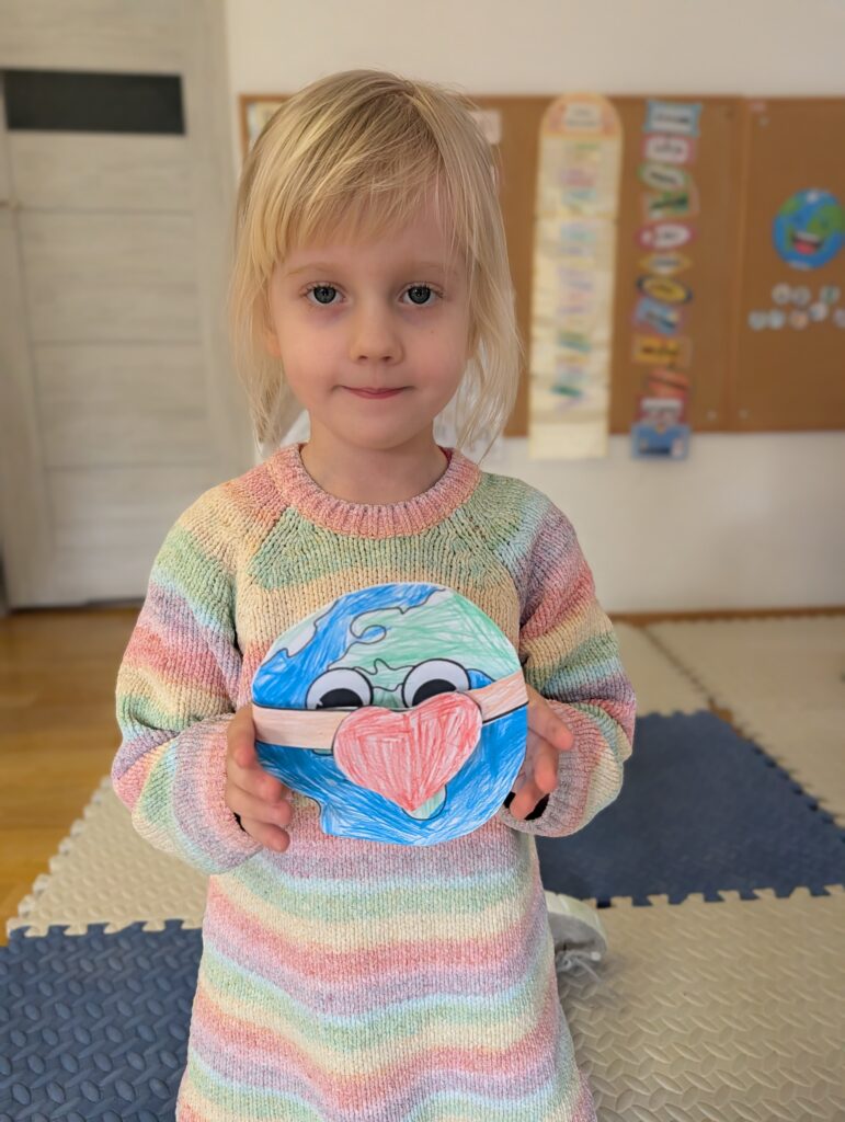 Wykonaliśmy również pracę plastyczną pt. „Nasza Ziemia”. Dzieci wykonały piękne, kolorowe prace, pokazując, jak postrzegają naszą planetę i jak bardzo jest dla nich ważna.