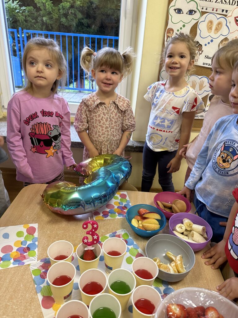Dzisiaj w naszej grupie obchodziliśmy urodziny Jaśminki. Wspólnie zaśpiewaliśmy tradycyjne „Sto lat”. Życzyliśmy również wszystkiego najlepszego. Mogliśmy także razem spędzać radosne chwile podczas poczęstunku. Na koniec świętowania obejrzeliśmy zdjęcia Jaśminki, które pokazała nam w swoim albumie. To był super czas!