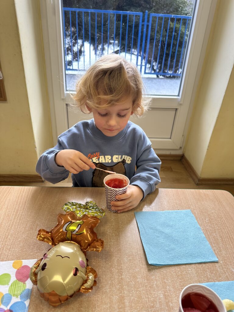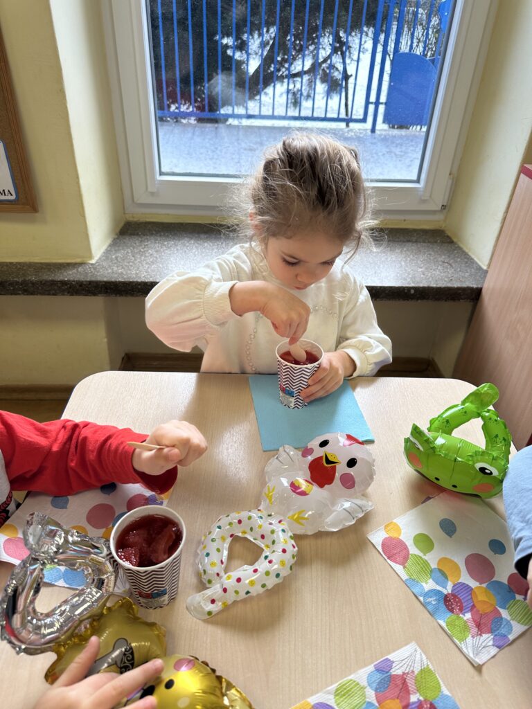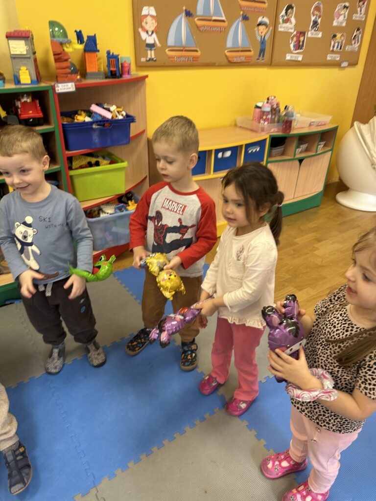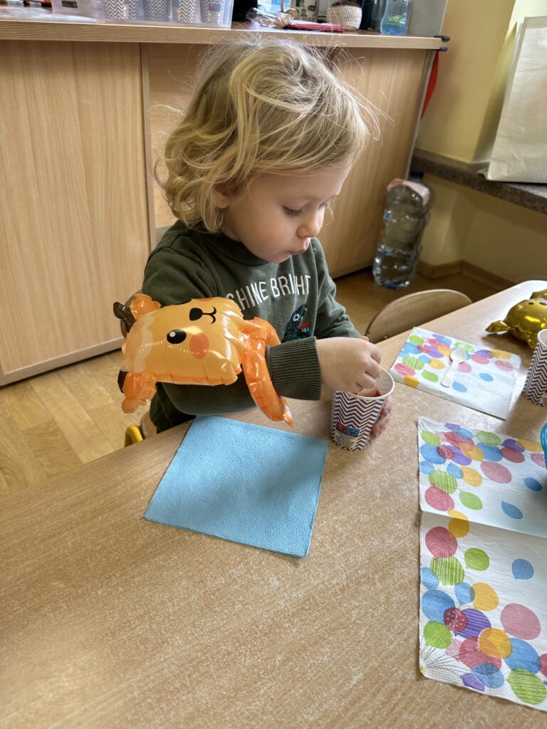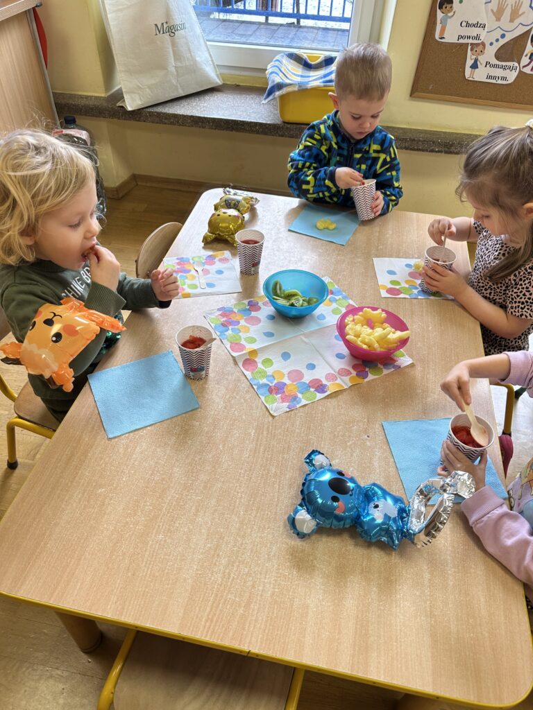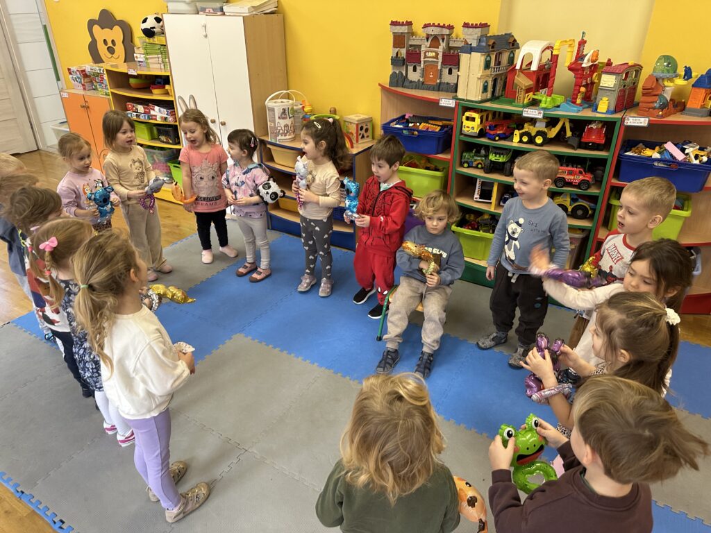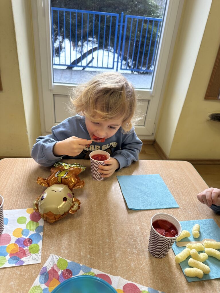 Ostatnio w naszej grupie obchodziliśmy 4. urodziny Kacpra. Świętowanie rozpoczęliśmy od złożenia życzeń. Kacper dla każdego z nas przygotował małą niespodziankę w postaci baloników. Sprawiły nam one wiele radości. Była super zabawa. Nie obyło się oczywiście bez zaśpiewania tradycyjnego „Sto lat”. Na koniec wspólnie spędziliśmy czas przy poczęstunku.