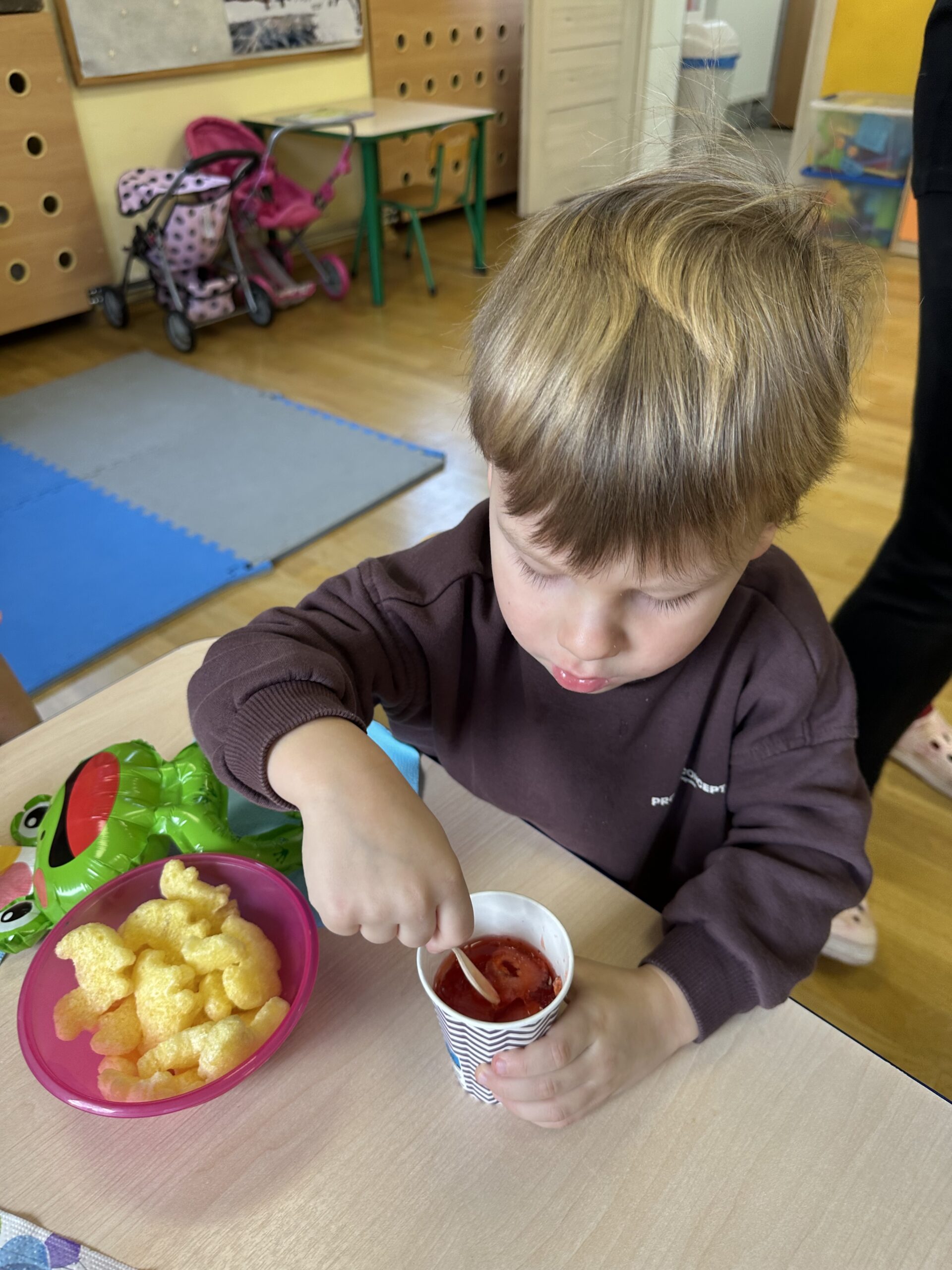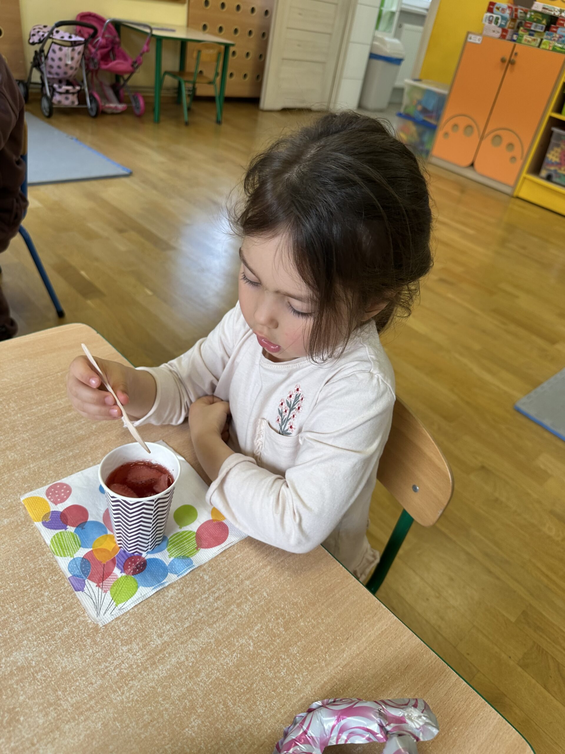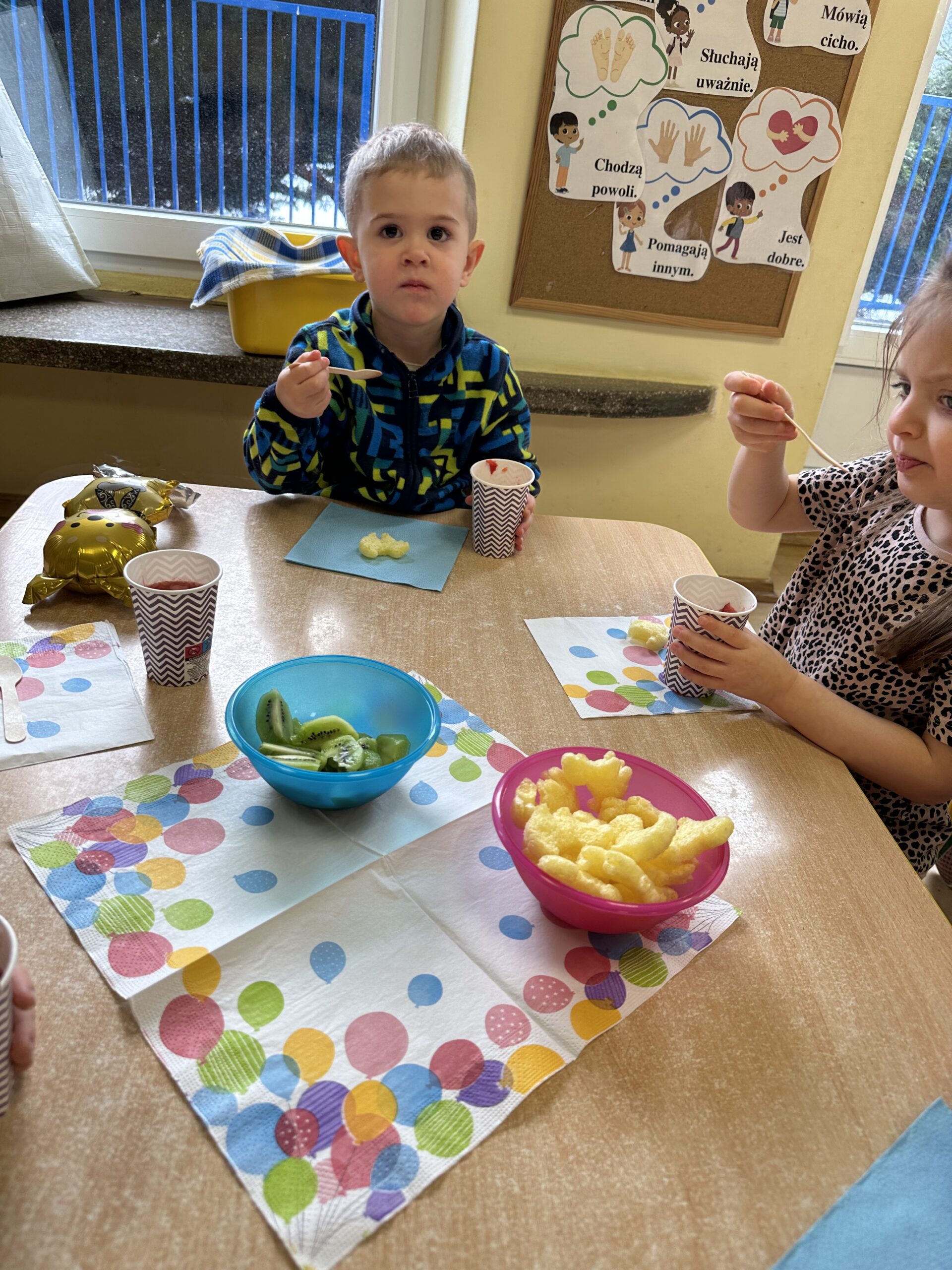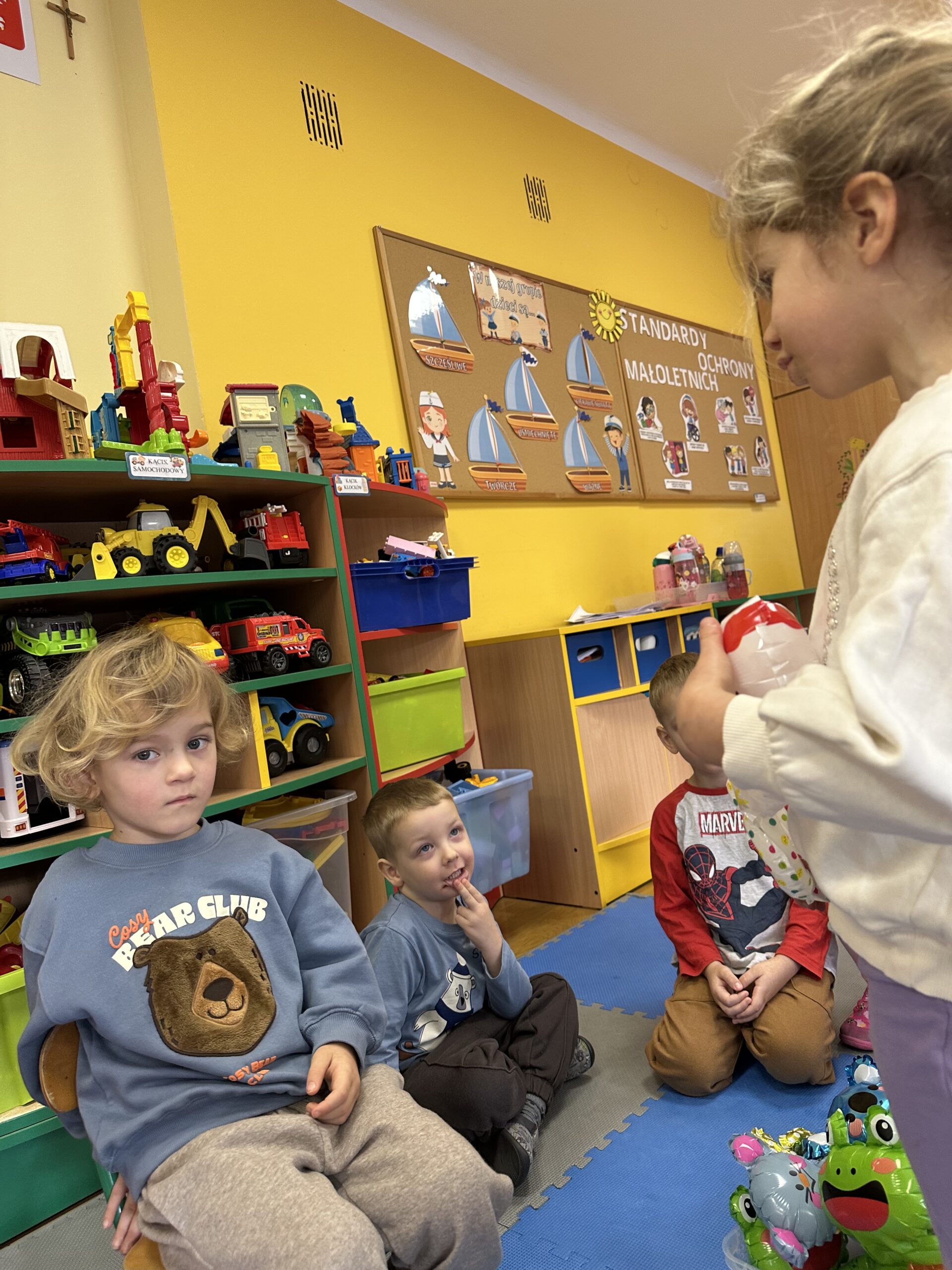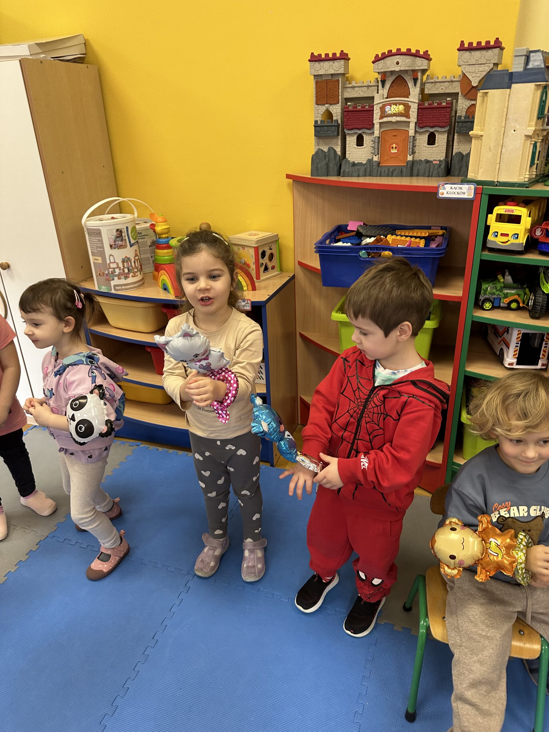 Ostatnio w naszej grupie obchodziliśmy 4. urodziny Kacpra. Świętowanie rozpoczęliśmy od złożenia życzeń. Kacper dla każdego z nas przygotował małą niespodziankę w postaci baloników. Sprawiły nam one wiele radości. Była super zabawa. Nie obyło się oczywiście bez zaśpiewania tradycyjnego „Sto lat”. Na koniec wspólnie spędziliśmy czas przy poczęstunku.