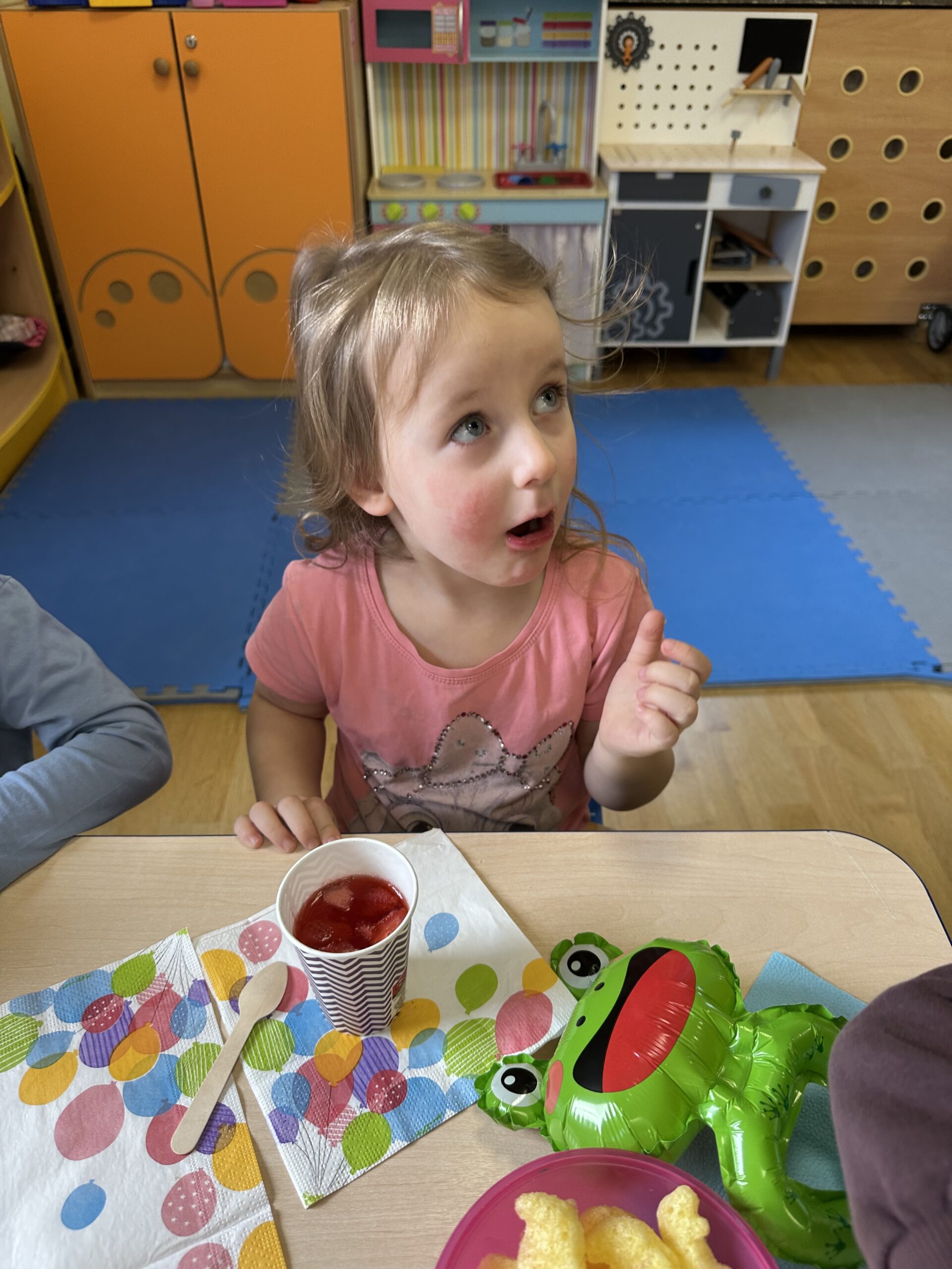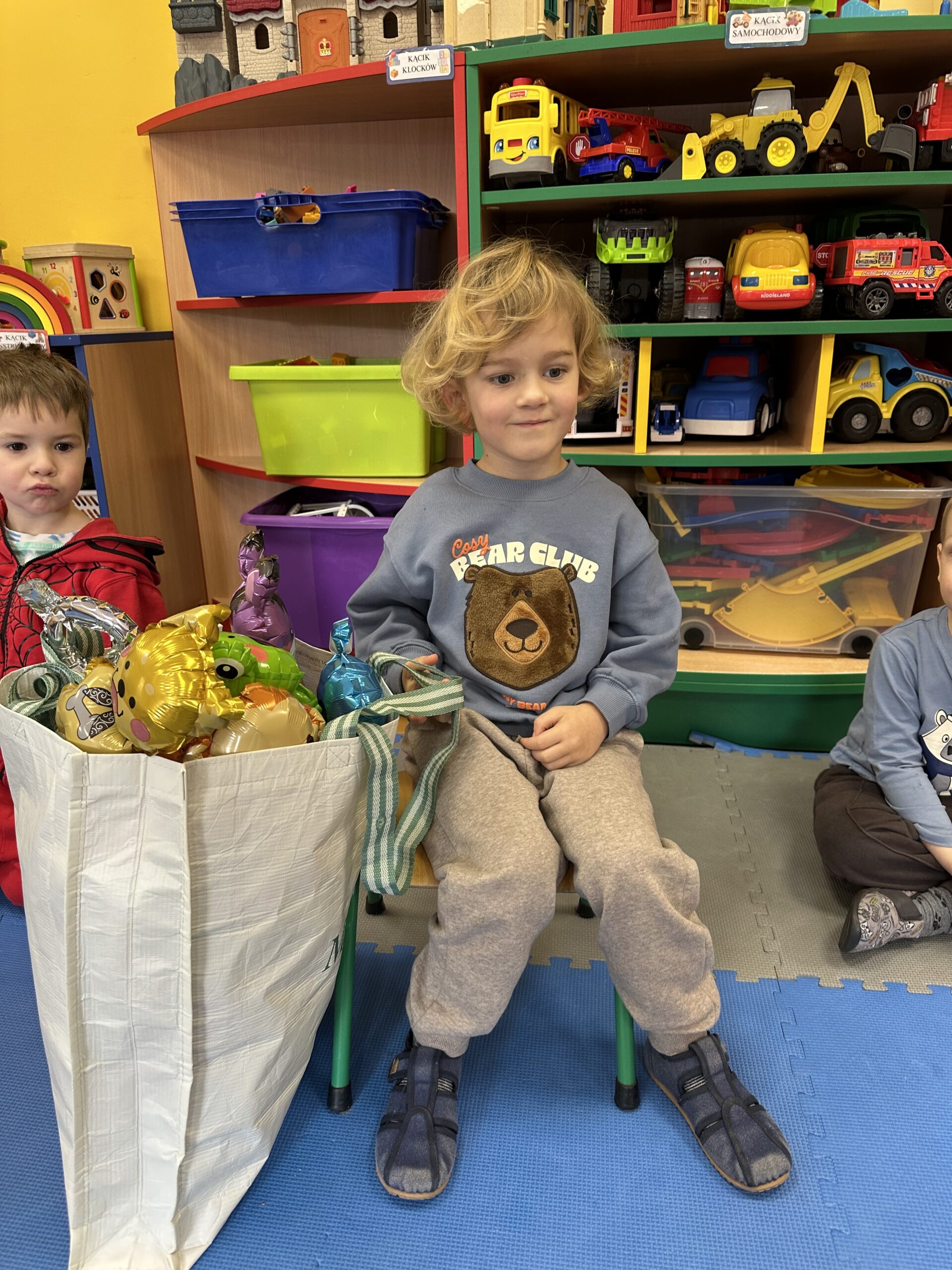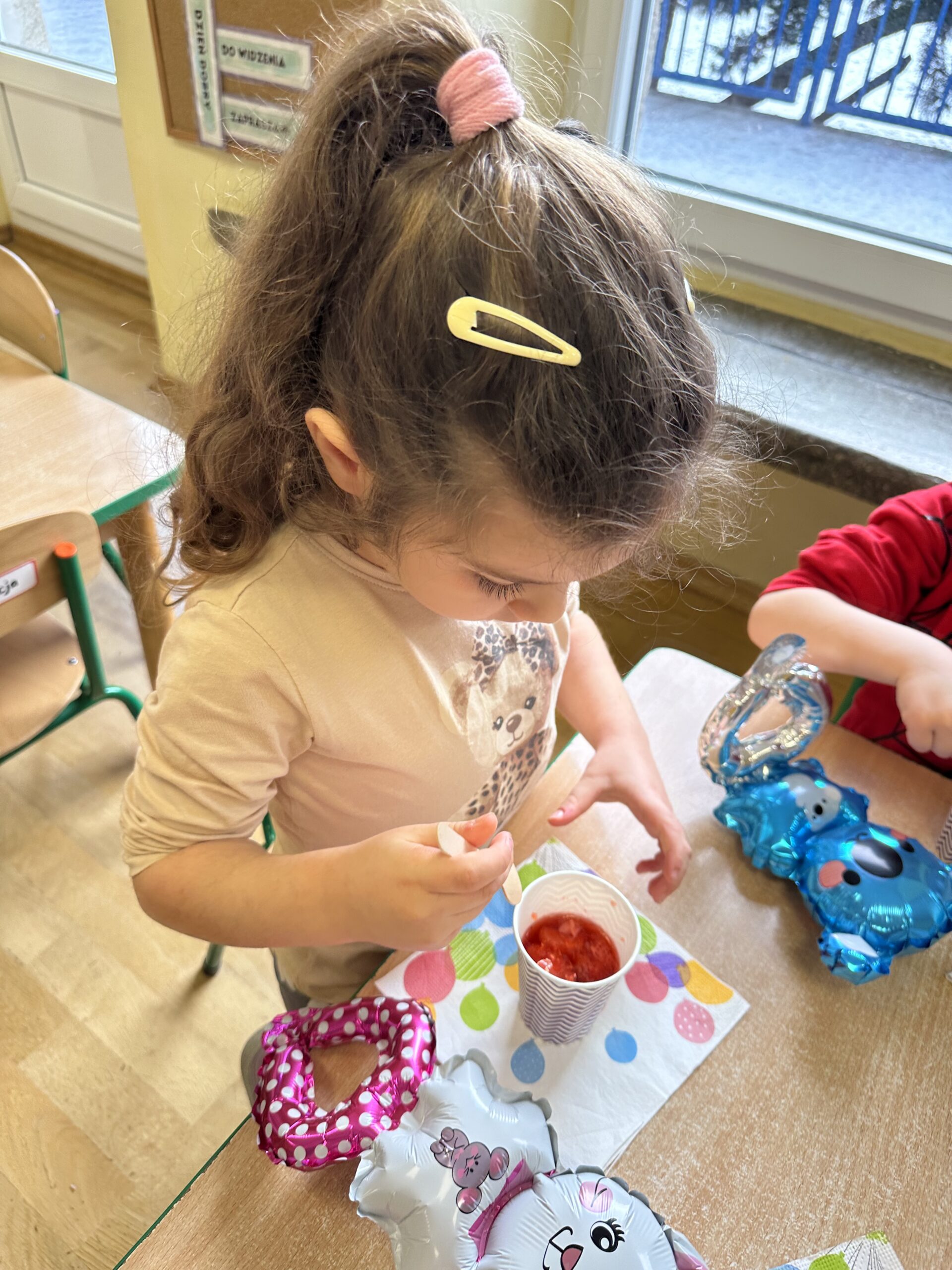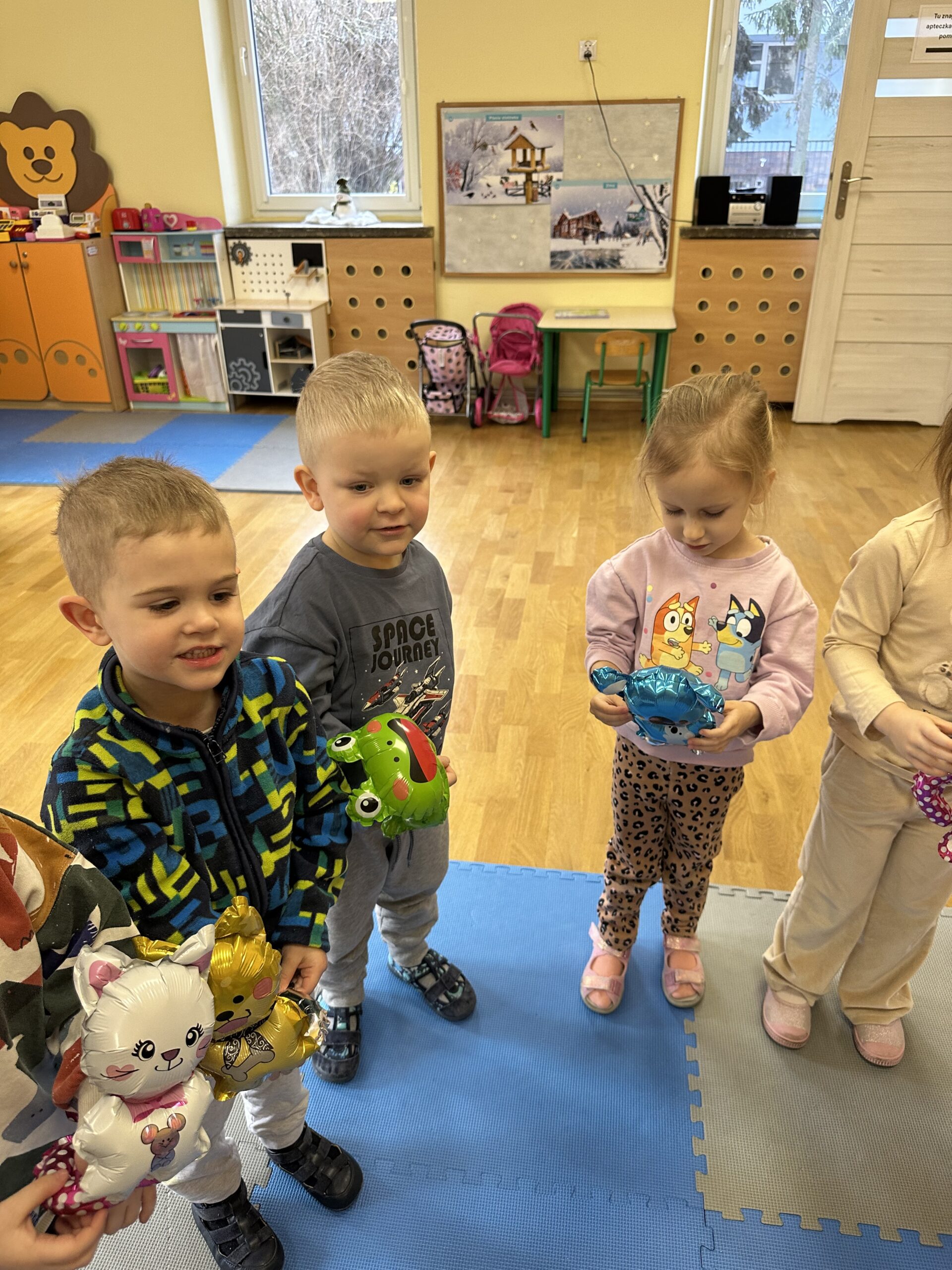 Ostatnio w naszej grupie obchodziliśmy 4. urodziny Kacpra. Świętowanie rozpoczęliśmy od złożenia życzeń. Kacper dla każdego z nas przygotował małą niespodziankę w postaci baloników. Sprawiły nam one wiele radości. Była super zabawa. Nie obyło się oczywiście bez zaśpiewania tradycyjnego „Sto lat”. Na koniec wspólnie spędziliśmy czas przy poczęstunku.